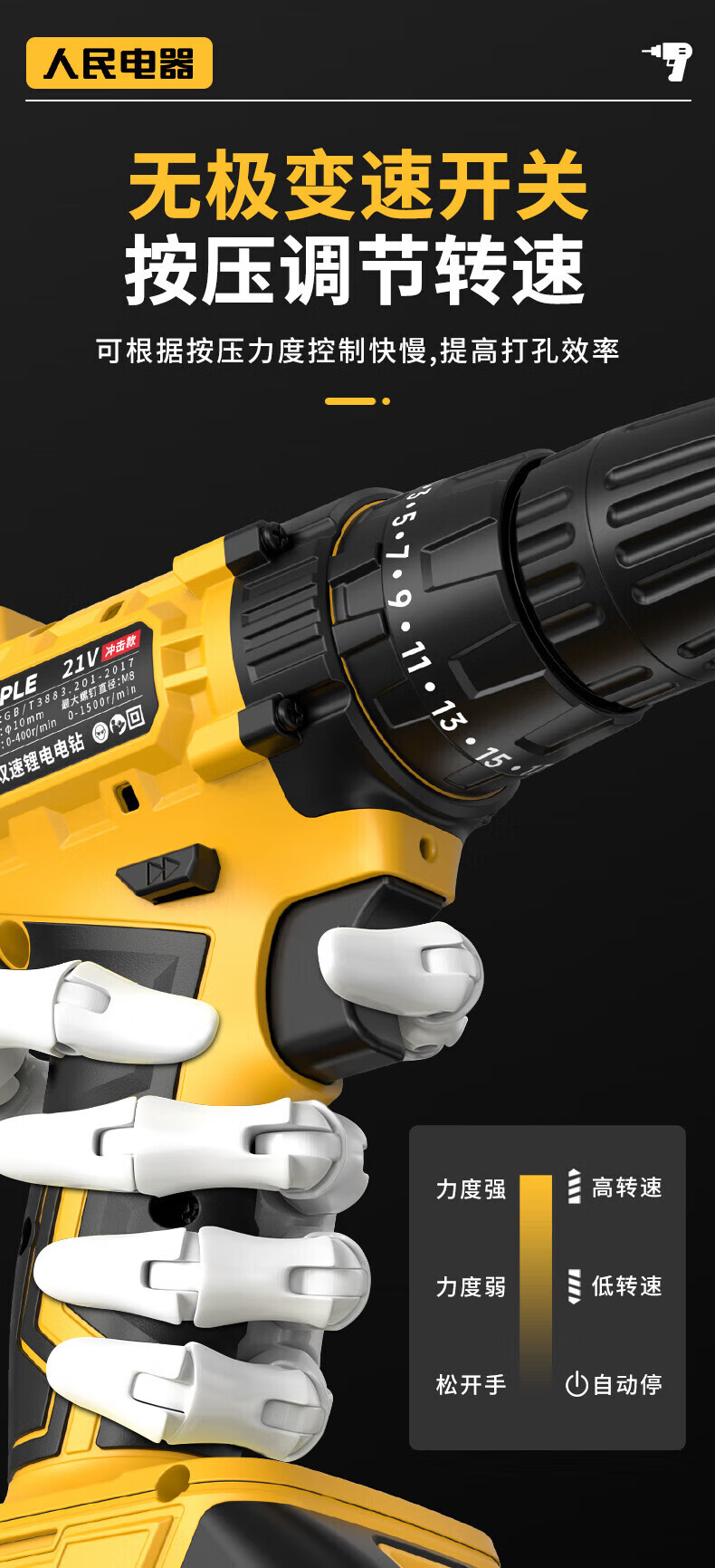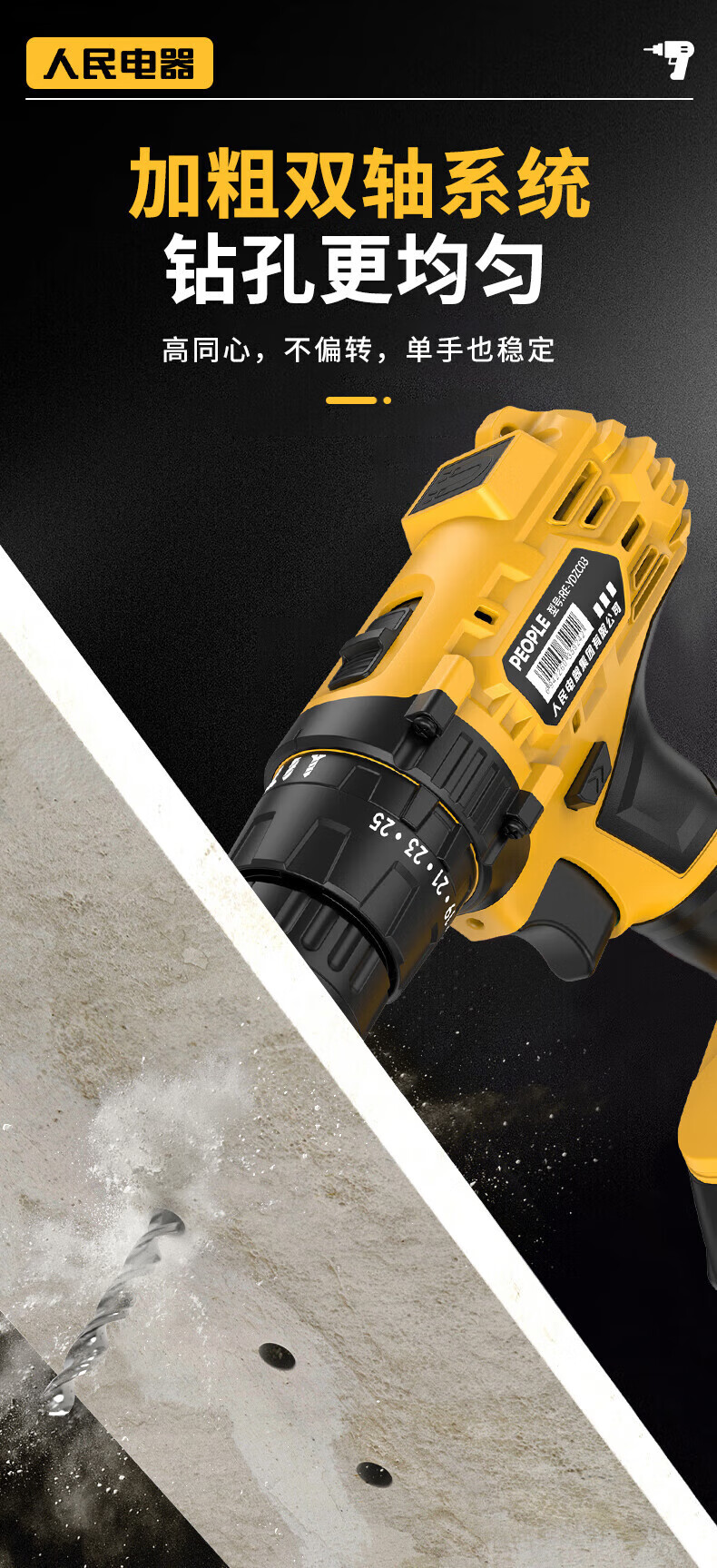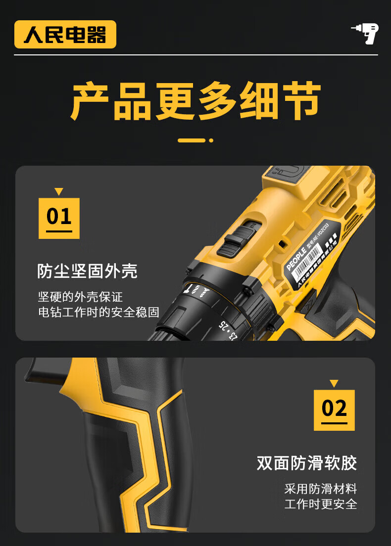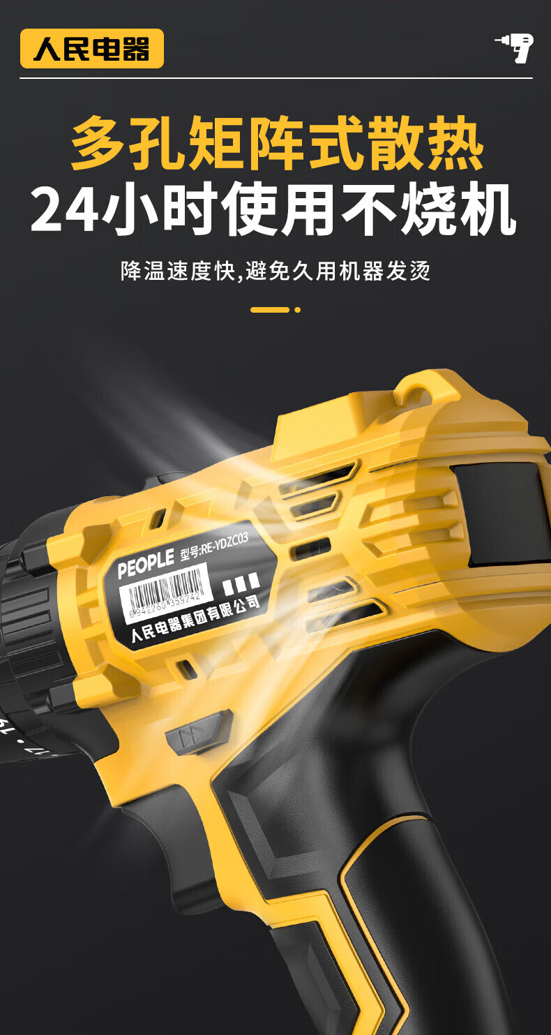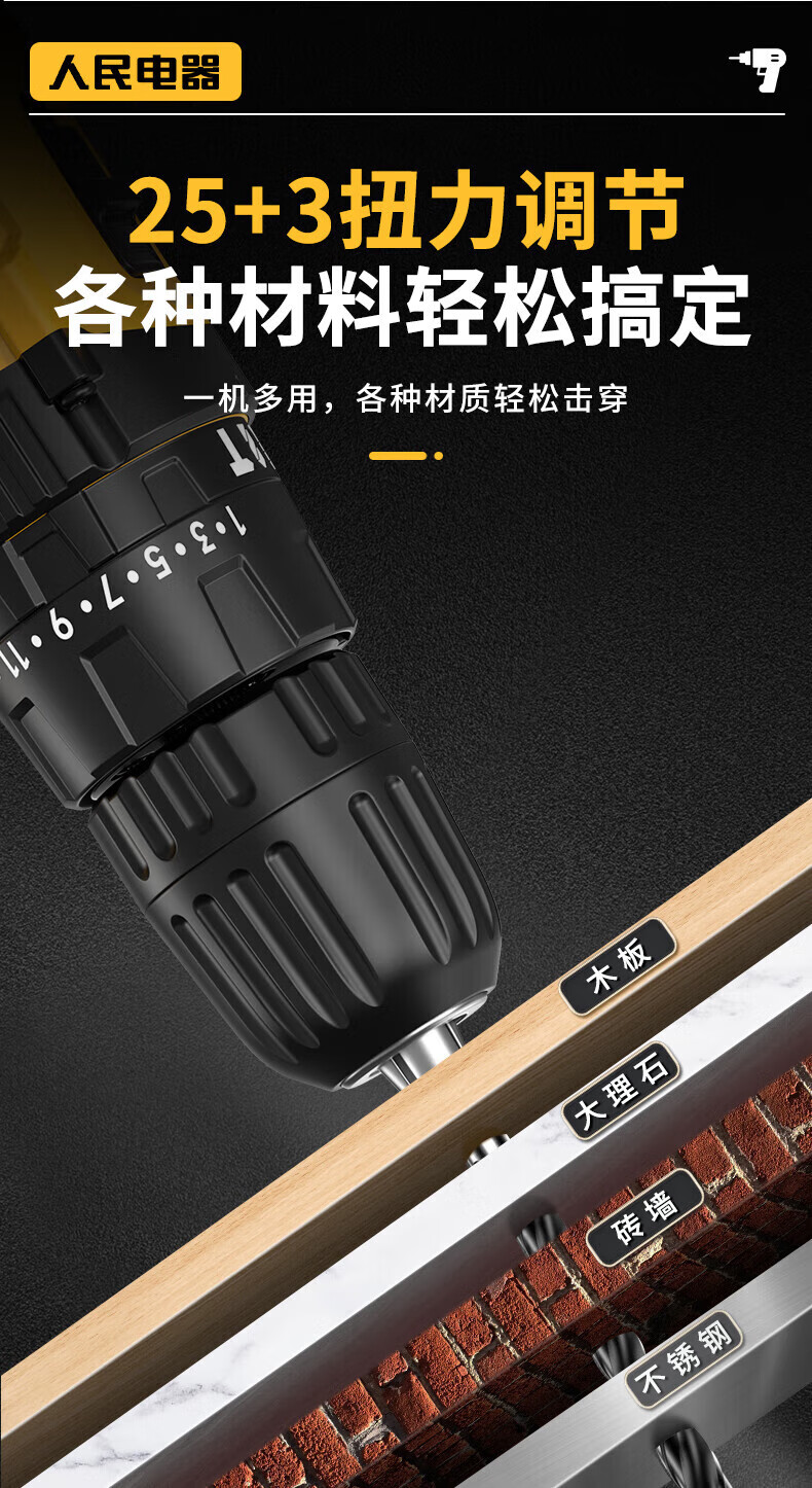 人民冲击无刷锂电钻钻墙打孔家用多功能12V/16.8V/21V充电双速手电钻 【工业级】12V-2电1充