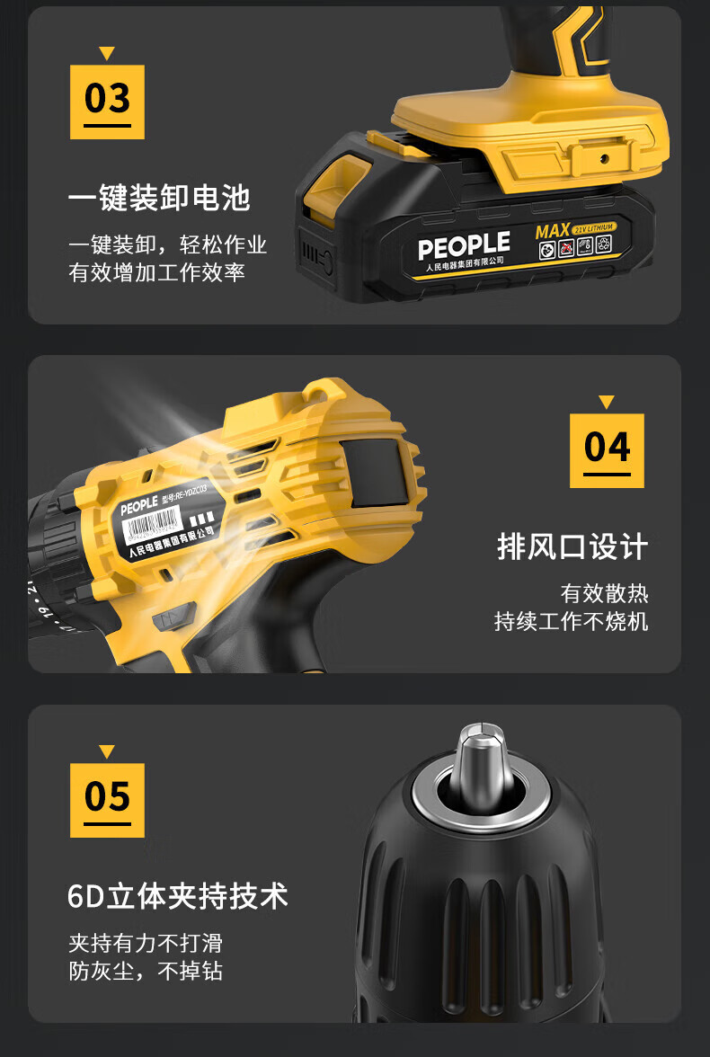 人民电钻钻墙打孔电动手电钻锂电池充电多功能冲击电钻三合一家用钻头 【21V--2.0Ah】2电1充