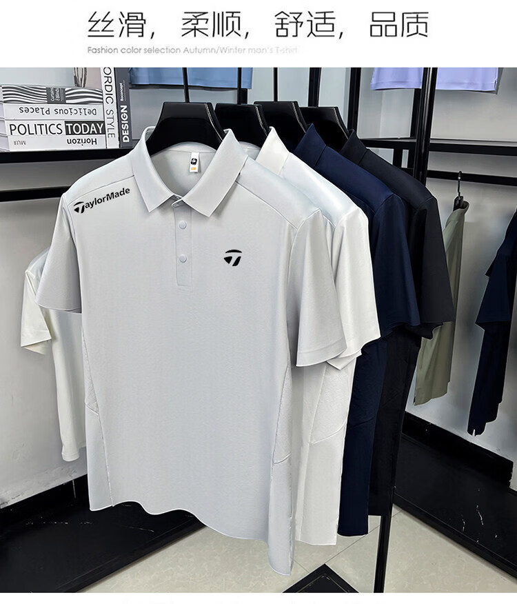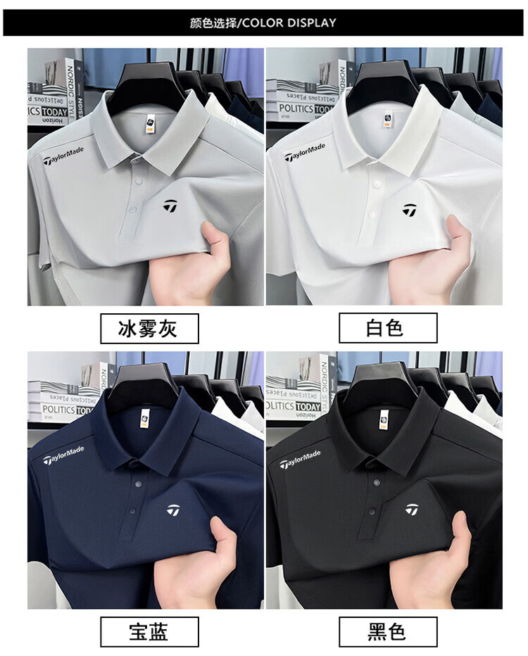 TAylorMade泰勒梅高尔夫男士凉感短袖翻领POLO衫夏季透气运动速干 宝蓝色 L 170 【适合120-140斤】