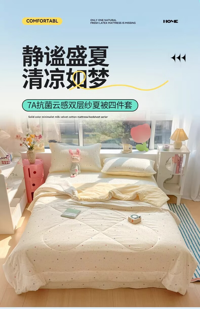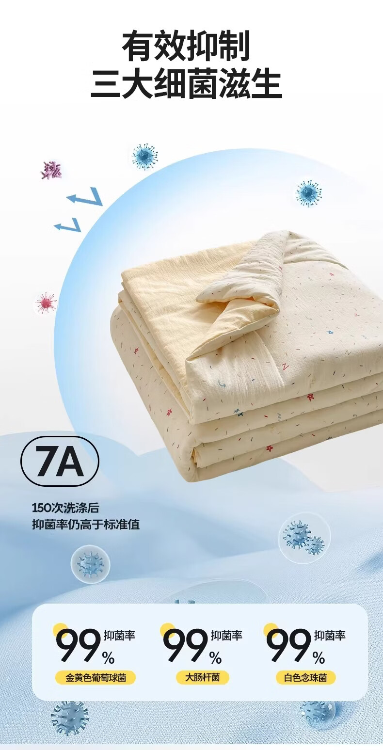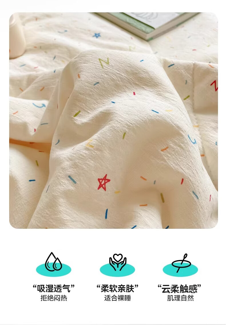 无印良品A类抗菌双层纱夏凉被夏季空调被子单人可机洗裸睡薄被夏被四件套 织梦【A类面料 7A抗菌】 150*200cm单夏被