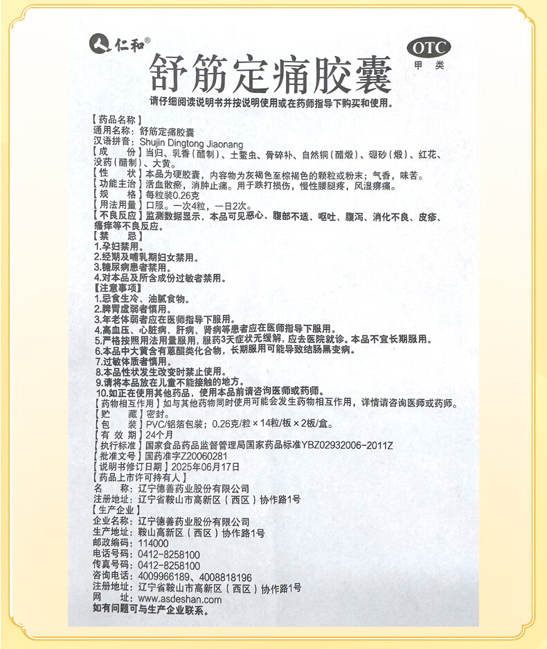 [仁和]舒筋定痛胶囊 0.26g*28粒 1盒装 0.26g*28粒/盒