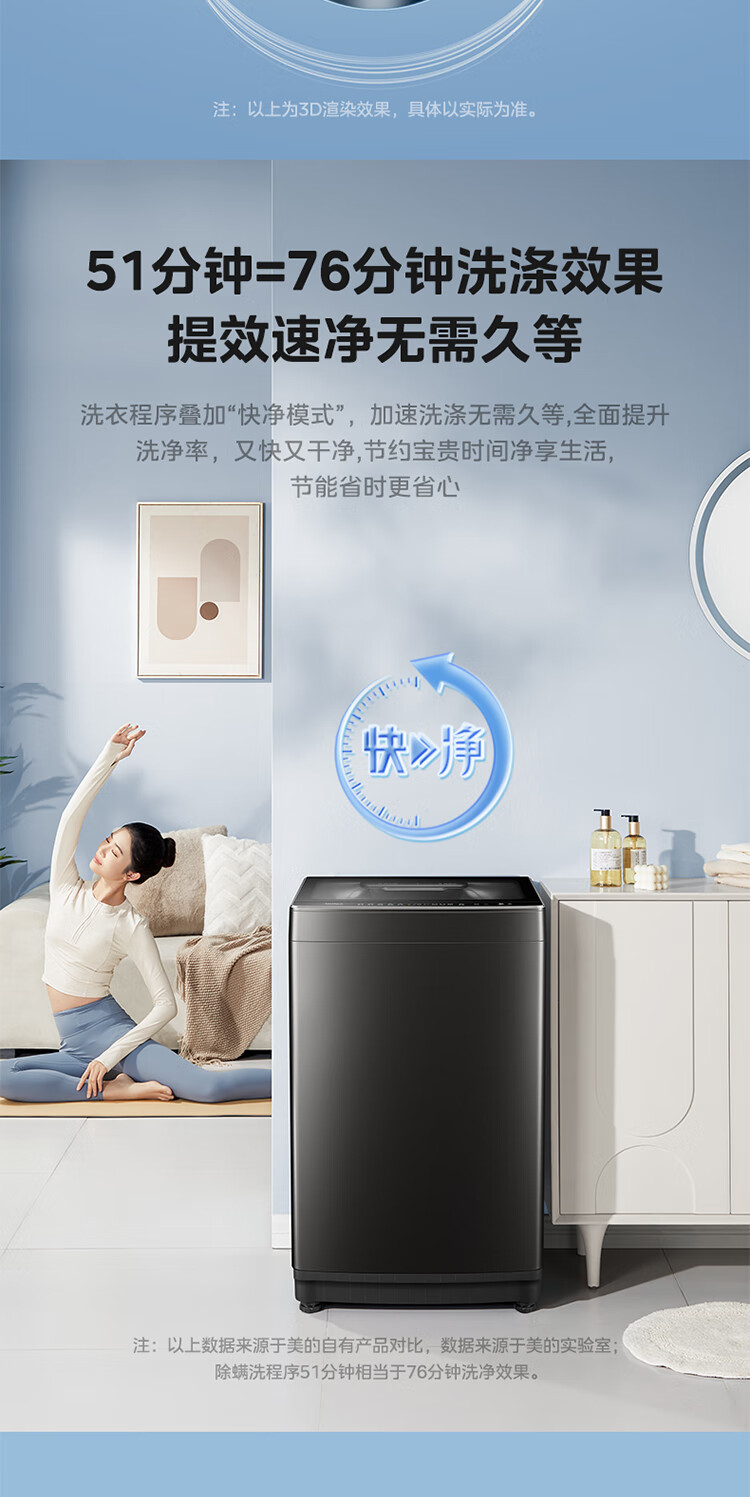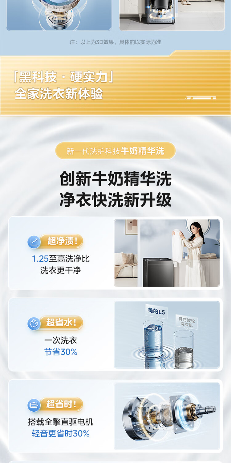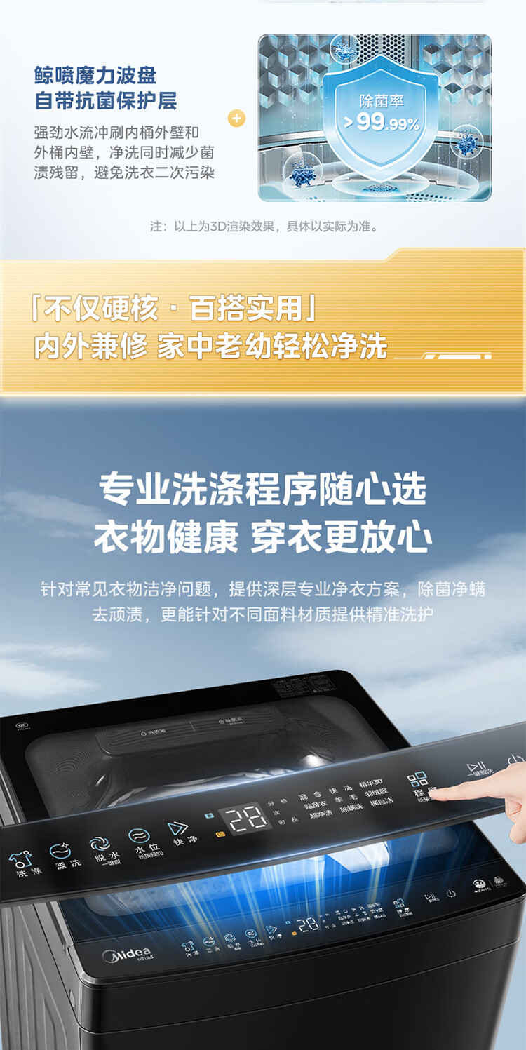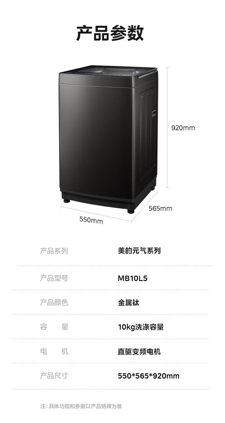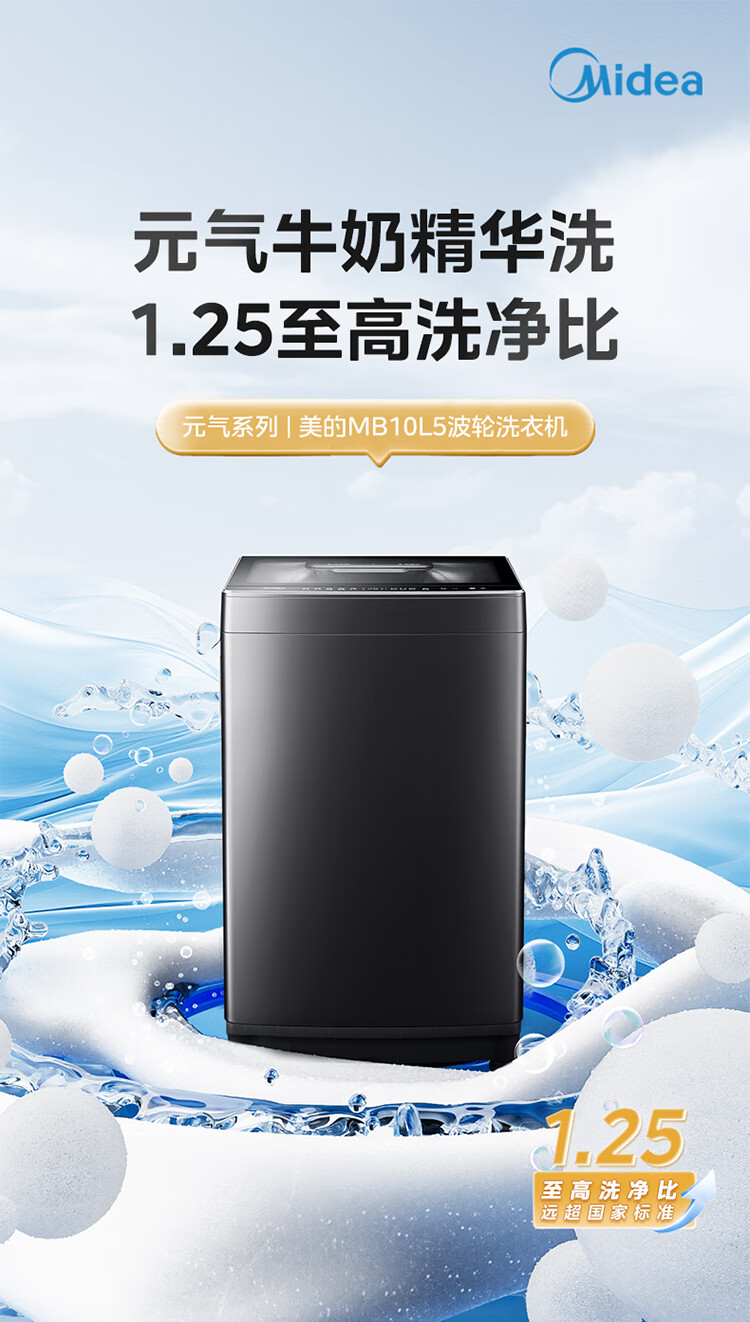 美的(Midea)元气 波轮洗衣机全自动家用 10公斤变频 1.25洗净比 MB10L5 以旧换新 国家补贴 京东自营官方