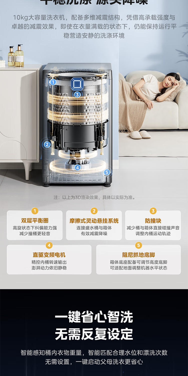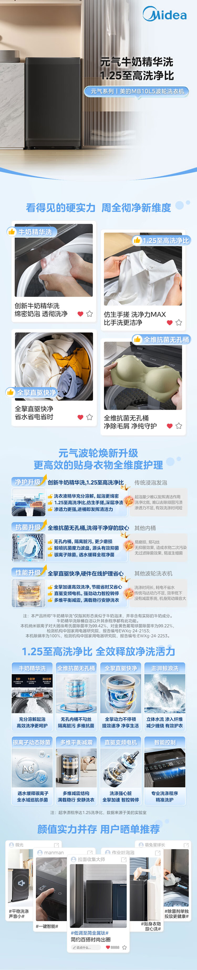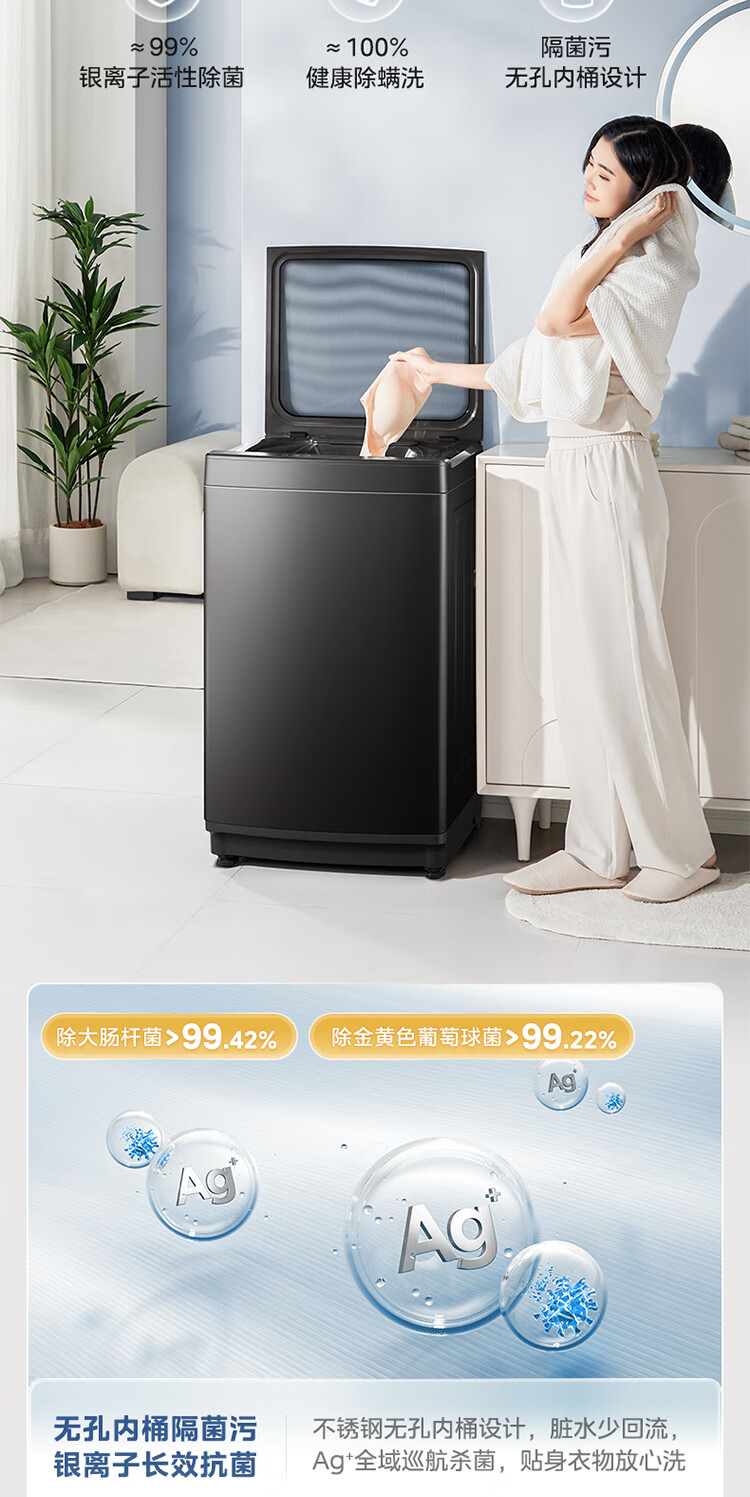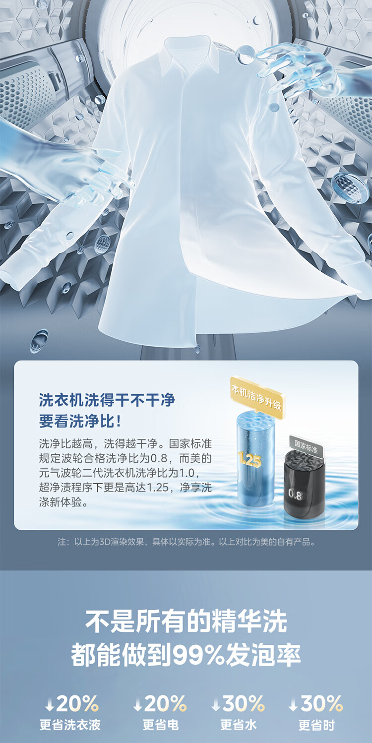 美的(Midea)元气 波轮洗衣机全自动家用 10公斤变频 1.25洗净比 MB10L5 以旧换新 国家补贴 京东自营官方