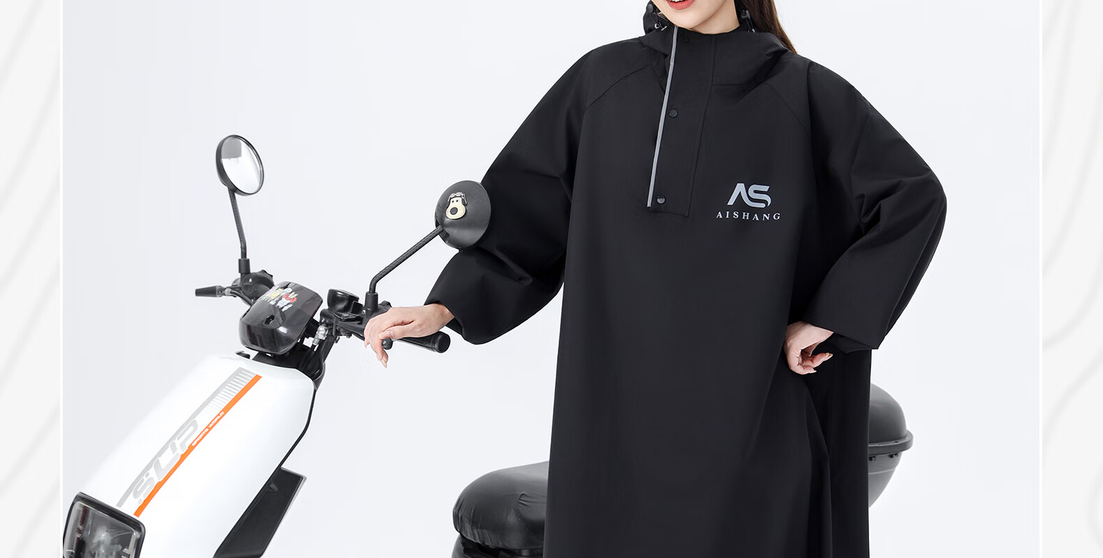 真艾丰电动车雨衣女款男长款全身防暴雨加厚加大人车分离电瓶车专用雨披 春亚纺幻影黑 2XL码(适合身高175-185cm)