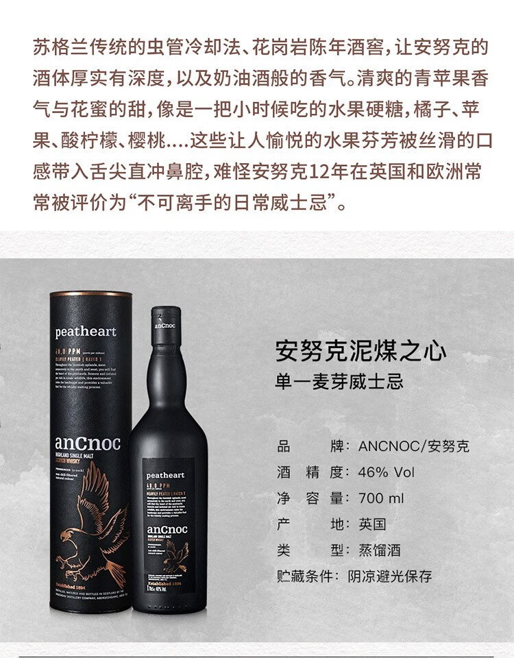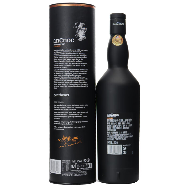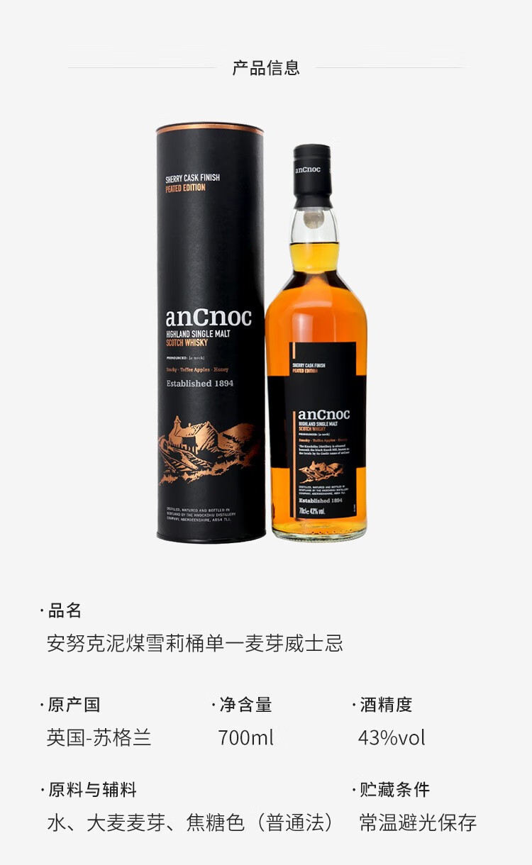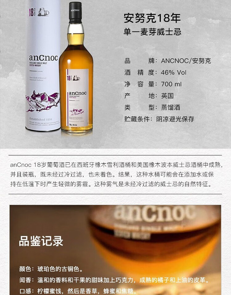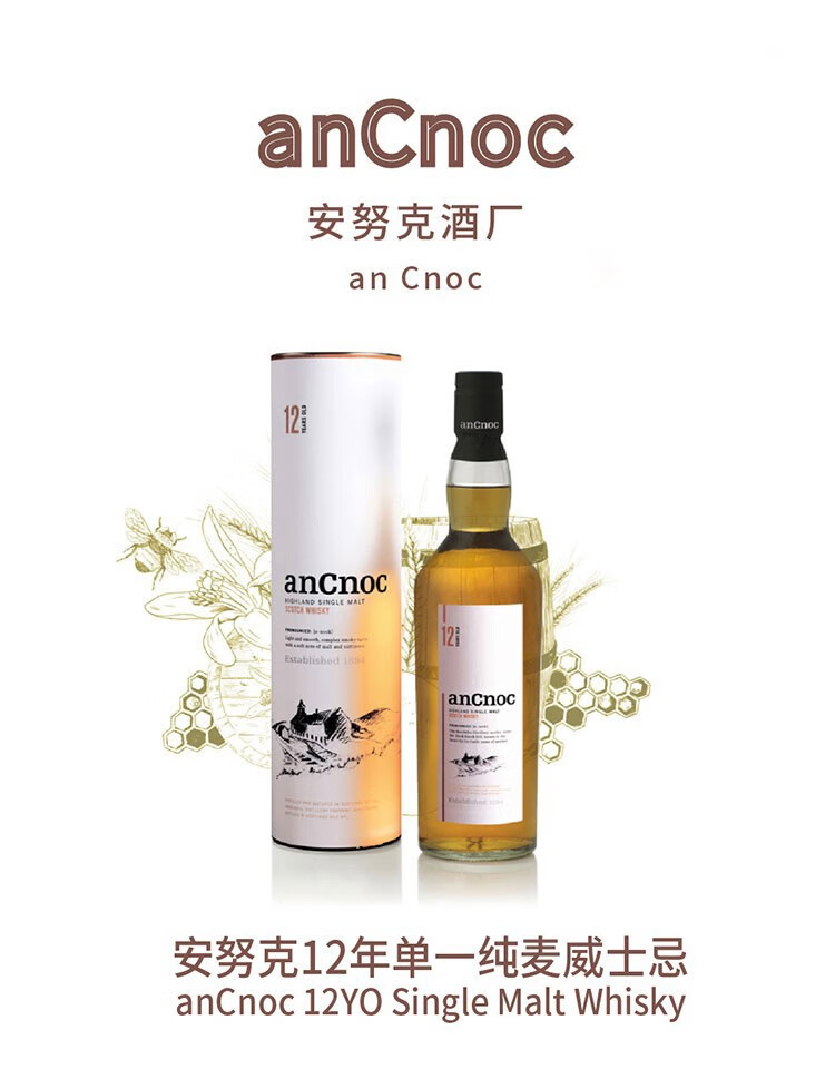 AnCnoc苏格兰高地产区纯麦单一麦芽威士忌原装进口洋酒 安努克24年 700ml