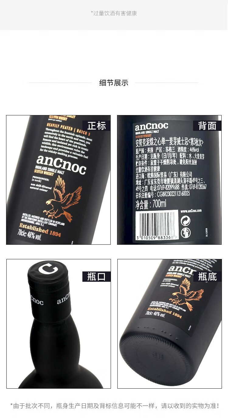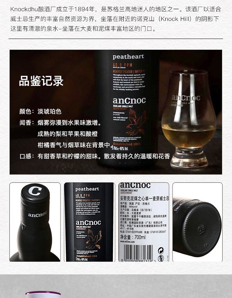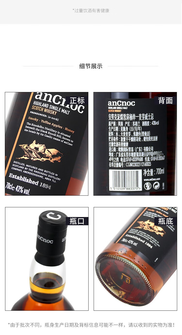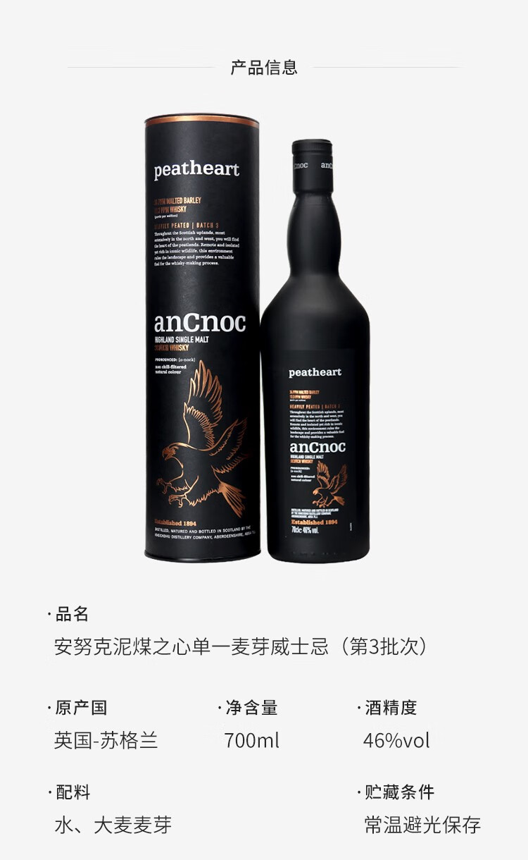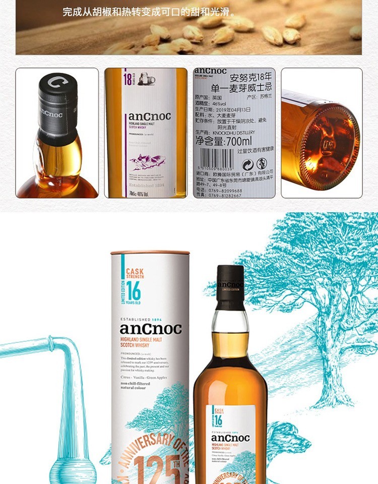AnCnoc苏格兰高地产区纯麦单一麦芽威士忌原装进口洋酒 安努克24年 700ml