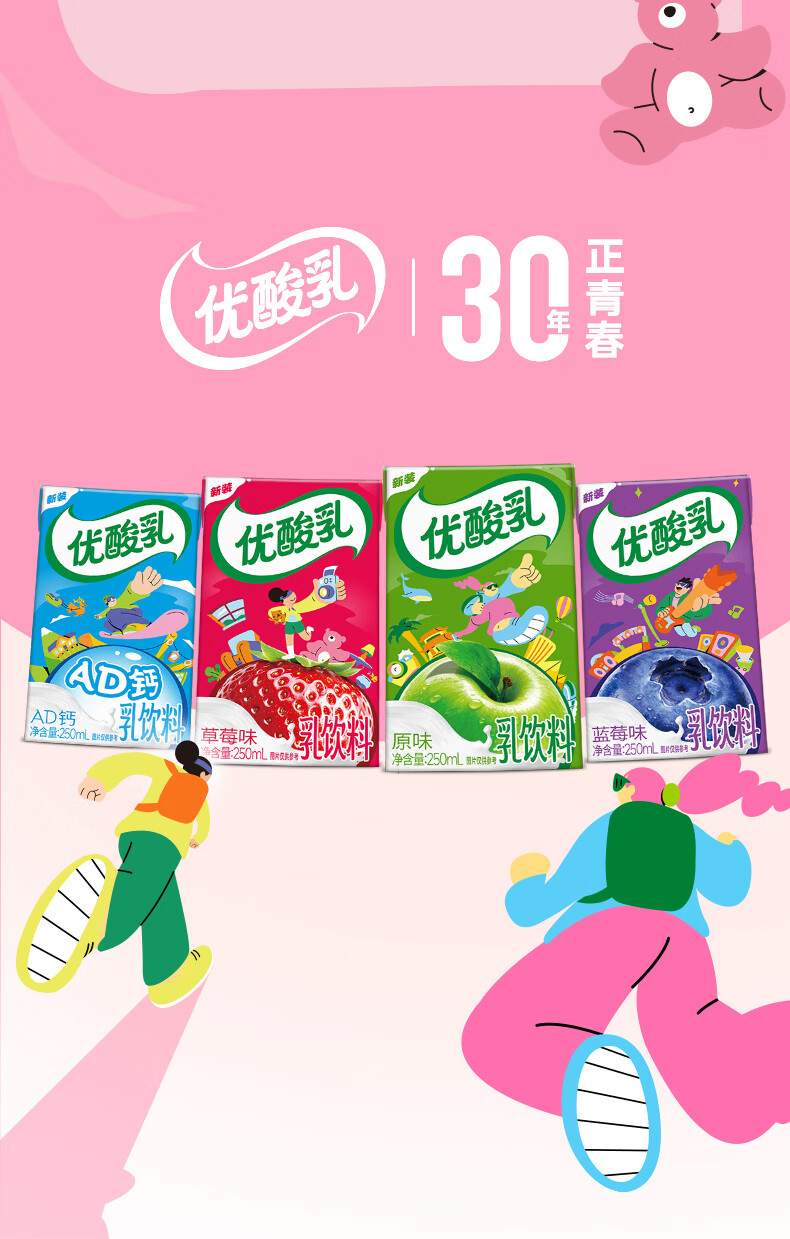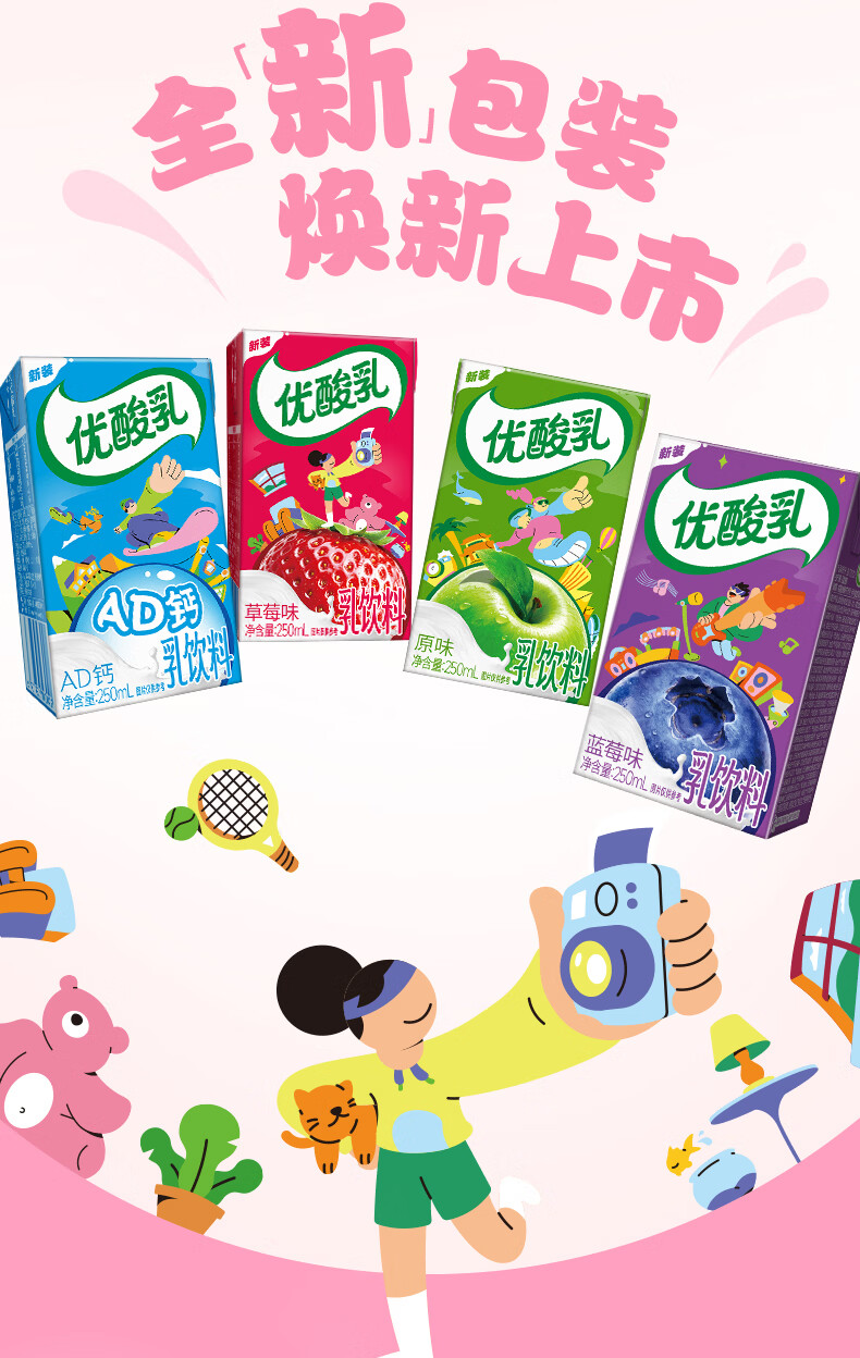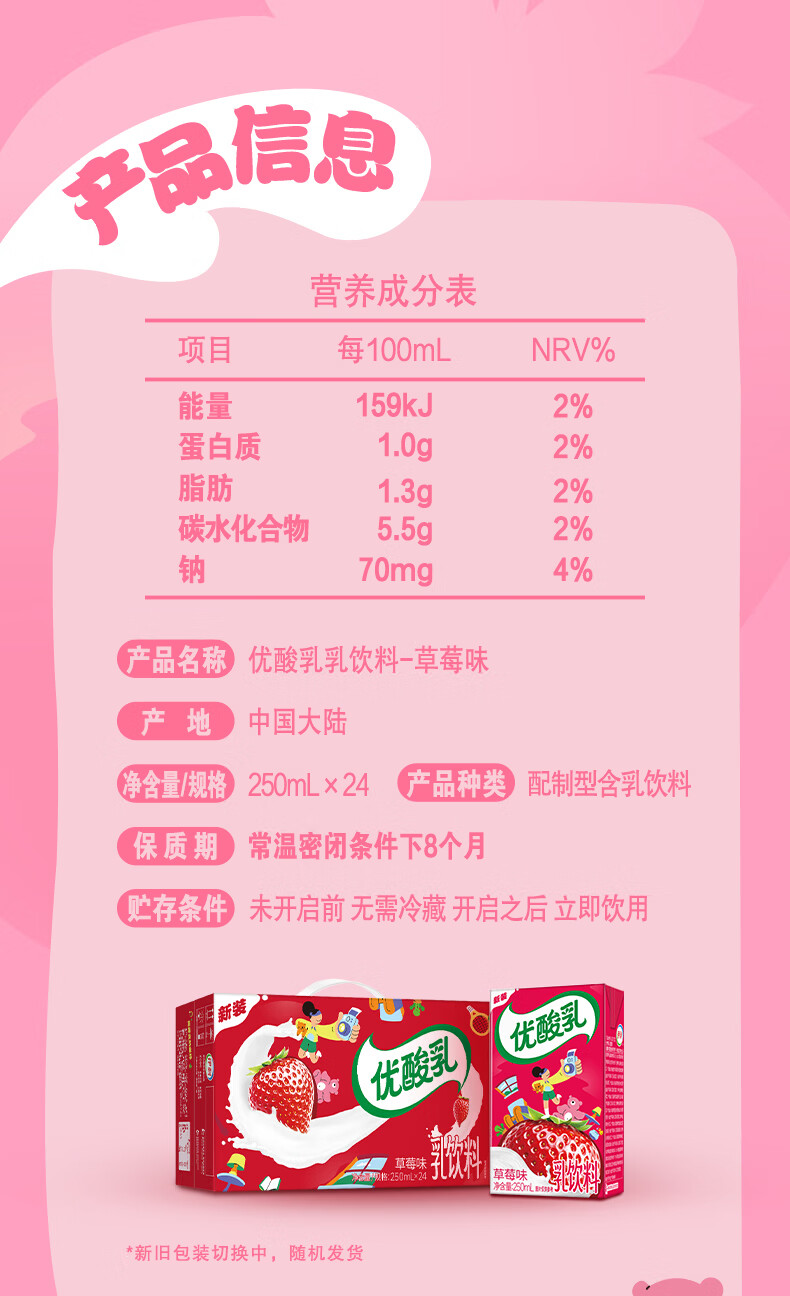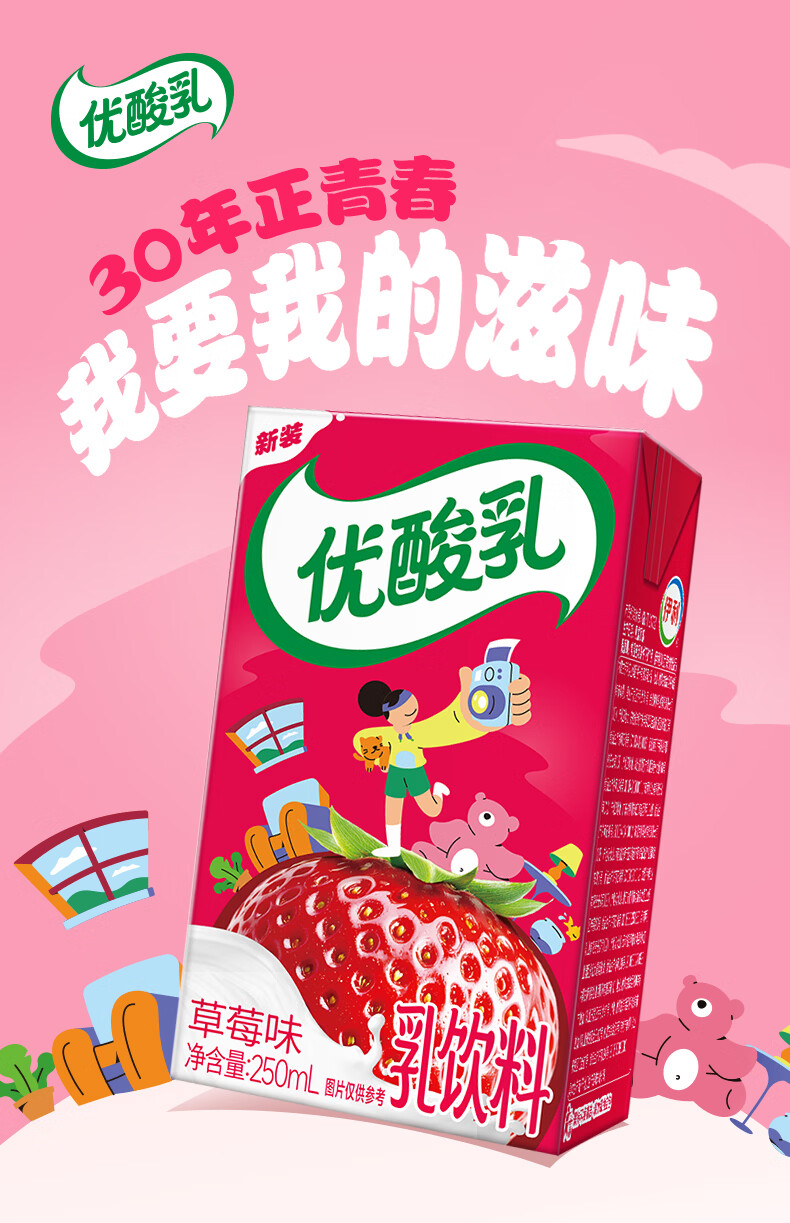 伊利优酸乳草莓味250ml*24盒/箱 风味乳饮料 营养早餐 礼盒装 1月产