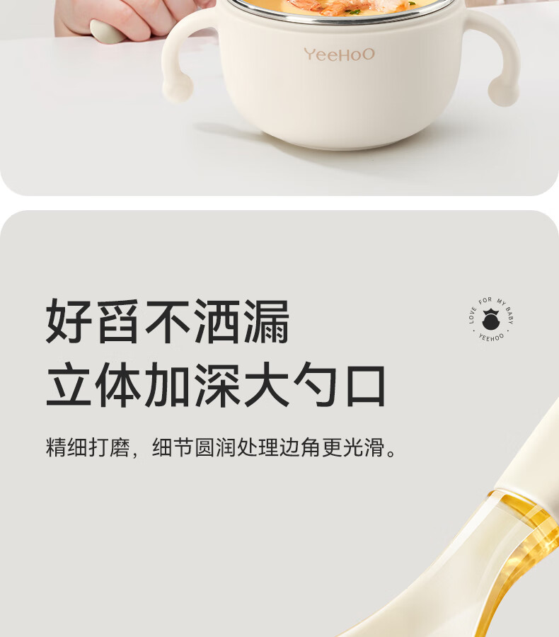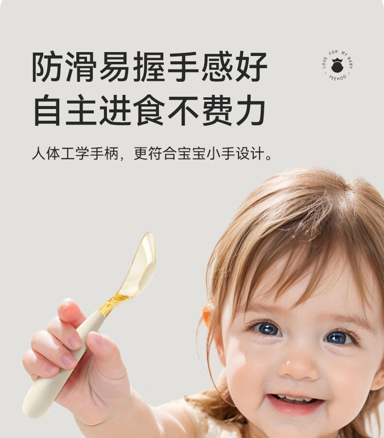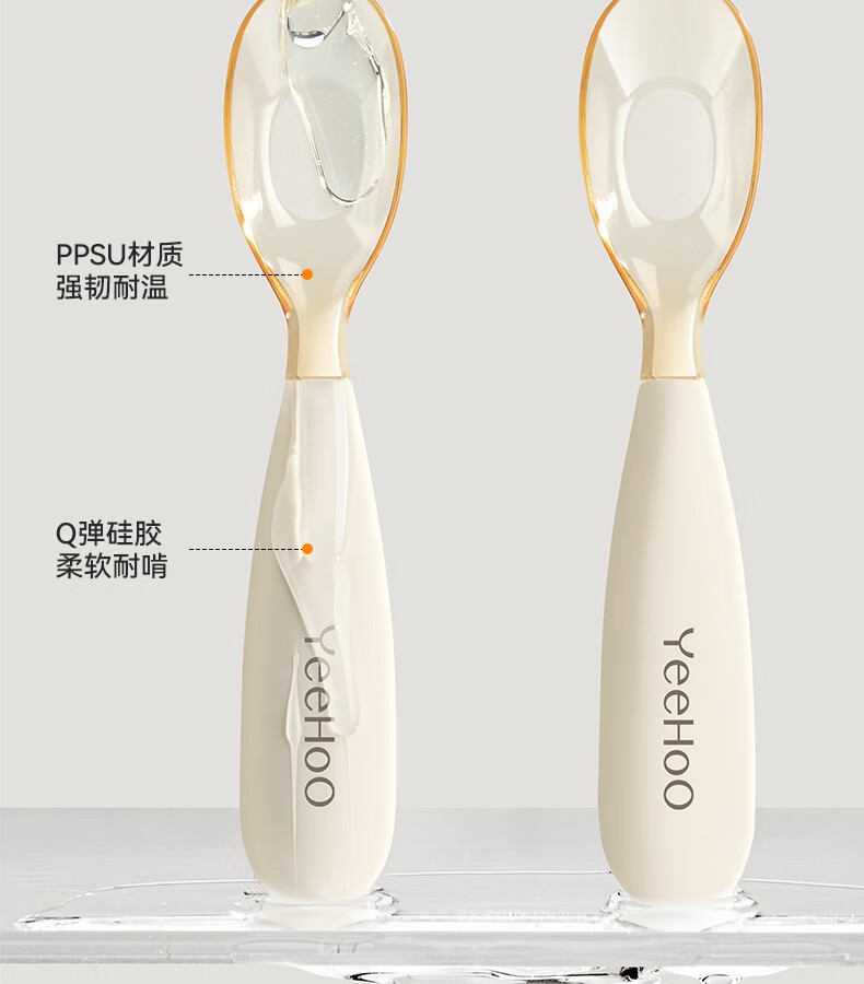 英氏(YEEHOO)宝宝元宝勺子婴儿学吃饭训练儿童硅胶自主进食勺ppsu辅食餐具