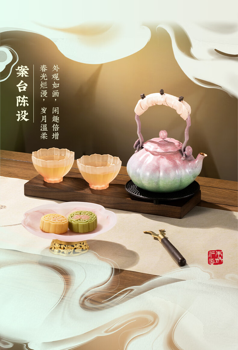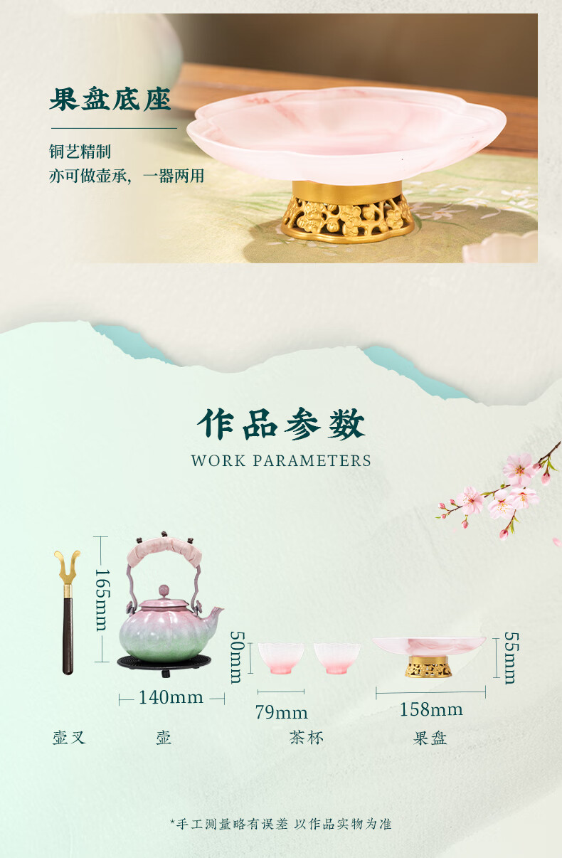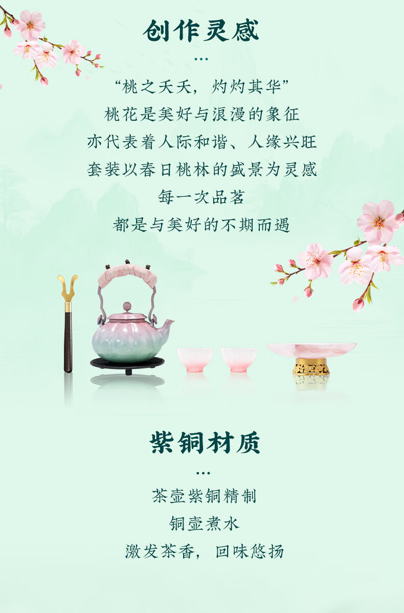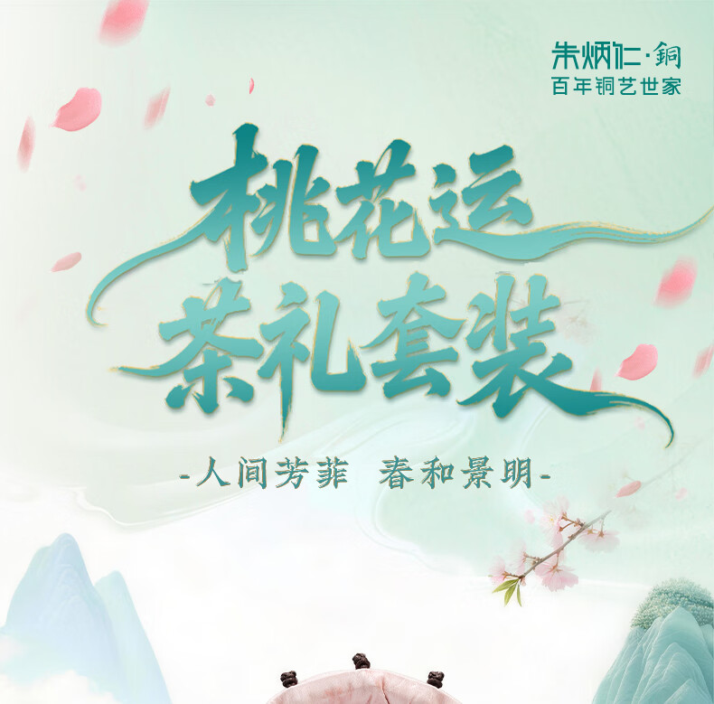 朱炳仁铜 桃花运茶礼套装 铜壶铜茶盘手工铜壶茶杯茶盘养生茶壶茶具 桃花运茶礼套装