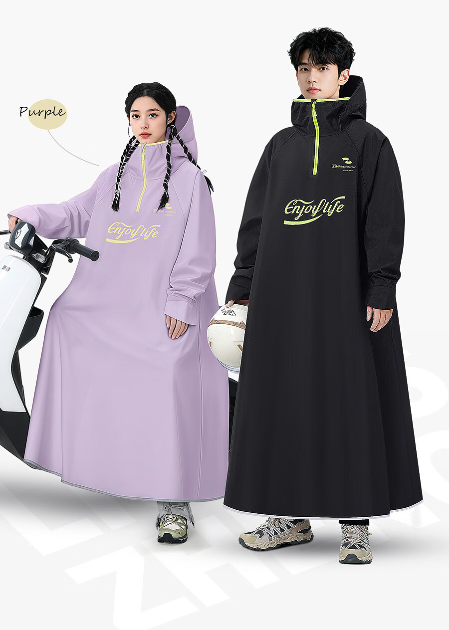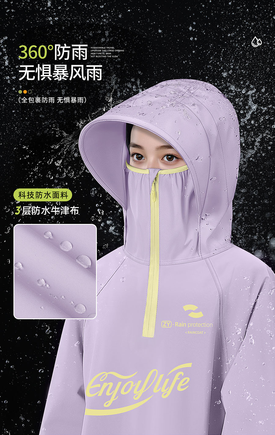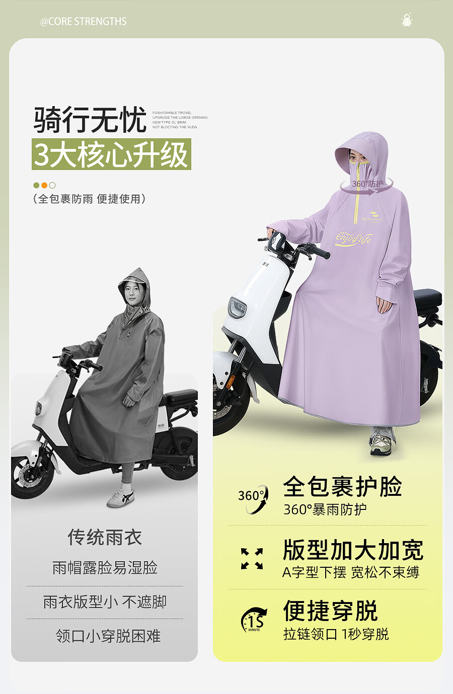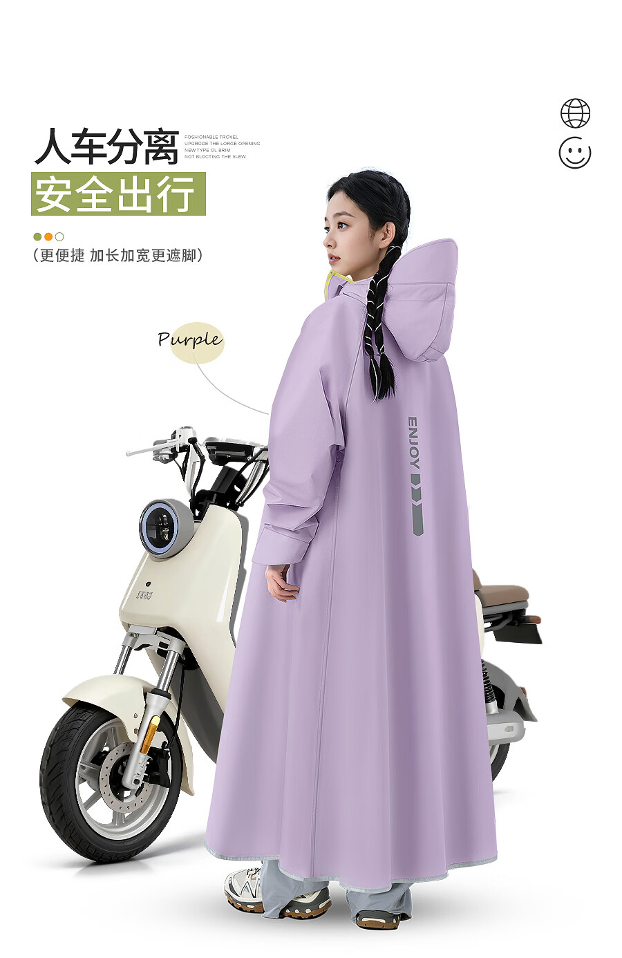 正雨雨衣一体式全身防暴雨电动车专用骑行成人长款加大加厚单人雨披 紫色【全包裹】加长袖口+A字款遮脚 M【适合150-160】当天发货