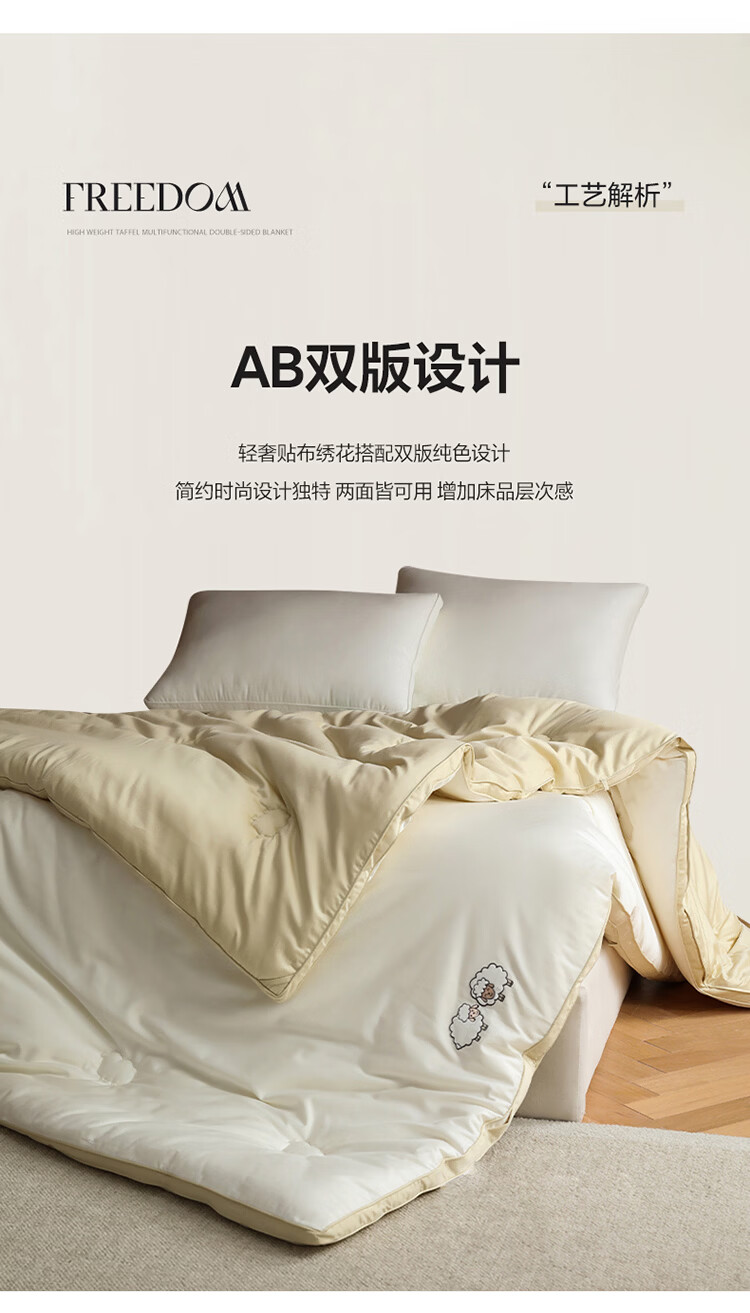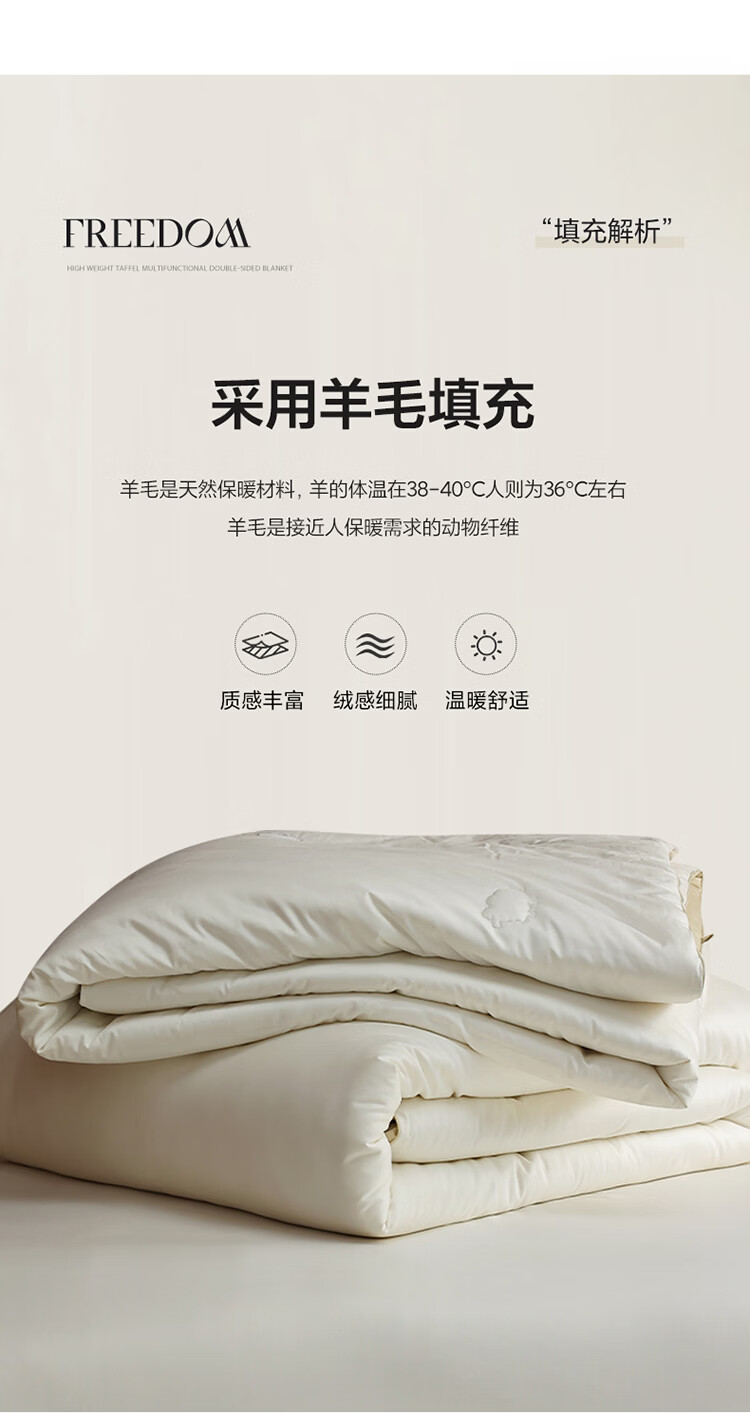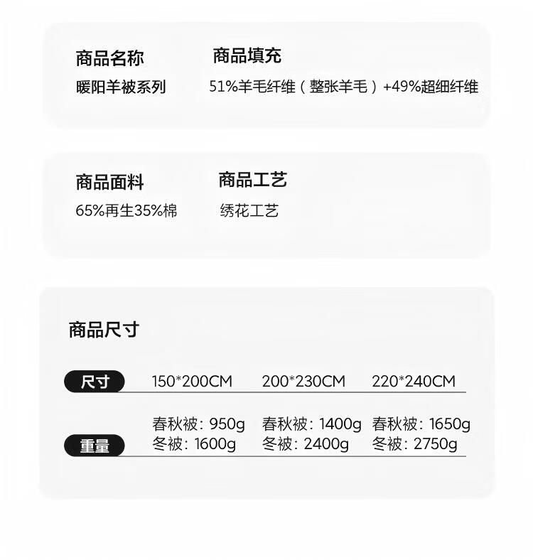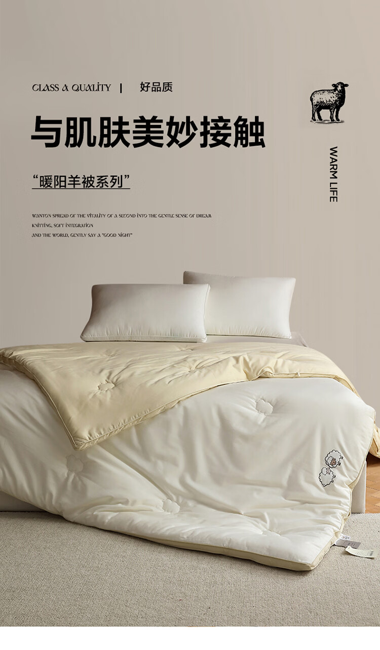 ROLAND LIVE简约双面可用春秋被51%羊毛单双人保暖冬被家用被子被芯透气 EOEO 暖阳羊被子 春秋被150cm*200cm【约4斤】