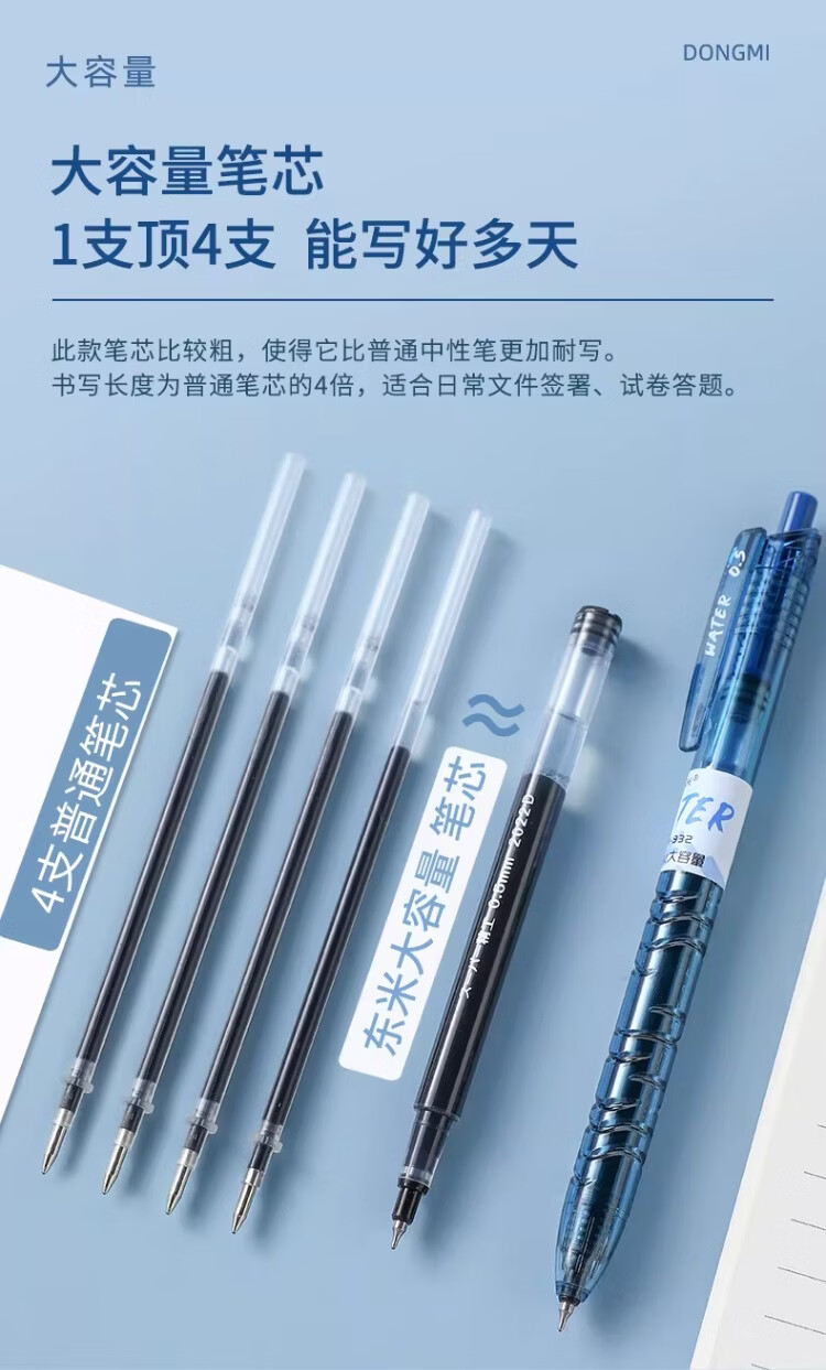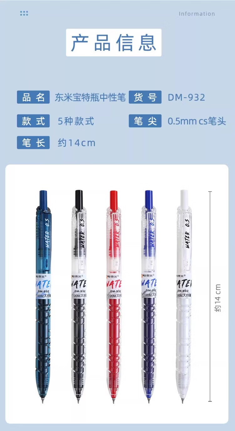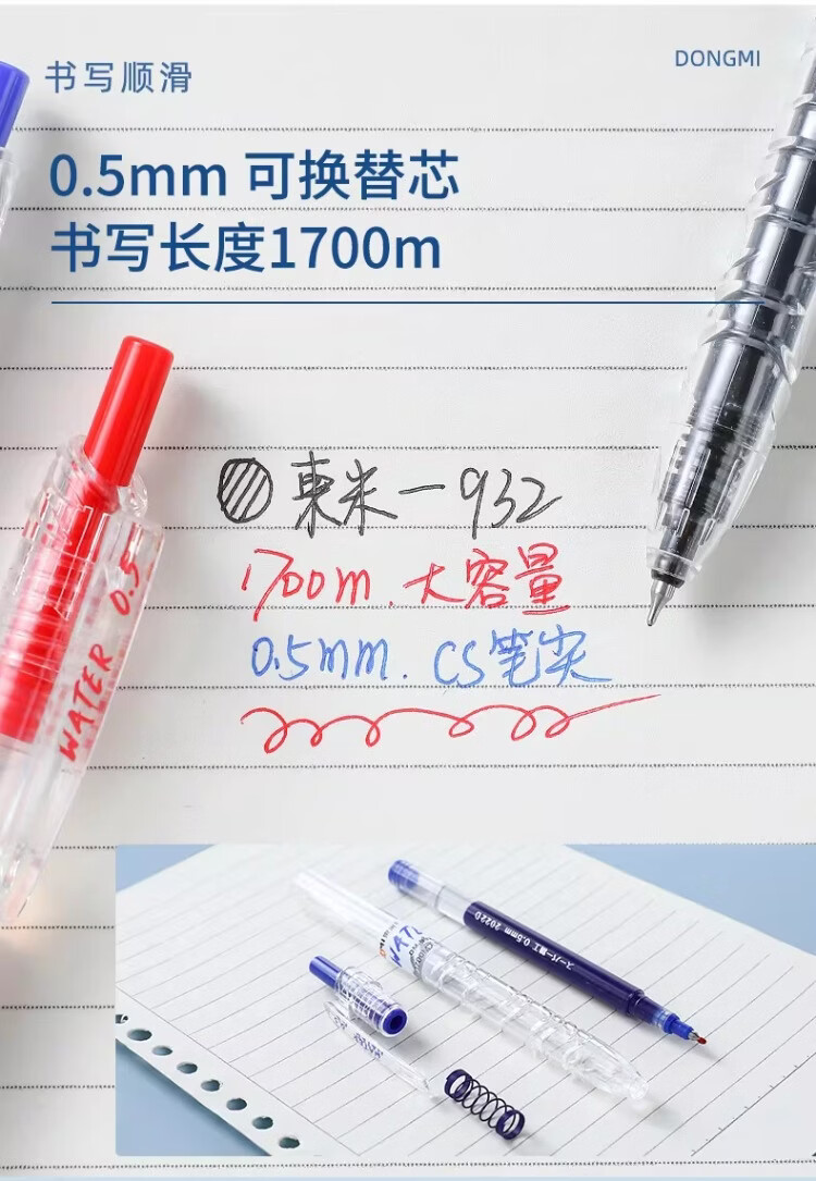 東米中性笔宝特瓶按动0.5东米签字笔子弹头小初中高学生开学必备办公大容量刷题笔 透明杆黑12支/盒932