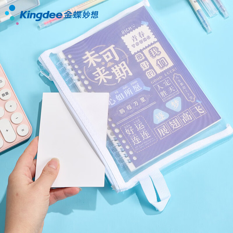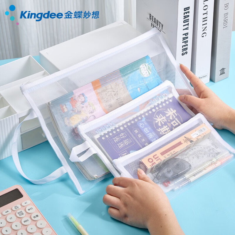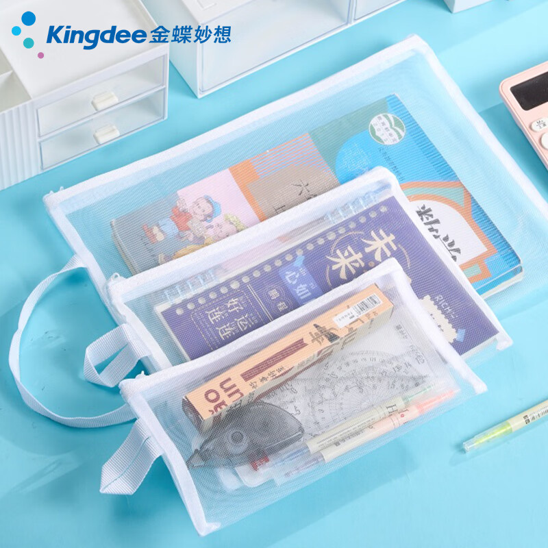 金蝶(kingdee)A4透明网纱尼龙笔袋考试专用文具袋铅笔盒男女孩通用高颜值铅笔袋小学生高中初中生公考收纳袋