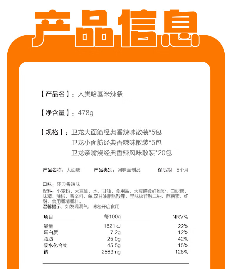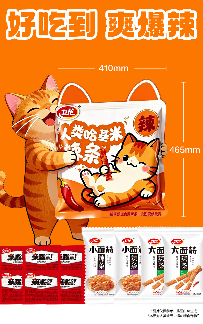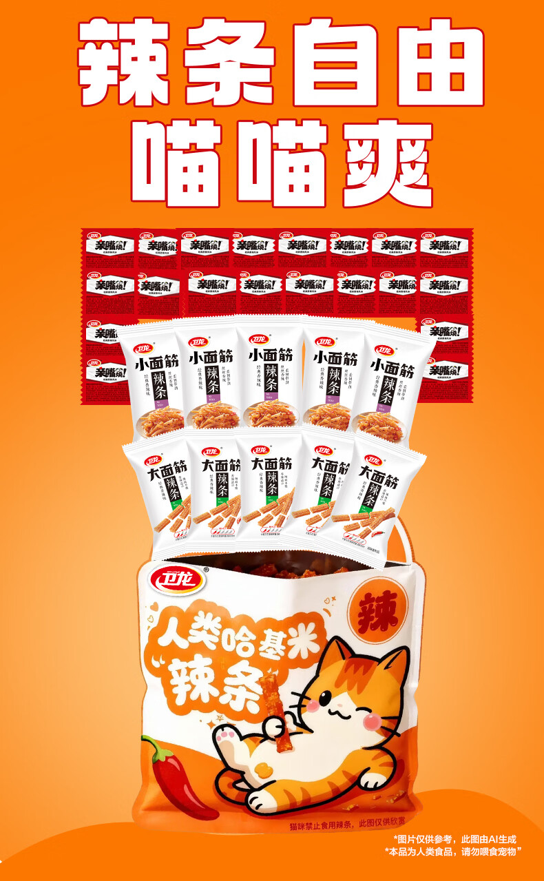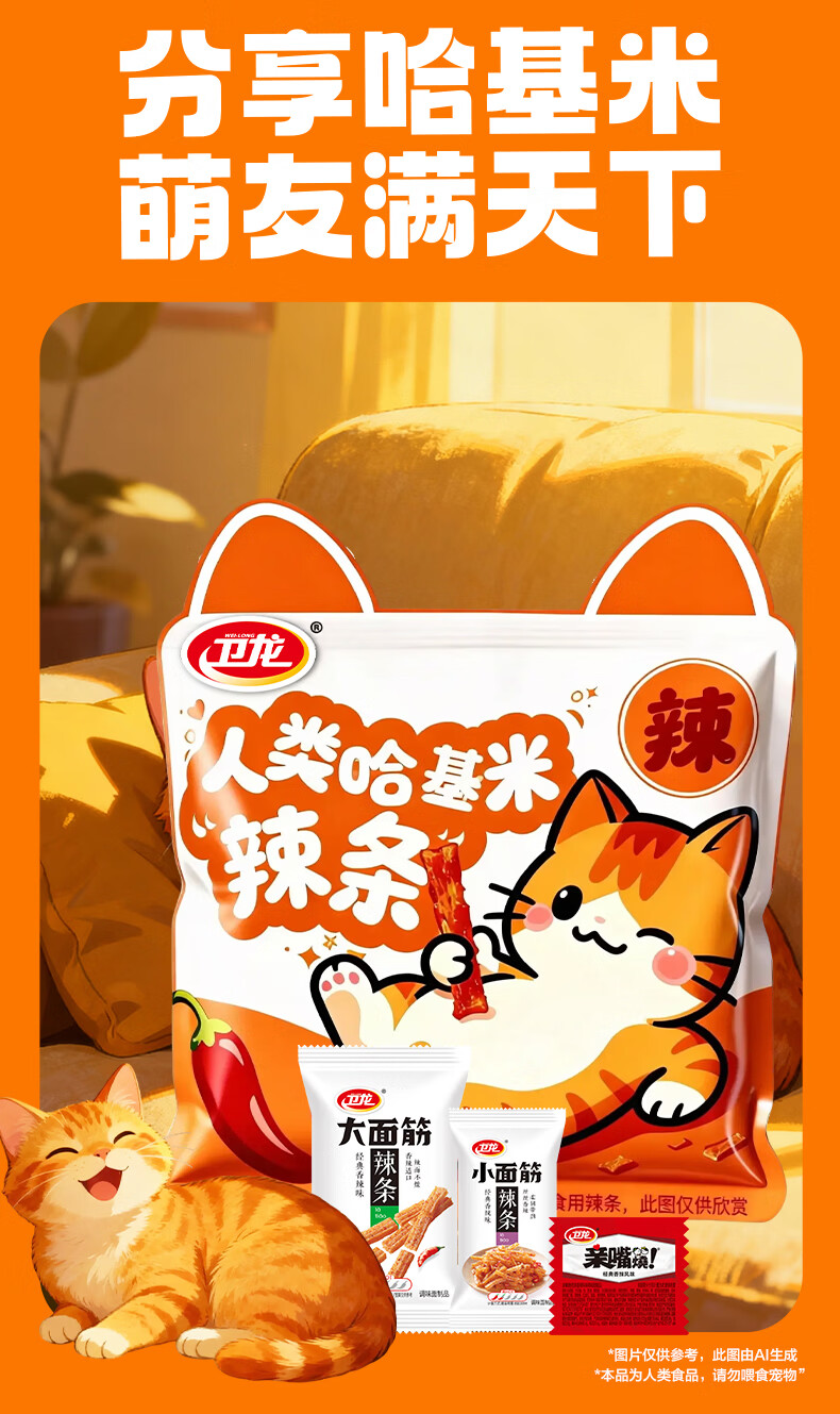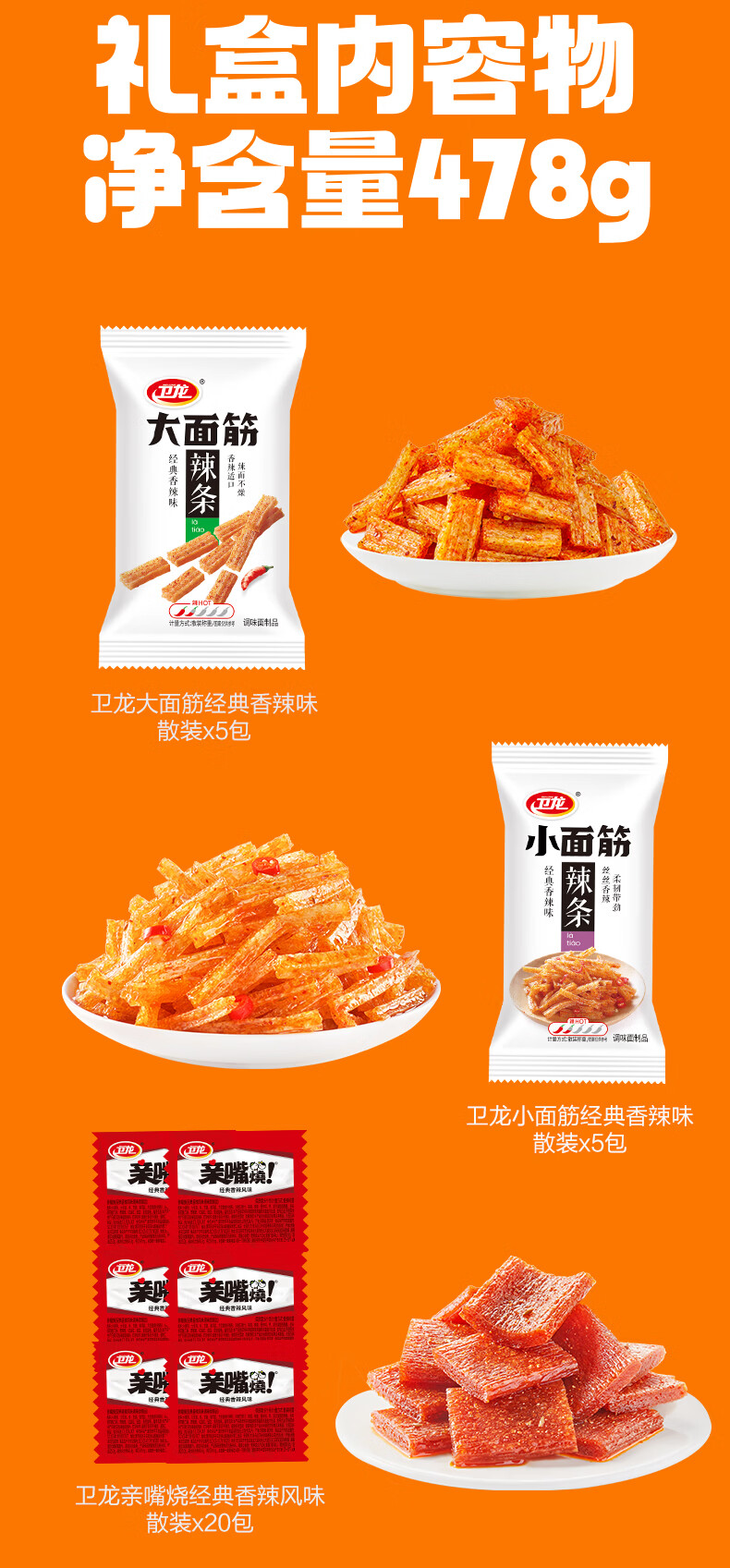 卫龙 辣条 大小面筋 亲嘴烧 【哈基米】休闲零食大礼包478g年货节团购