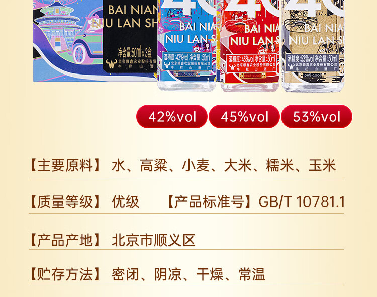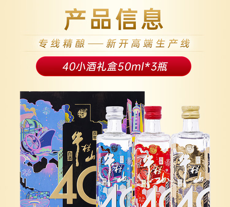 牛栏山 白酒 浓香型 百年牛栏山(40)系列 50ml*3礼盒