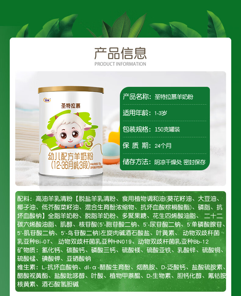 圣特拉慕【免费试喝】婴幼儿配方羊奶粉 3段(12-36个月适用) 150g*1罐