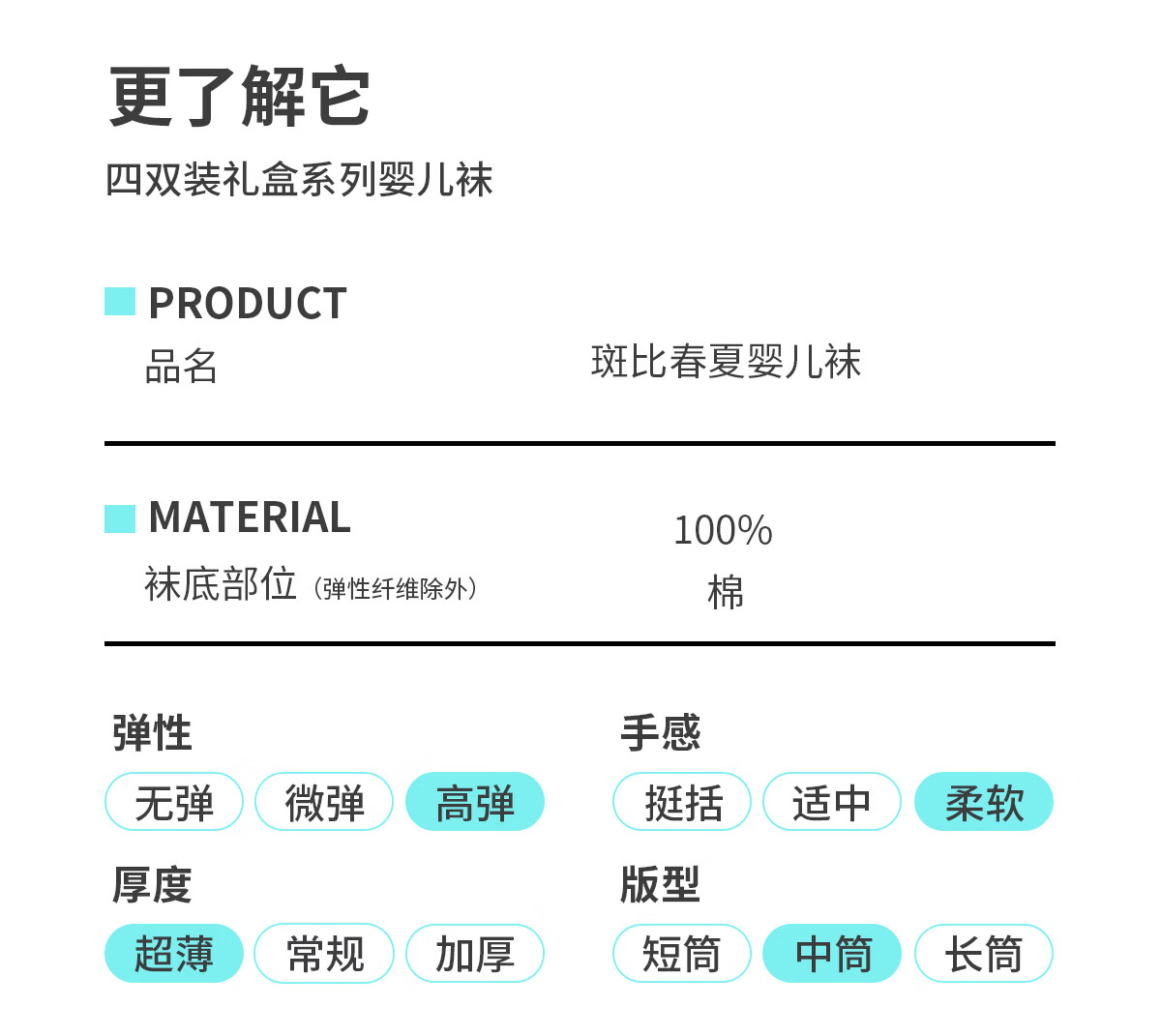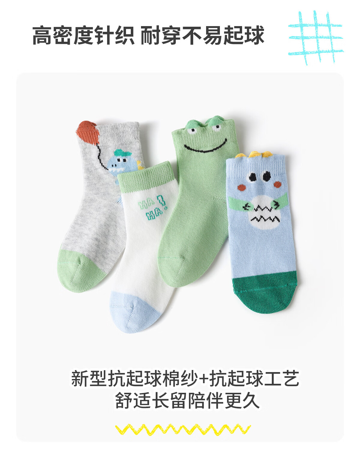 斑比春夏季婴儿袜子网眼透气纯棉新生儿幼儿薄款男宝宝抗菌无骨袜 B463 春夏款婴儿袜子 4双 0-6月 底长8-8.5cm【0-6】