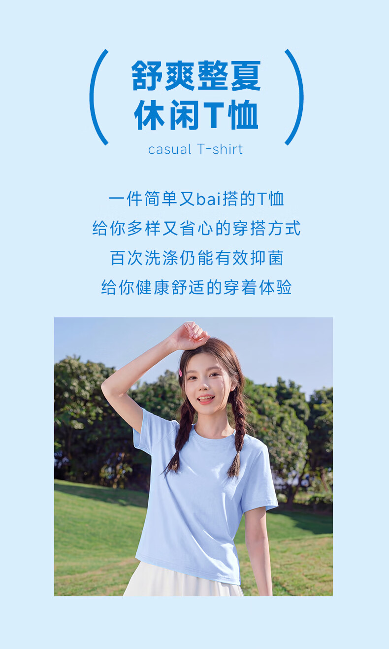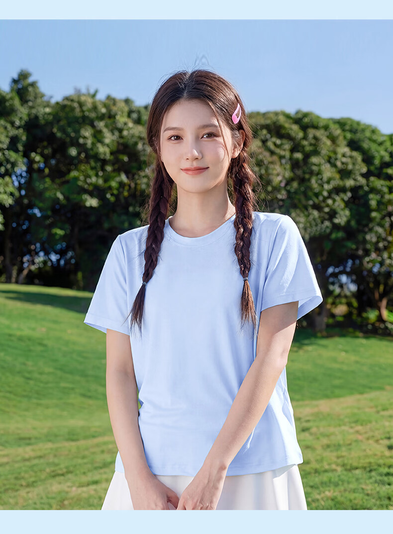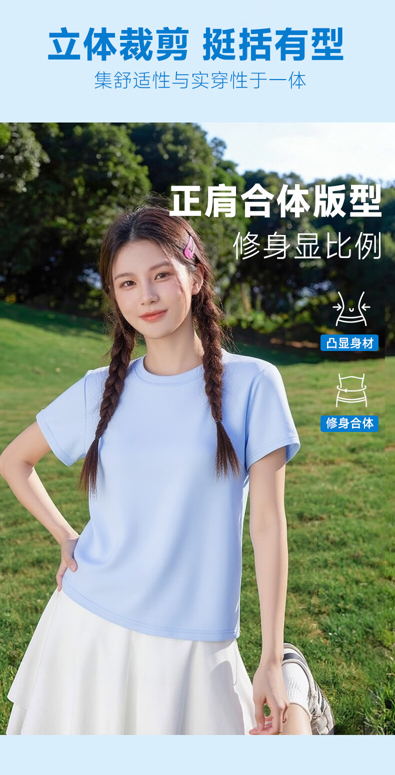 真维斯(Jeanswest)短袖t恤女2026新款夏季凉感户外运动健身半袖正肩抗菌轻薄上衣服 天蓝 剪影故事 S