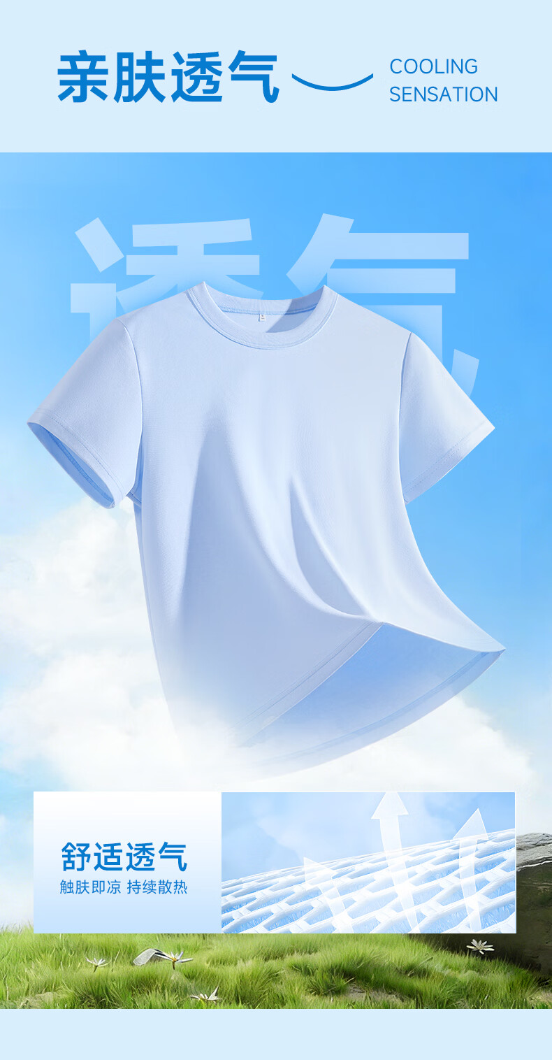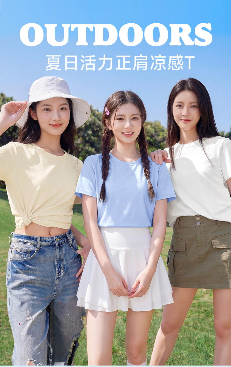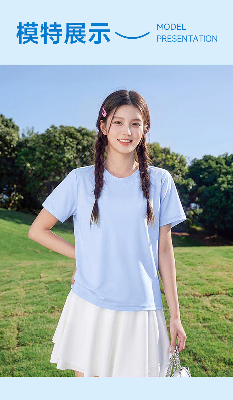 真维斯(Jeanswest)短袖t恤女2026新款夏季凉感户外运动健身半袖正肩抗菌轻薄上衣服 天蓝 剪影故事 S