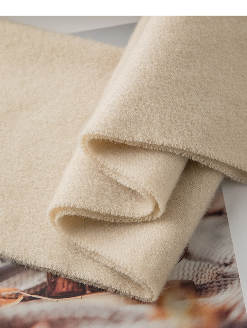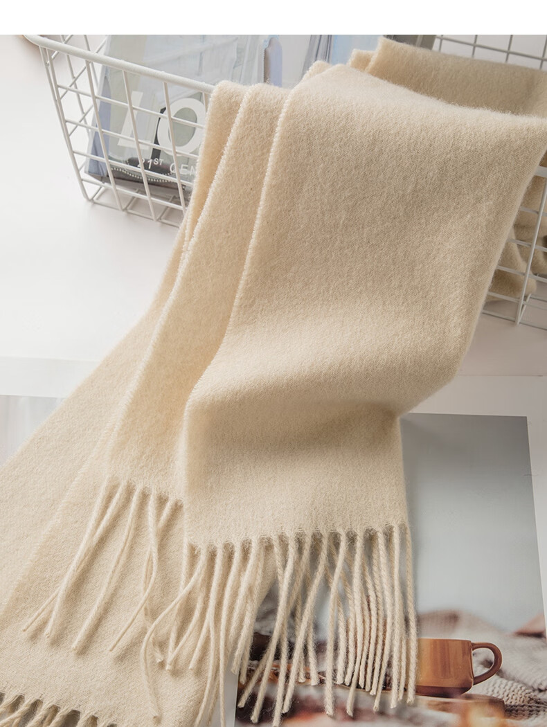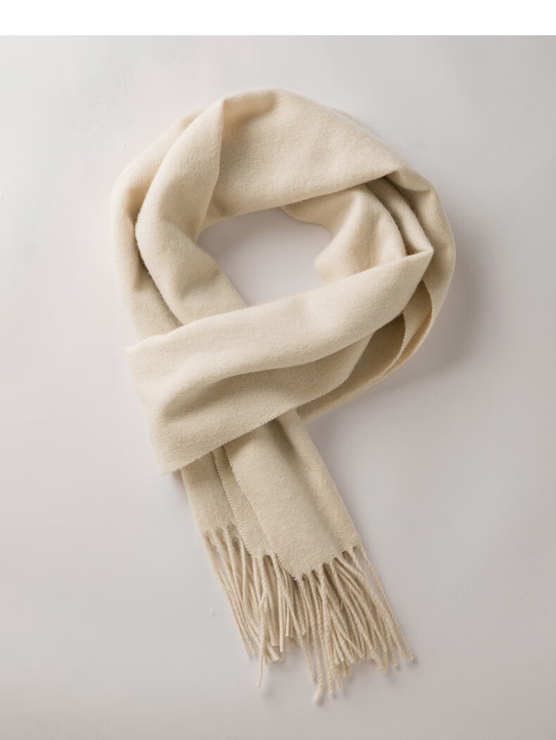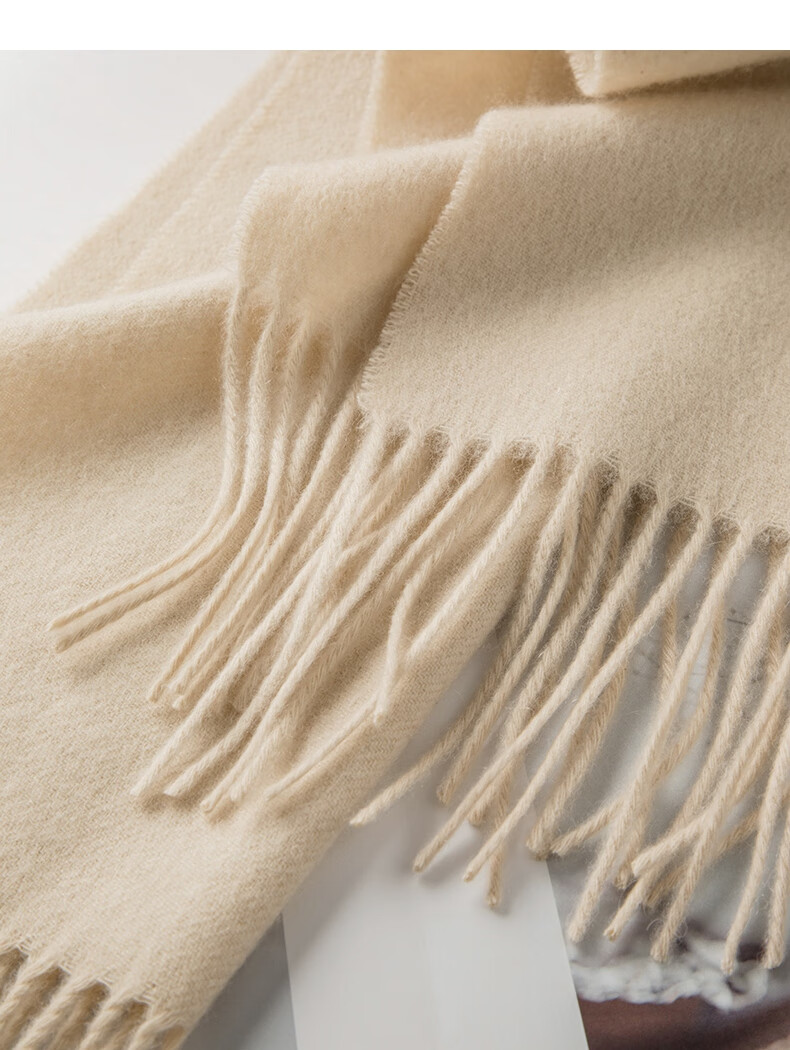 晚白【新品】【90绵羊毛+10骆驼绒】经典高级感气质百搭含流苏围巾 杏仁奶白 180cm*30cm(含流苏)