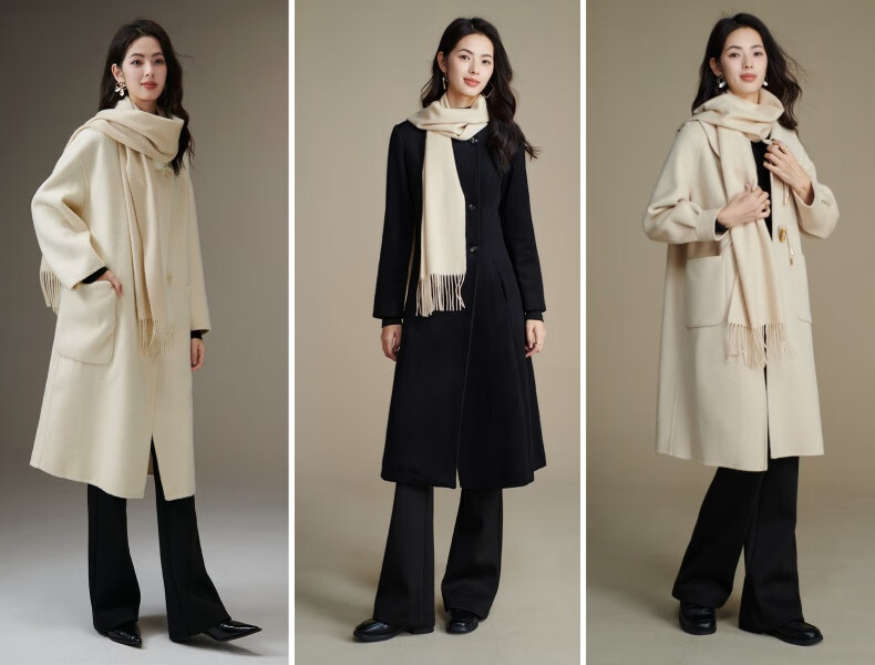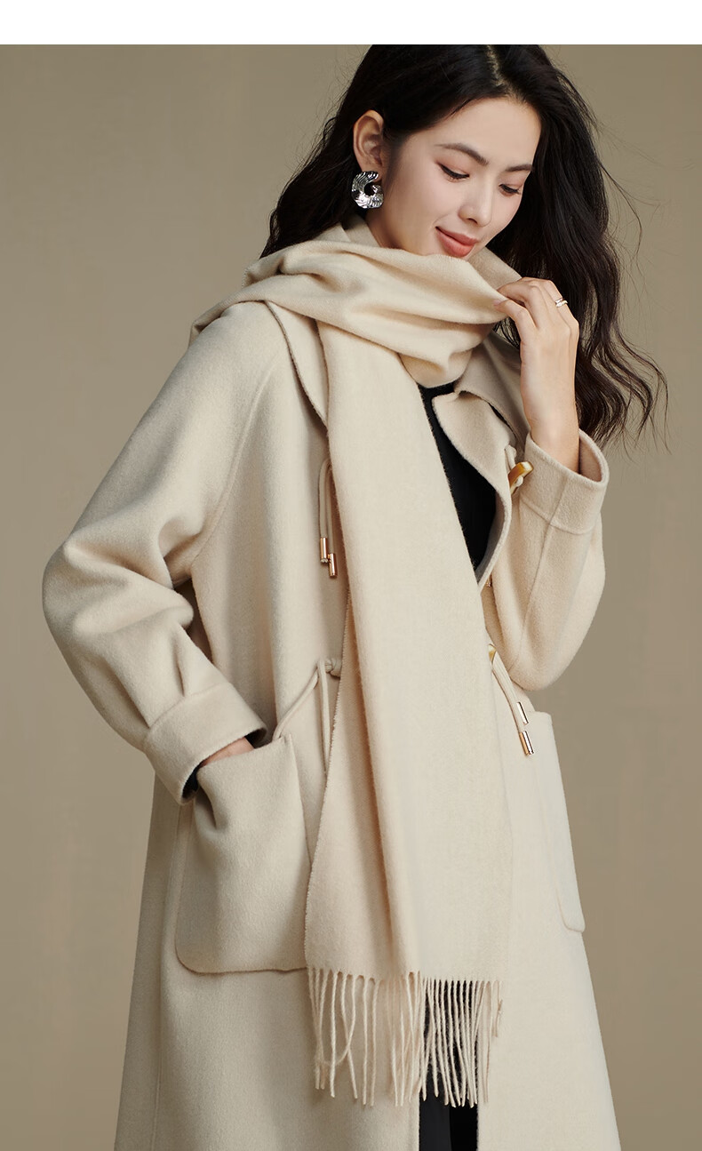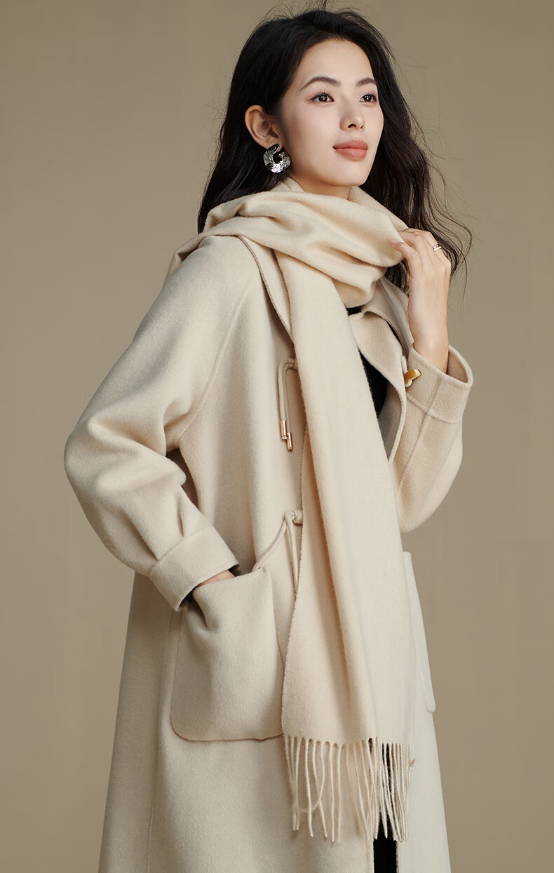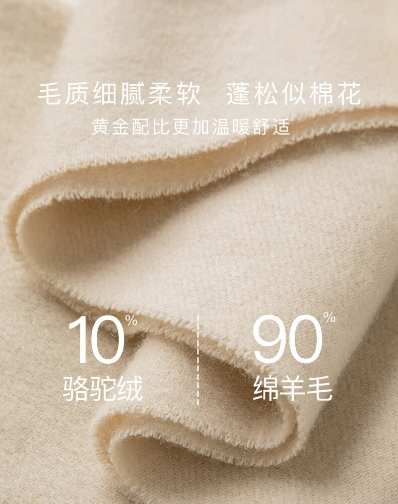 晚白【新品】【90绵羊毛+10骆驼绒】经典高级感气质百搭含流苏围巾 杏仁奶白 180cm*30cm(含流苏)