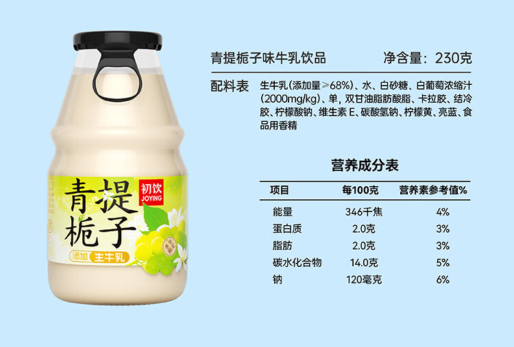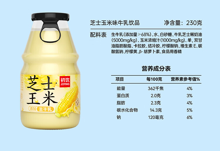 初饮风味奶饮品添加生牛乳奶香浓郁混合口味230g*6瓶