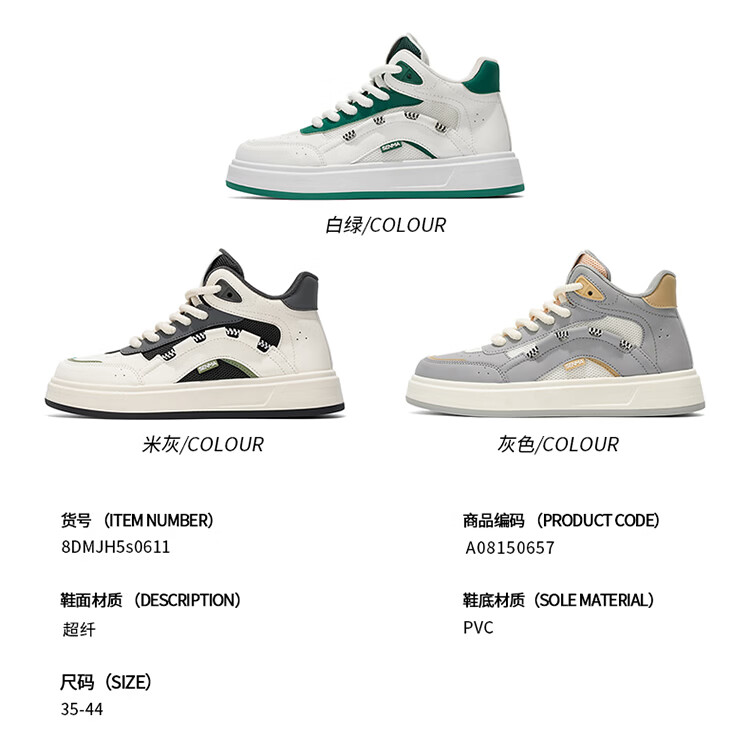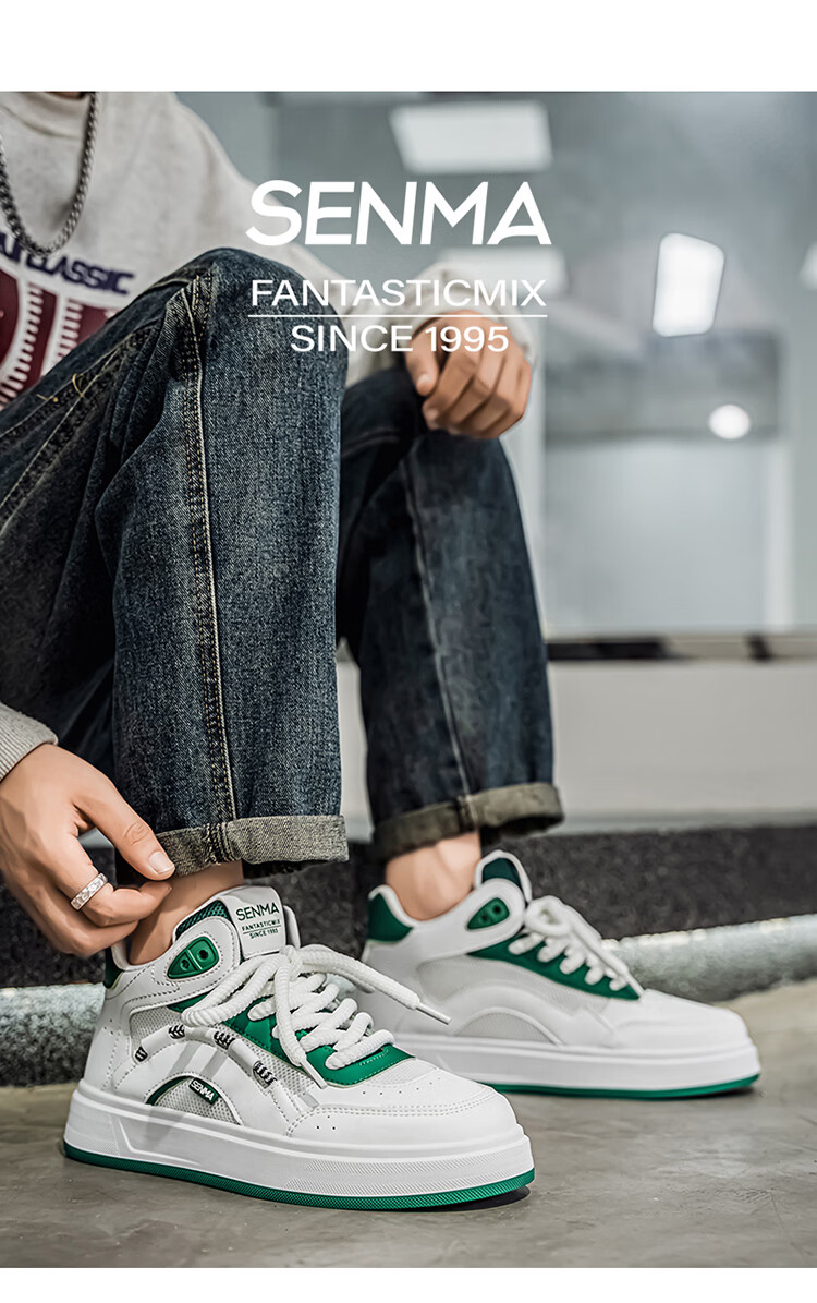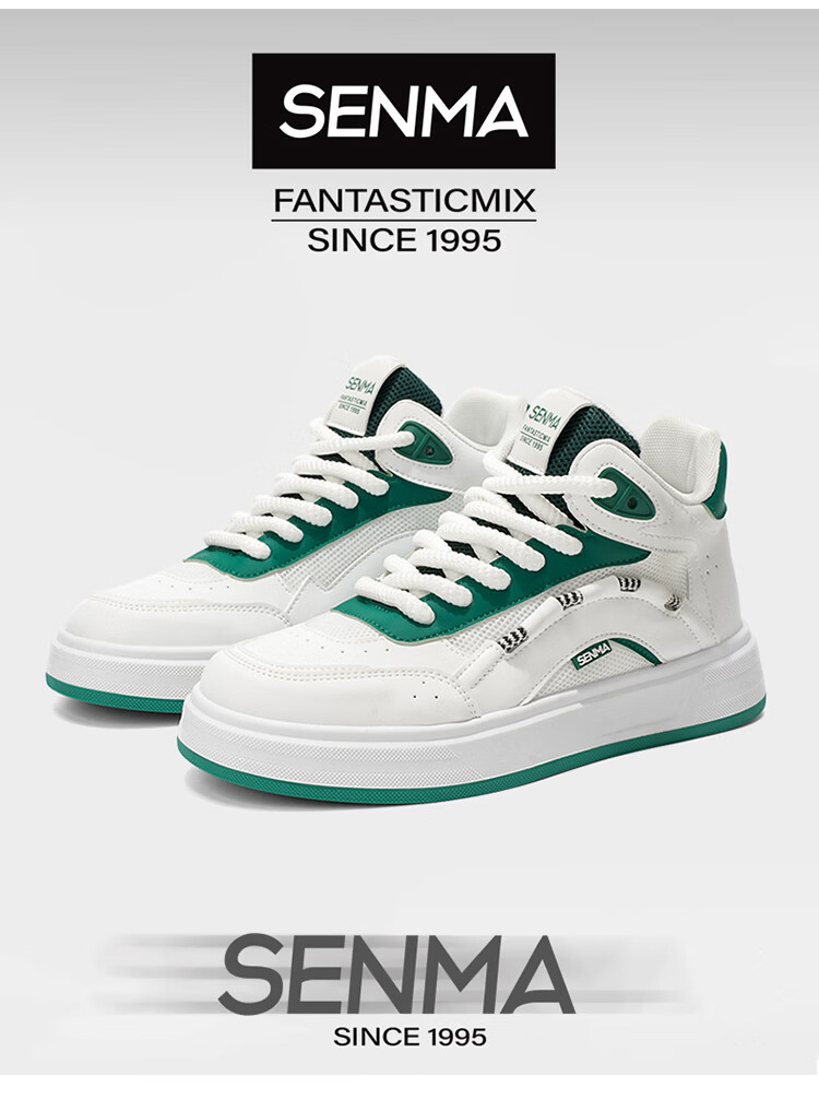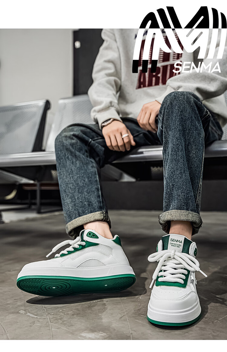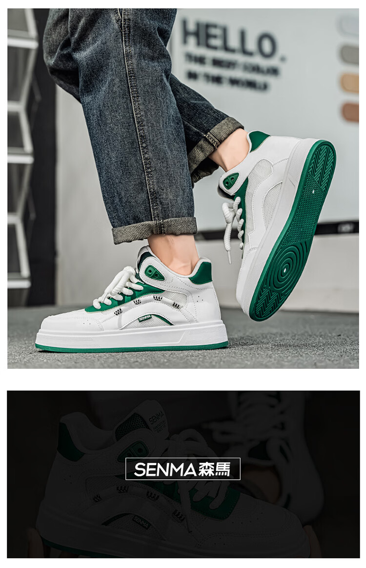 森馬高帮男鞋2026新款春季百搭休闲板鞋男士户外厚底增高运动小白潮鞋 白绿【基础款】 39 标准码数/现货秒发