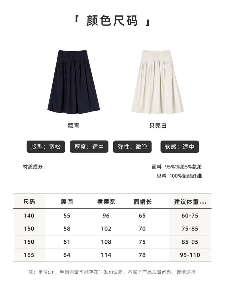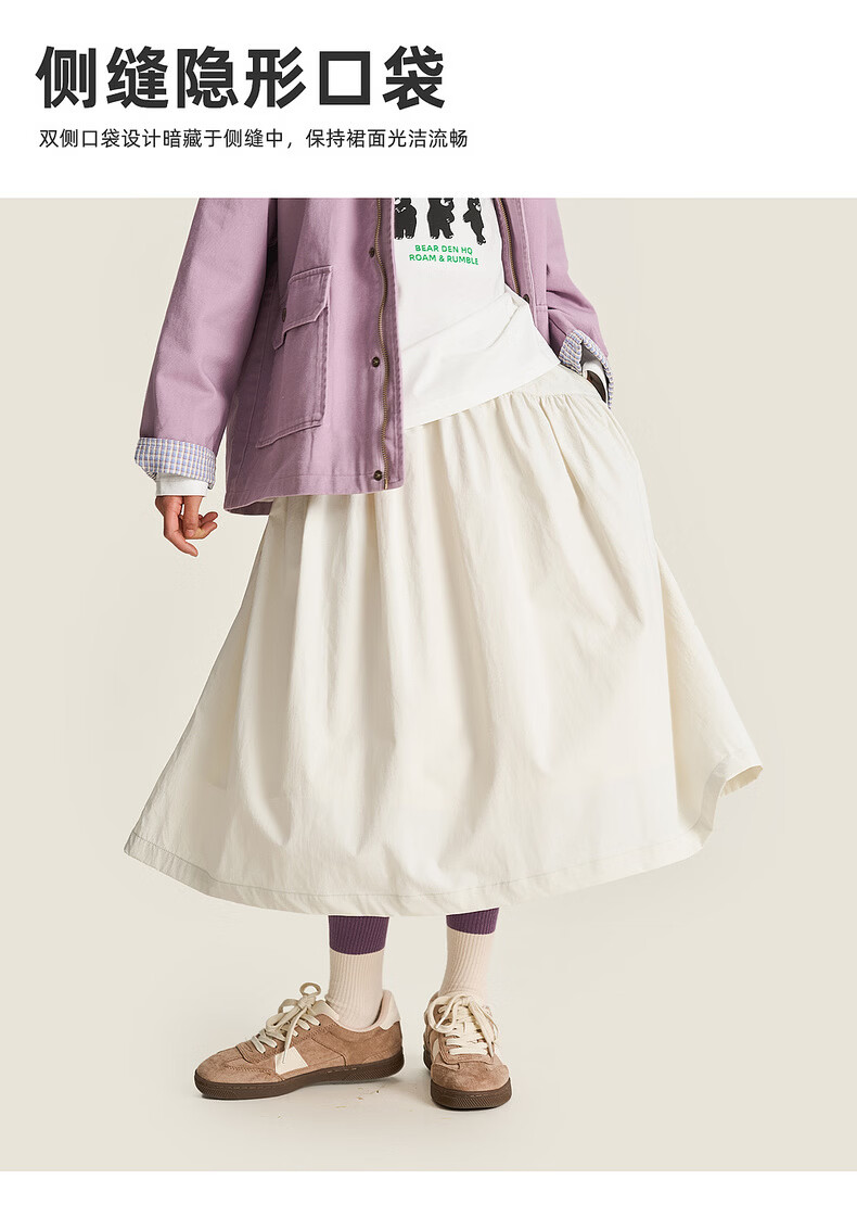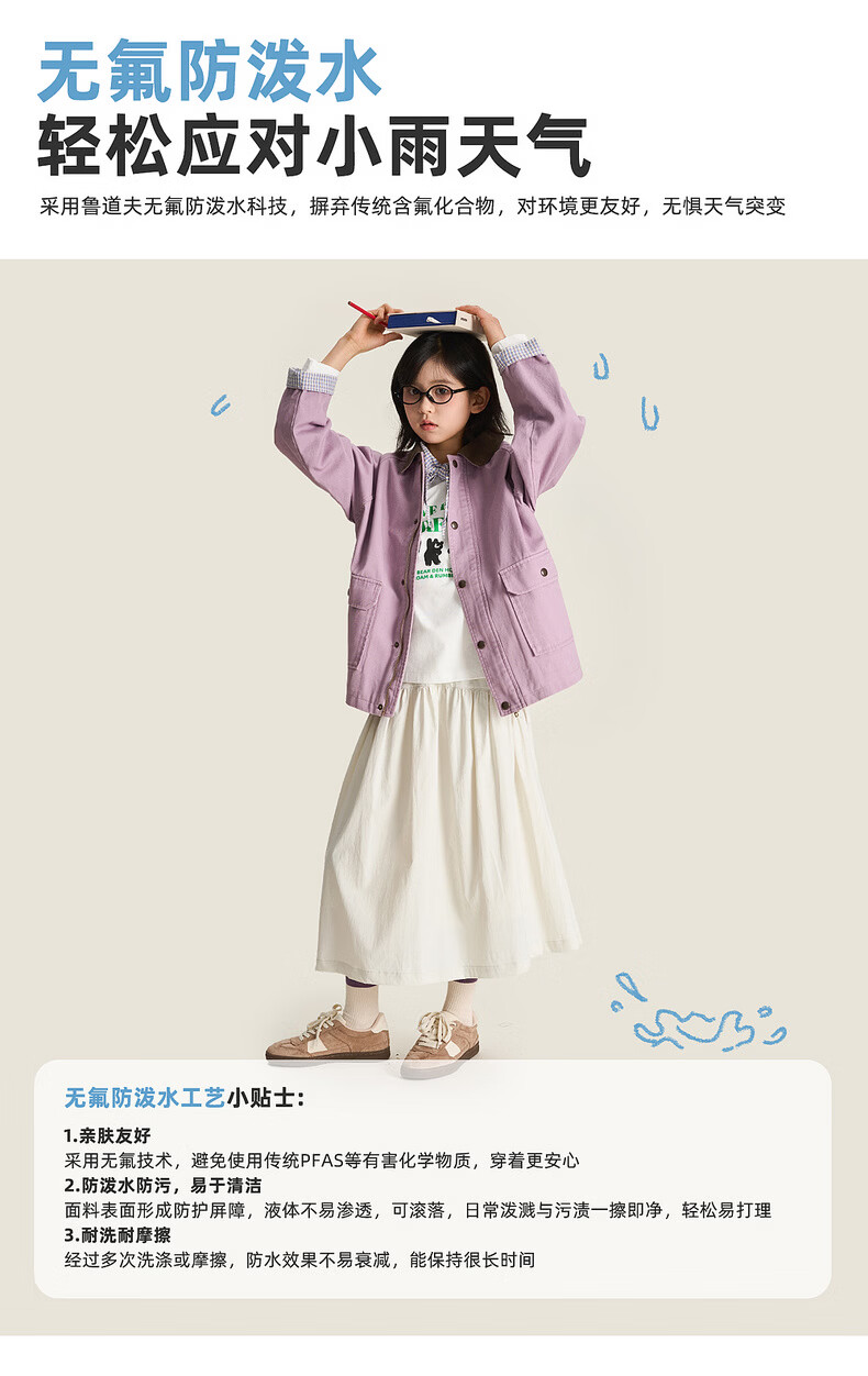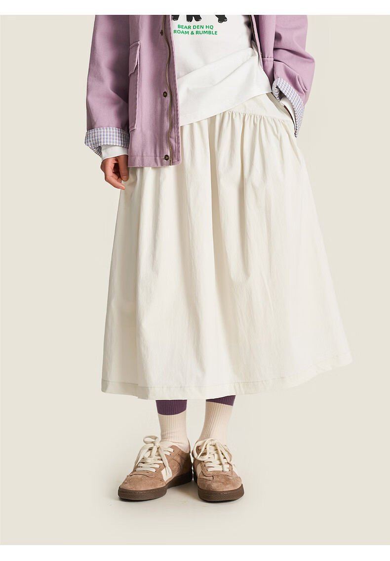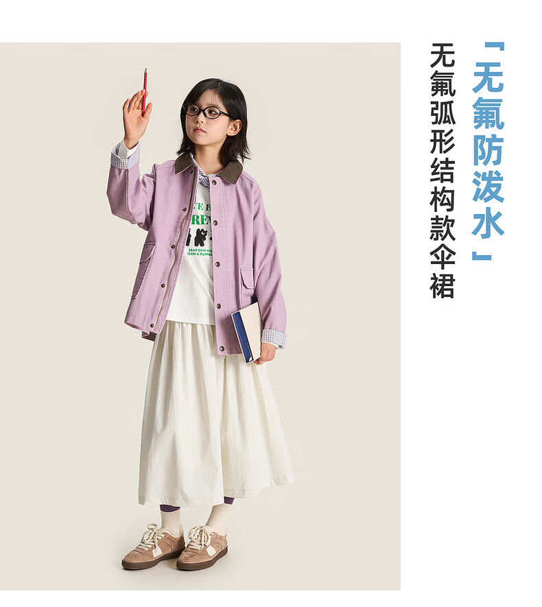 棉叔叔【2.3新品无氟防水伞裙】女童春季弧形结构款气质半身长伞裙2026 贝壳白 150 150