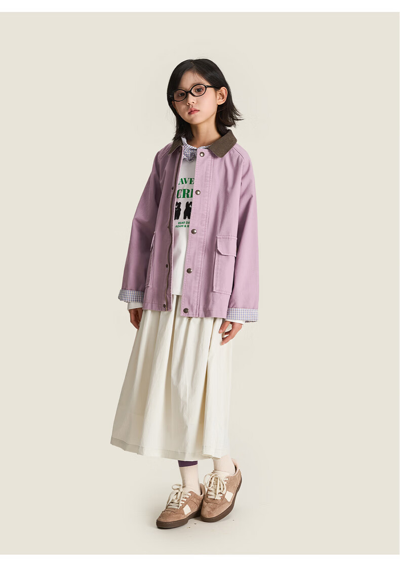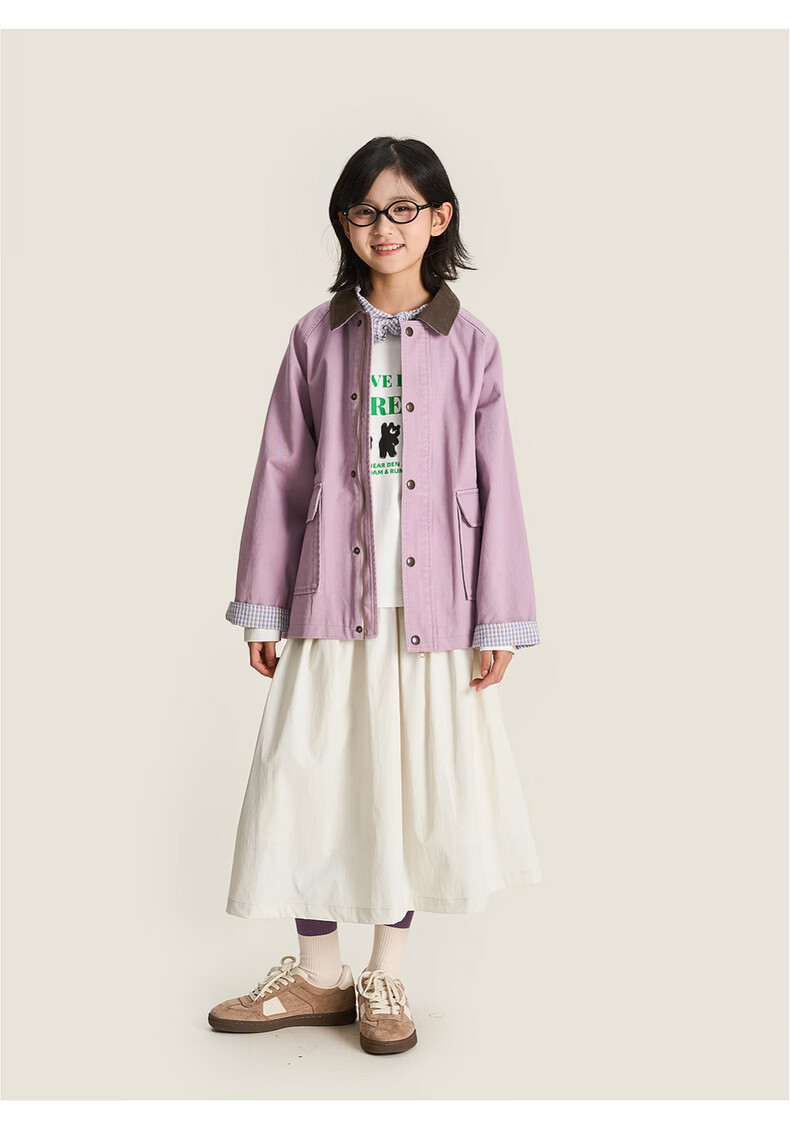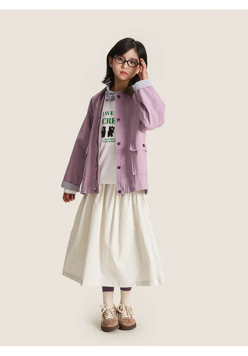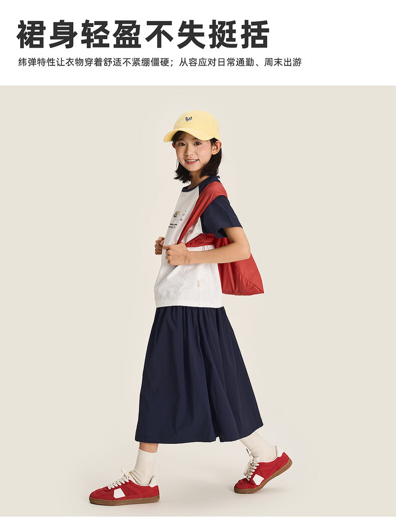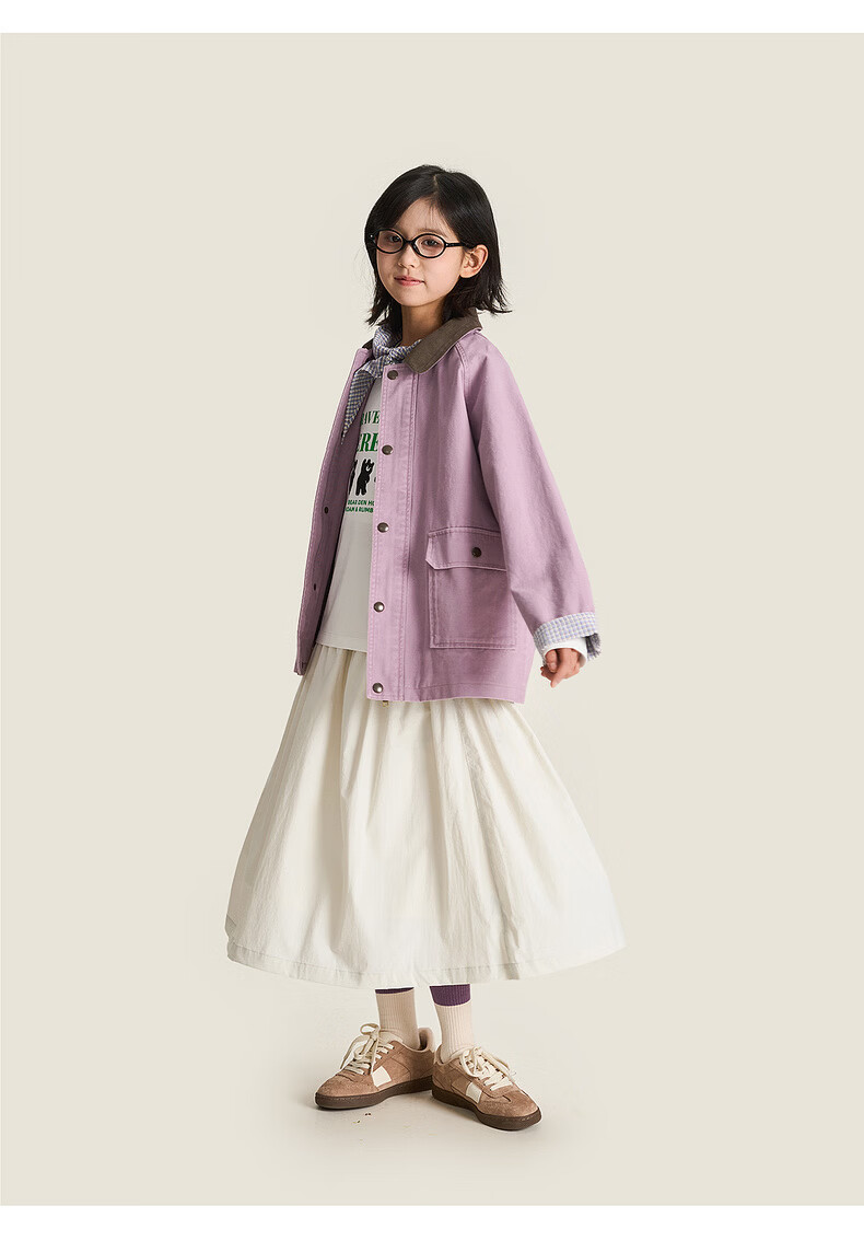 棉叔叔【2.3新品无氟防水伞裙】女童春季弧形结构款气质半身长伞裙2026 贝壳白 150 150