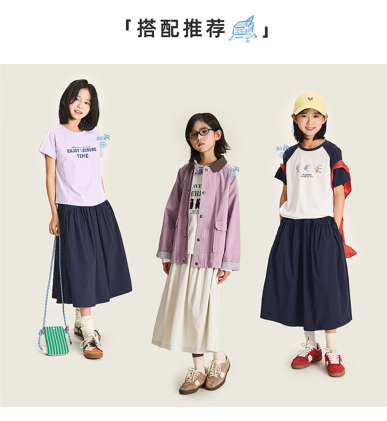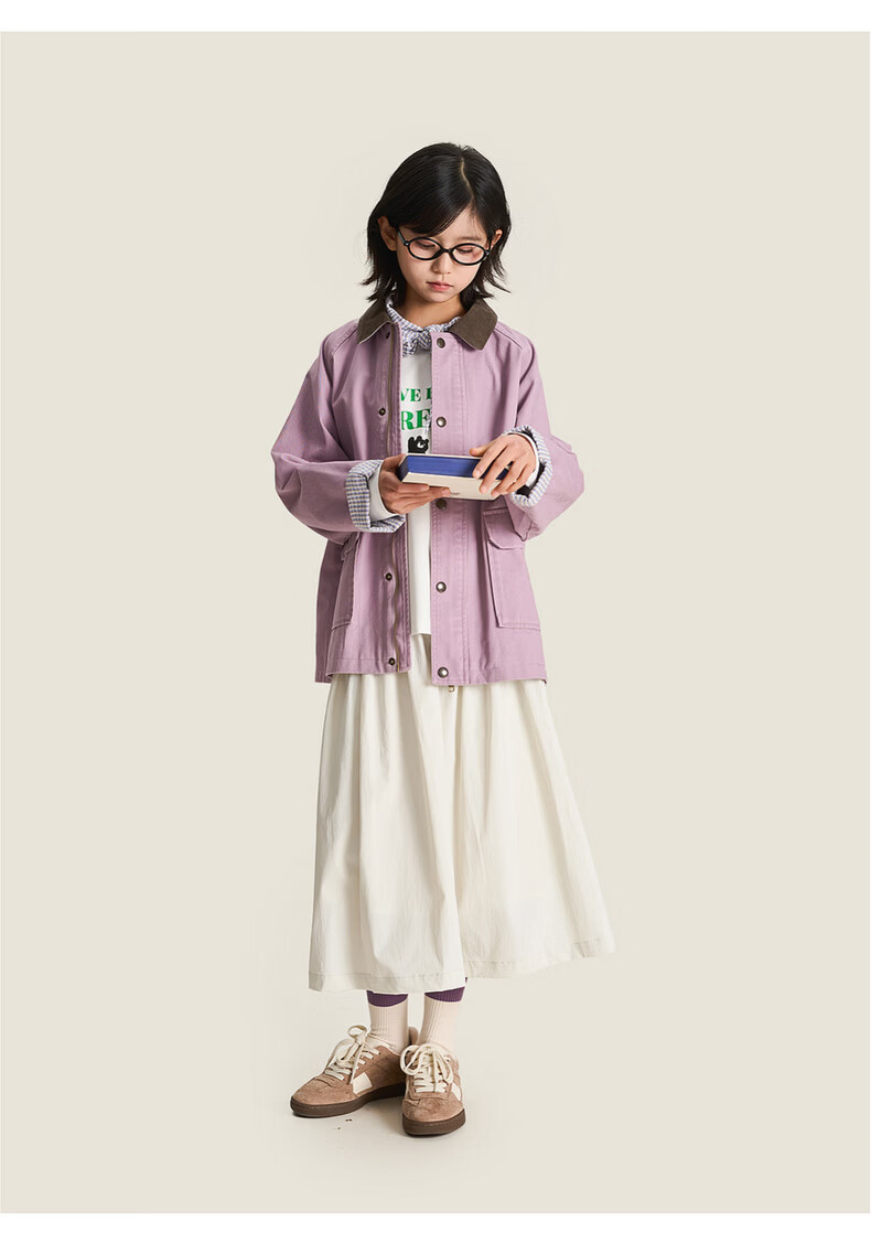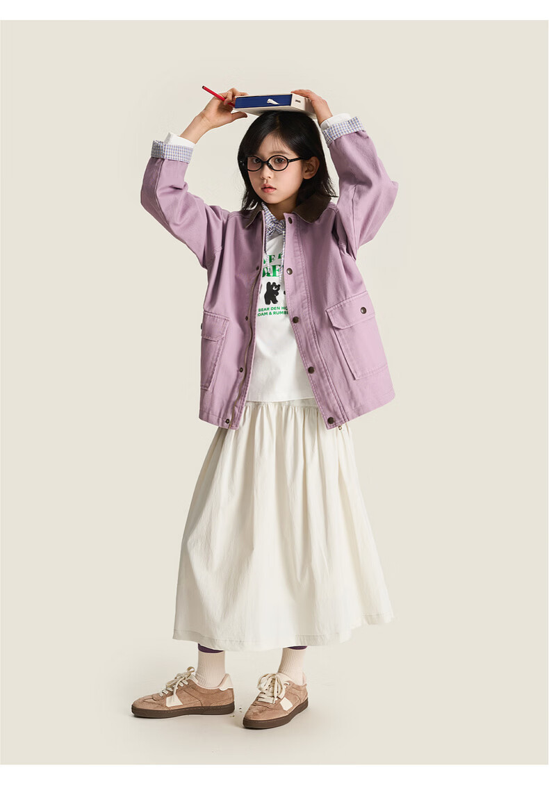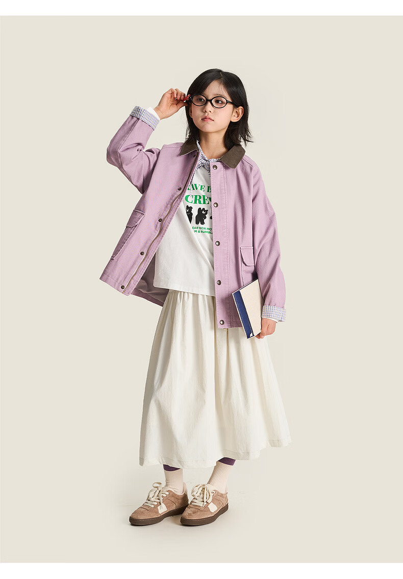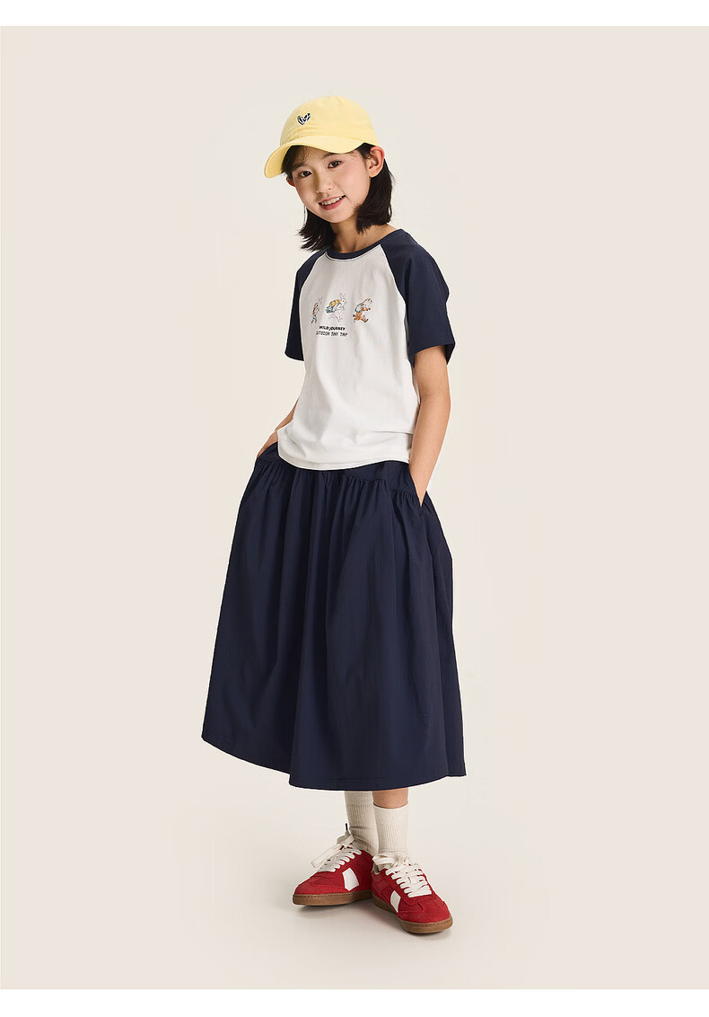 棉叔叔【2.3新品无氟防水伞裙】女童春季弧形结构款气质半身长伞裙2026 贝壳白 150 150