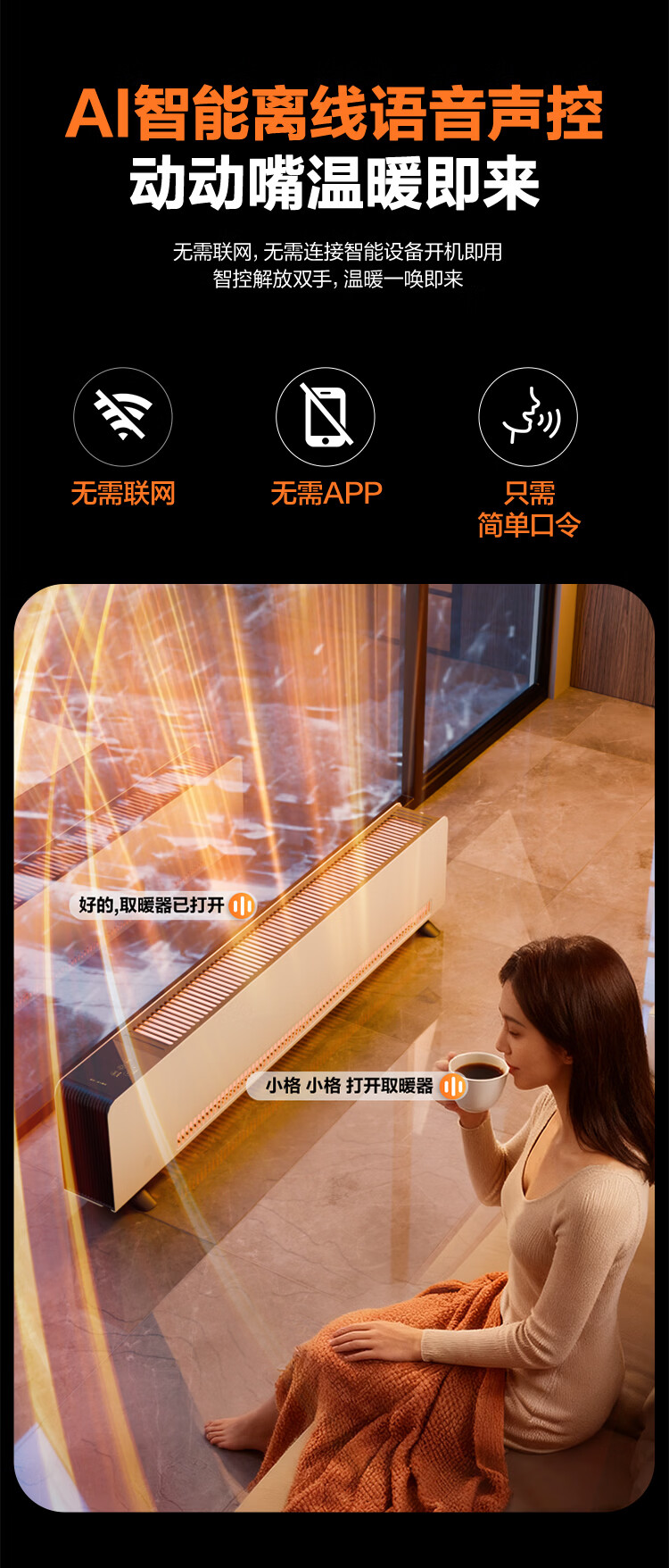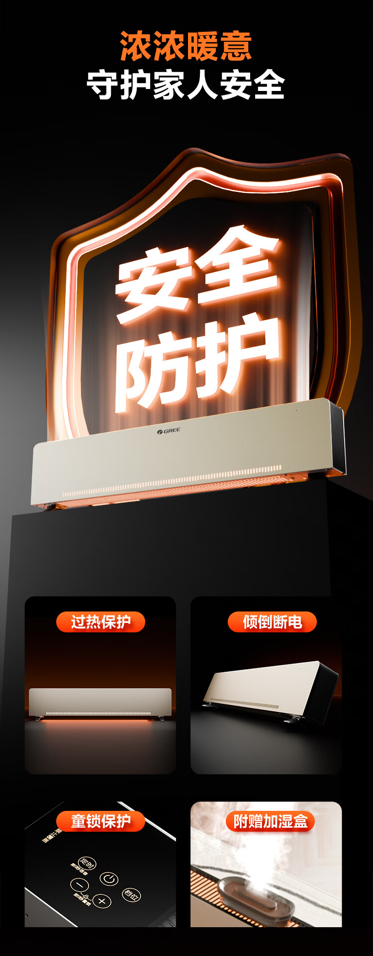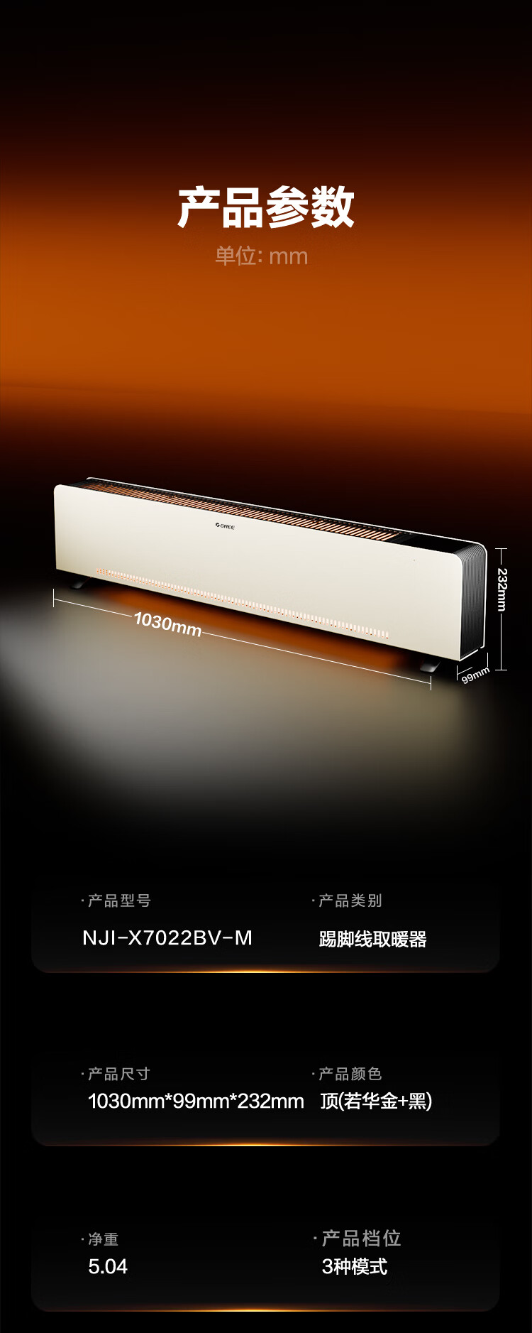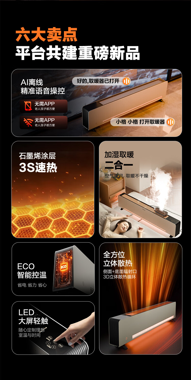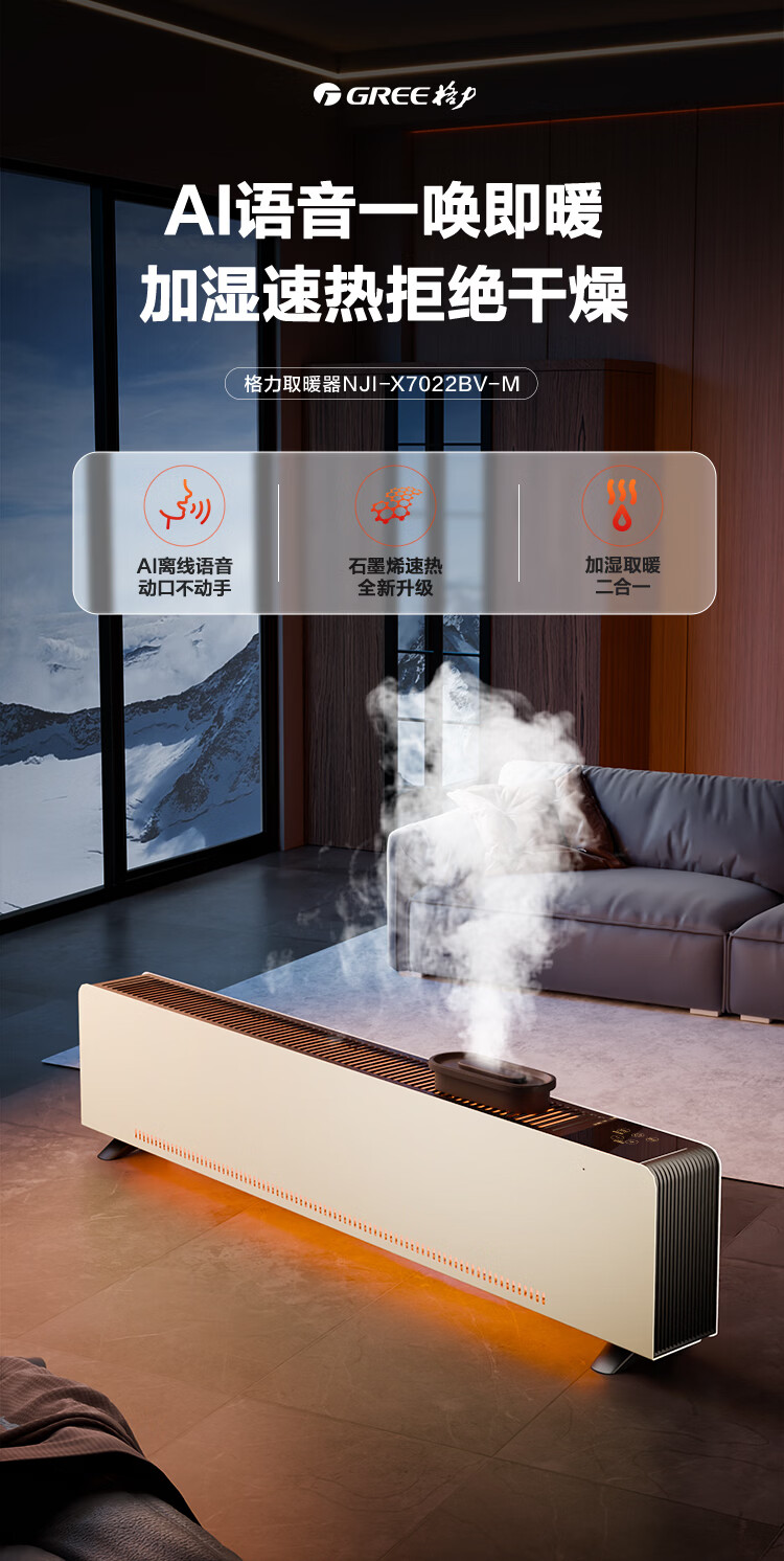 格力暖岁踢脚线取暖器央视展示石墨烯加湿家用电暖器浴室速热电暖气节能取暖器全屋升温 NJI-X7022BV-M
