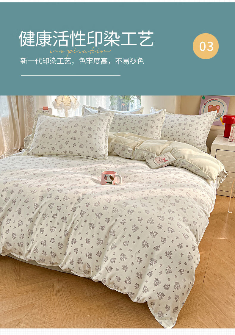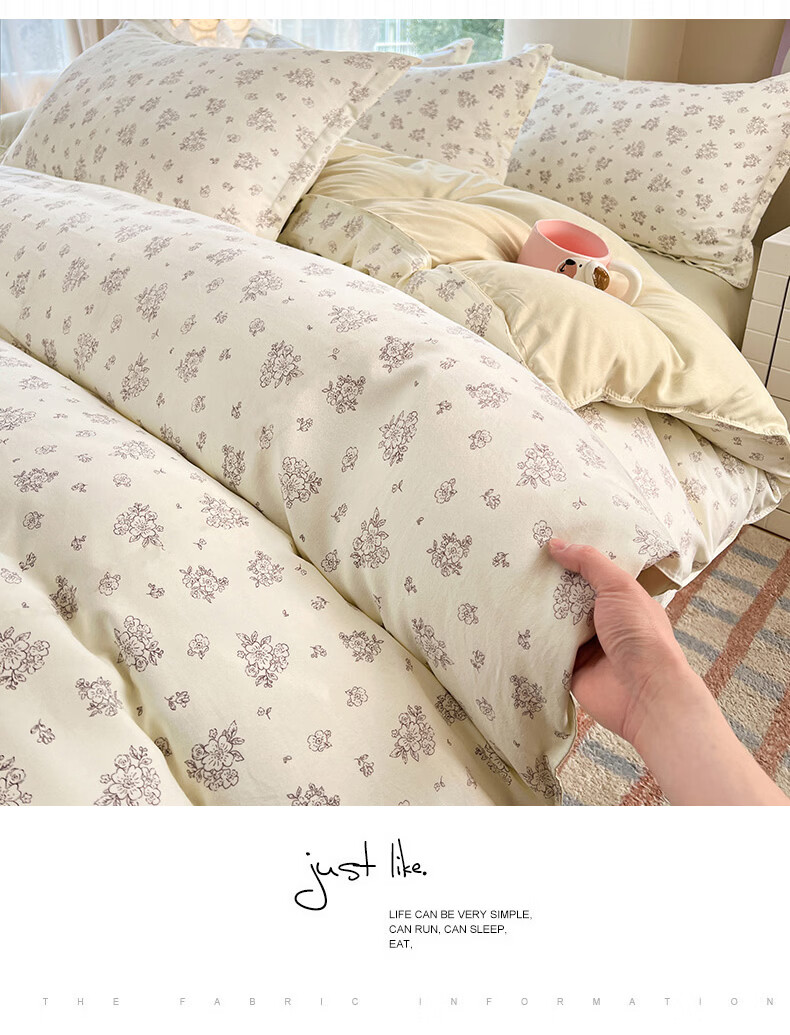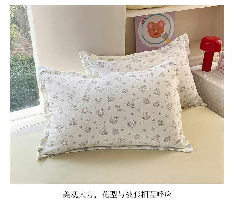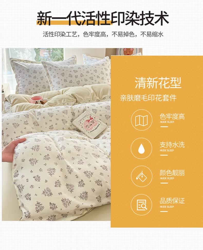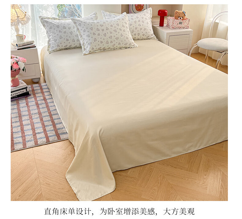 雅鹿春秋床上四件套新款床单被套被罩床品学生宿舍家用四件套 素卉 米黄 【清爽透气水洗棉】 1.8m床 床单款 (被套200*230cm)四件套