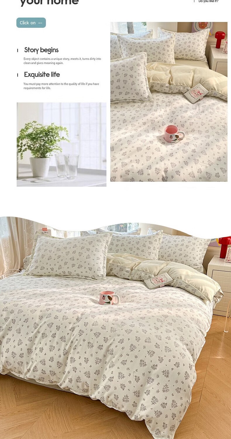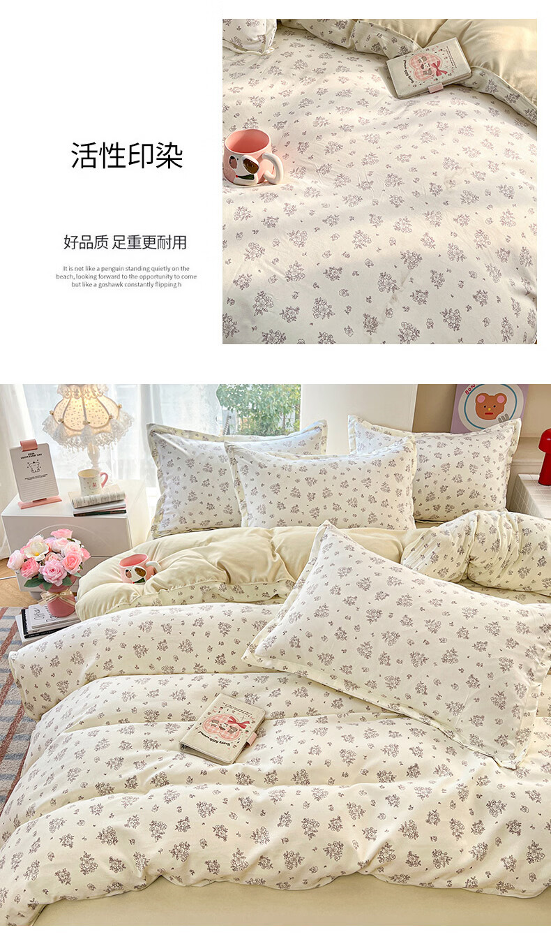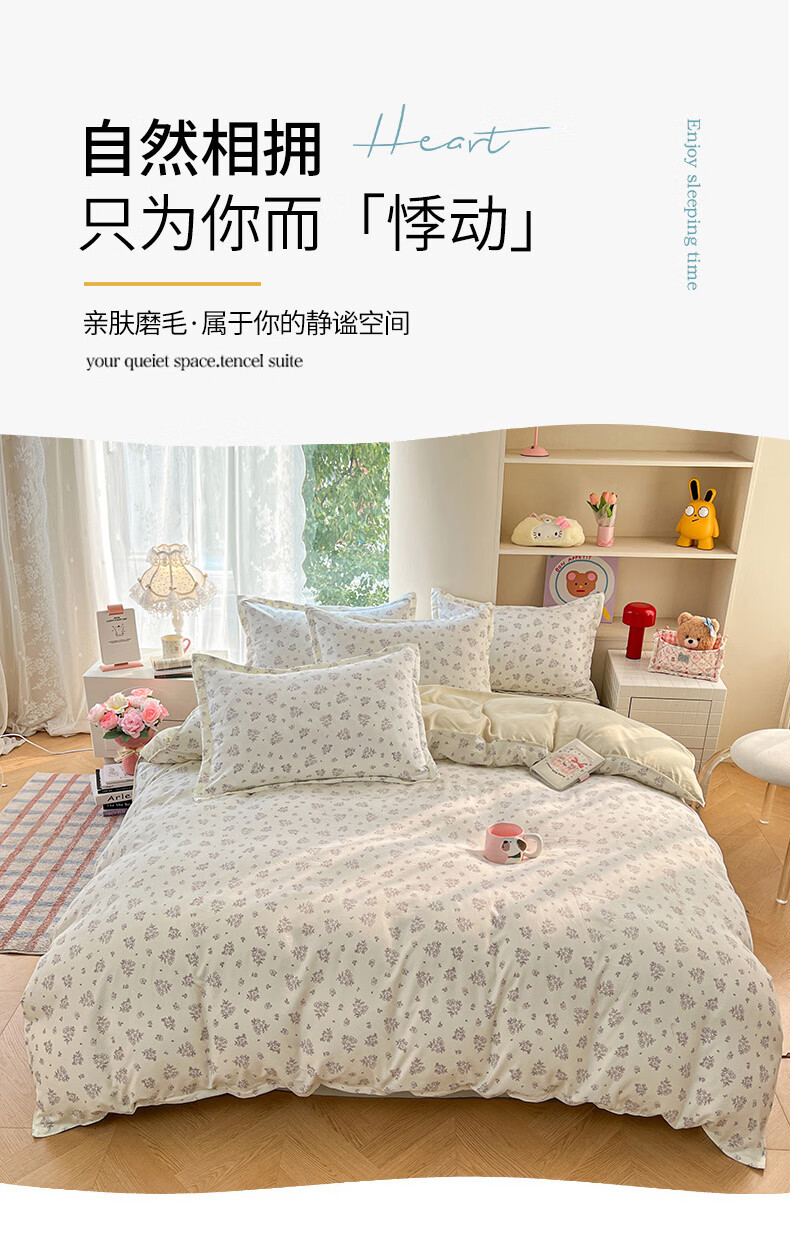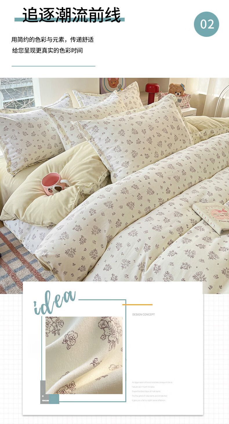 雅鹿春秋床上四件套新款床单被套被罩床品学生宿舍家用四件套 素卉 米黄 【清爽透气水洗棉】 1.8m床 床单款 (被套200*230cm)四件套