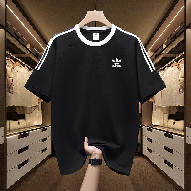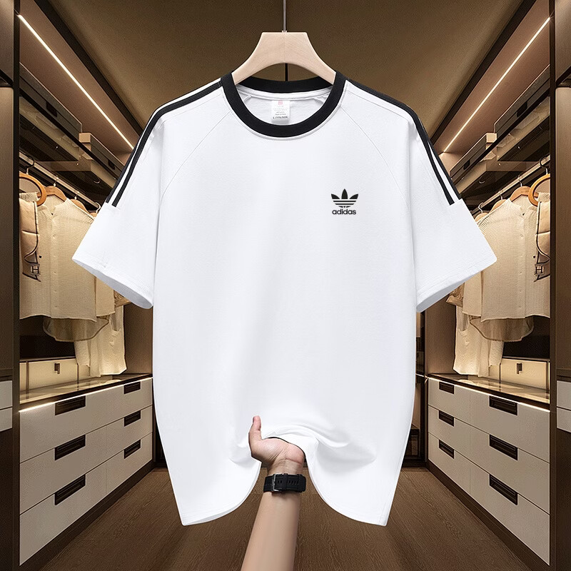 Y-3阿迪三叶草美式纯棉三条杠落肩短袖情侣款男女T恤休闲运动百搭潮 白色【小标】 M 建议体重100~120斤