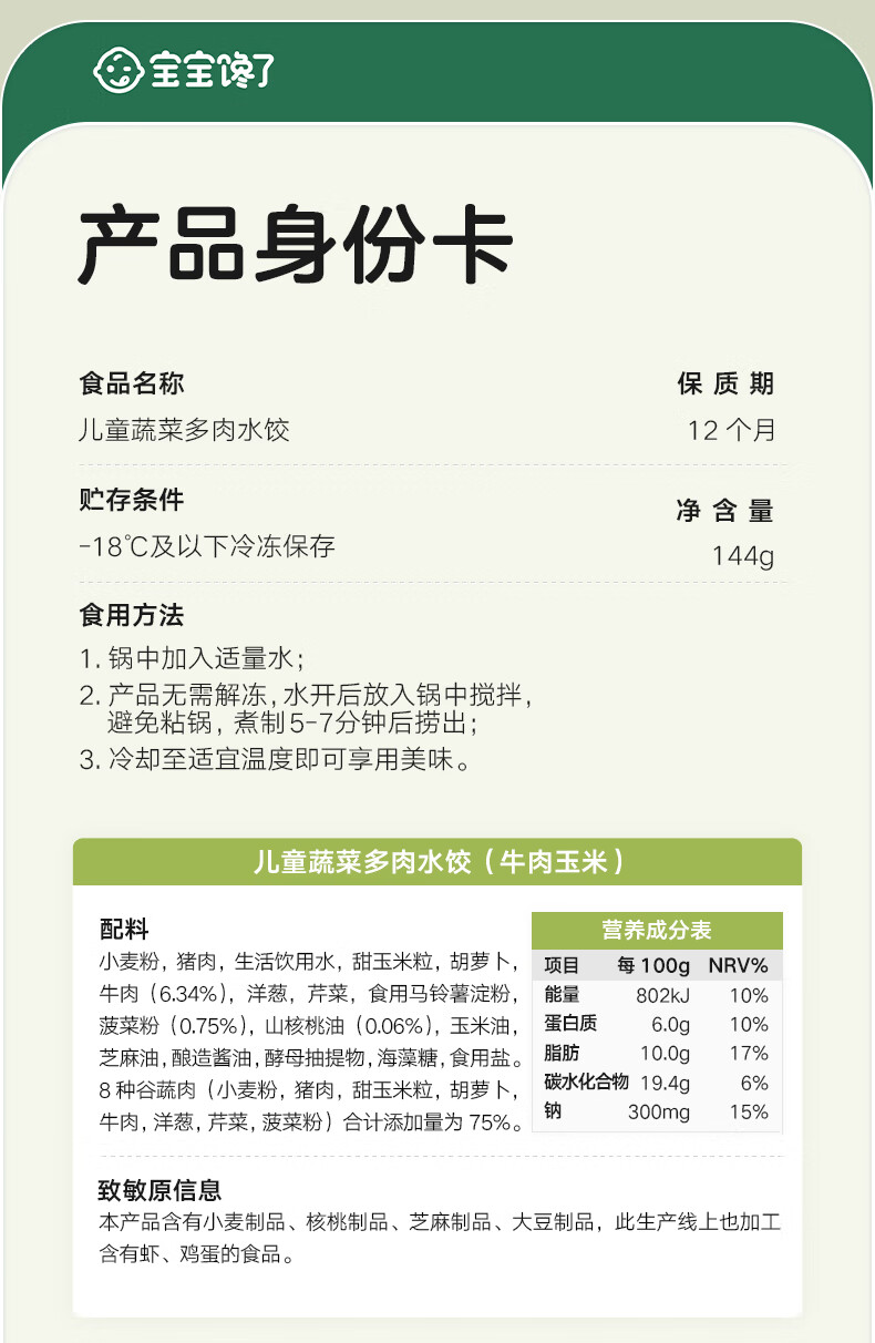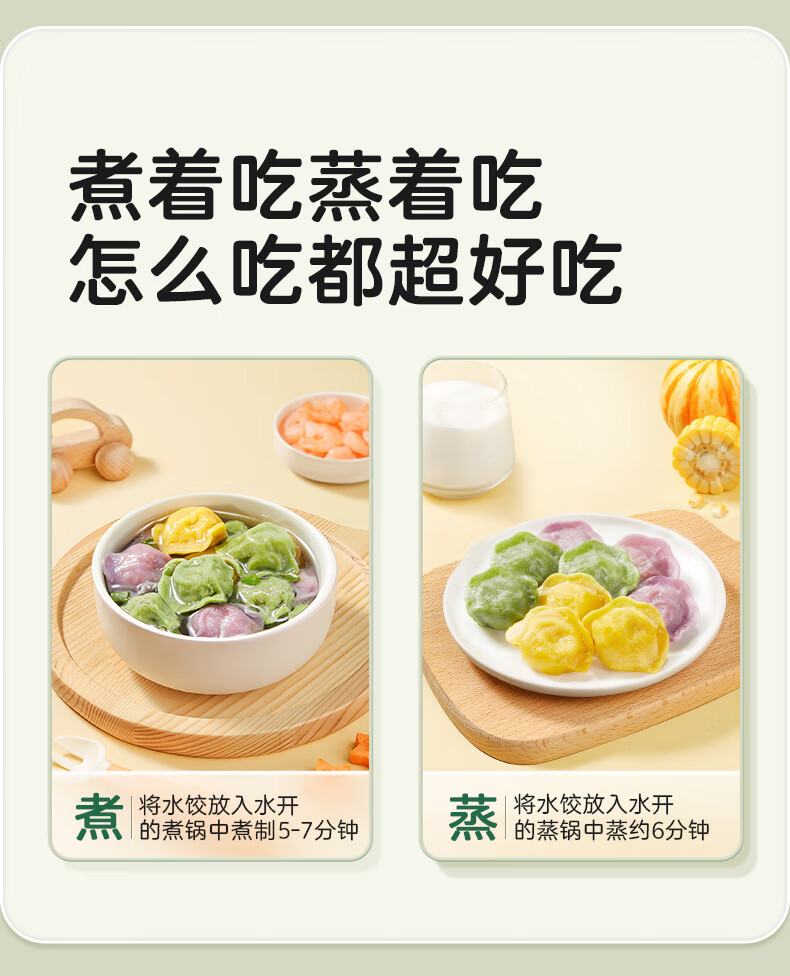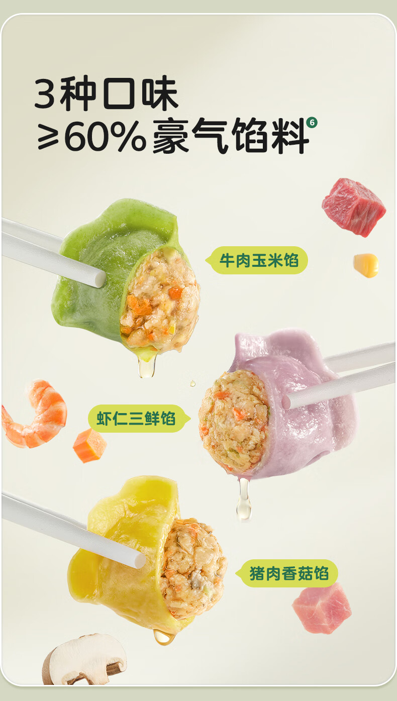 宝宝馋了儿童水饺蔬菜多肉营养辅食儿童早餐饺子半成品享婴儿宝宝辅食食谱 【店长主推】儿童水饺(口味各一)144g*3袋(54只)