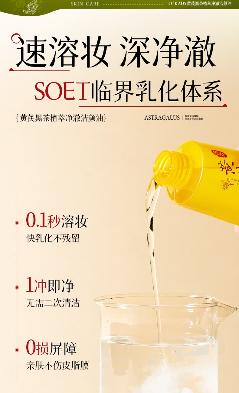欧佩O'KADY黄芪黑茶卸妆油养护三合一深层清洁细致毛孔眼唇脸温和易乳化 黄芪黑茶卸妆油 150ml/瓶