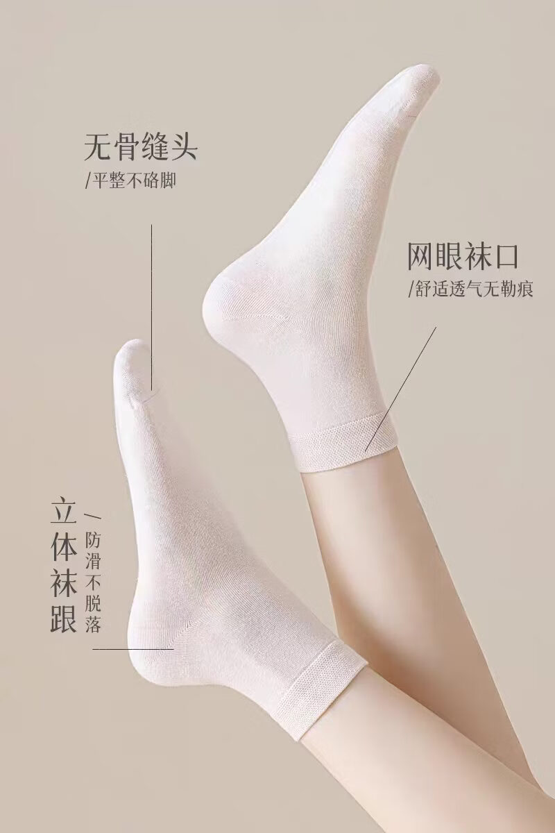 朋意半拖袜子女夏季薄款半掌袜隐形防滑船袜网眼袜半截拖鞋袜前脚掌袜 防滑半掌袜-糯米白-10双 均码