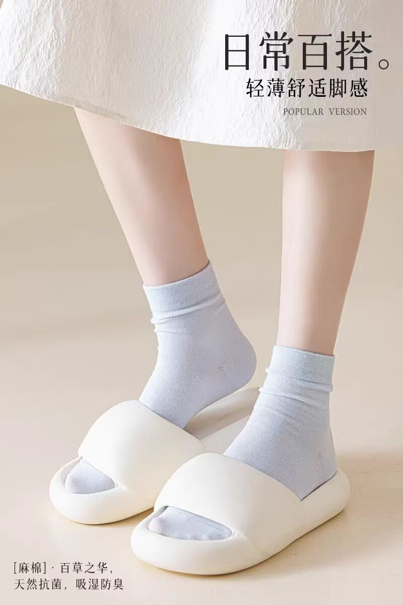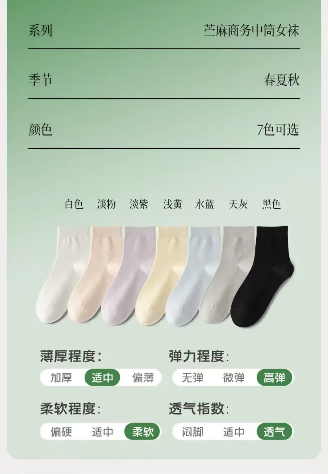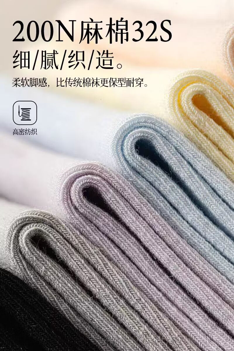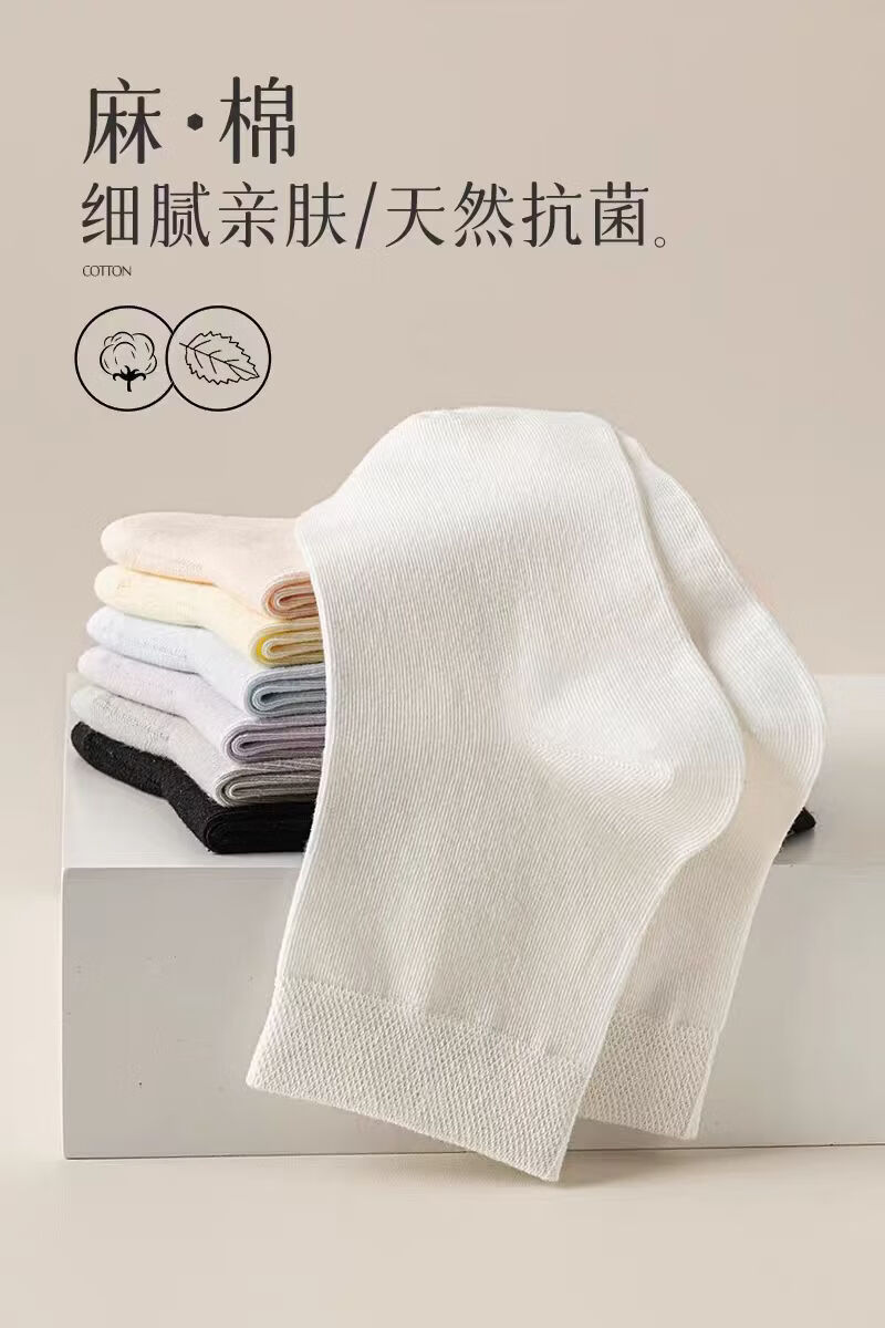 丞贵袜子女中筒无骨袜吸汗苎麻袜夏季纯色棉麻百搭中筒袜运动男透气袜 5双盒装混色棉麻男袜 均码