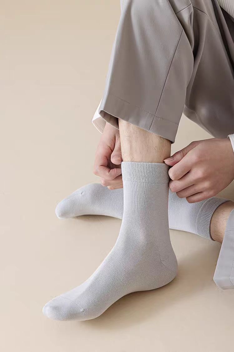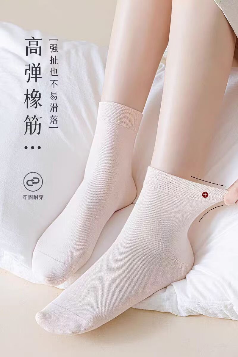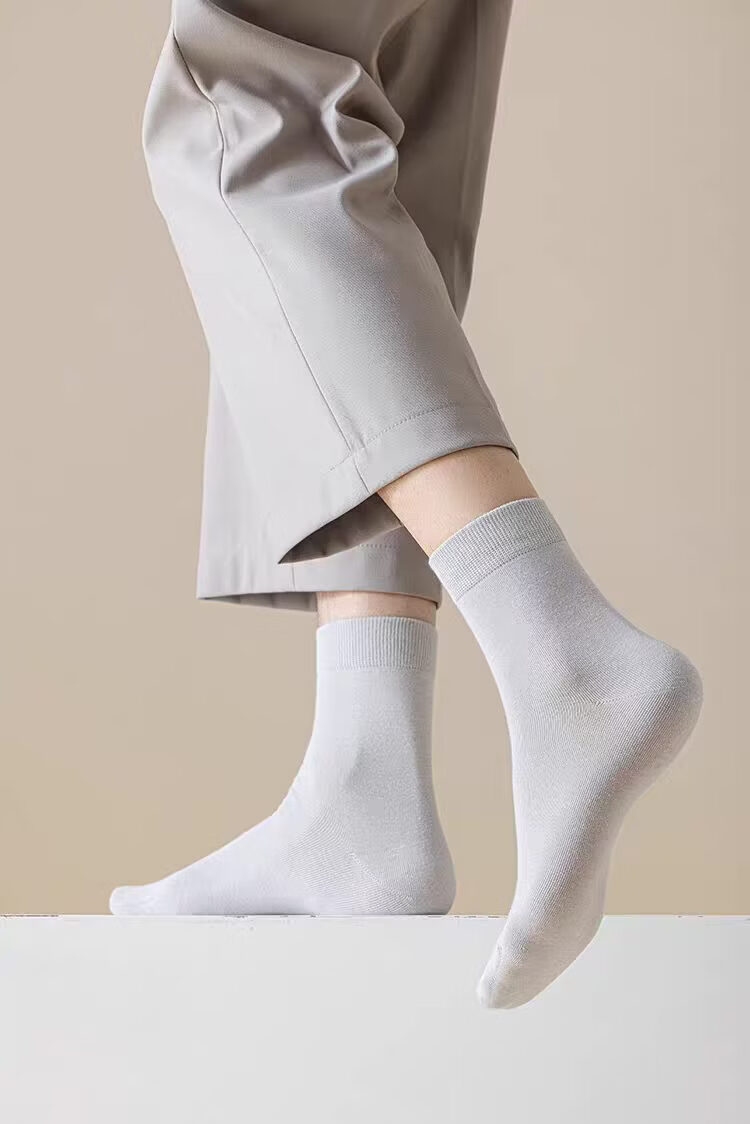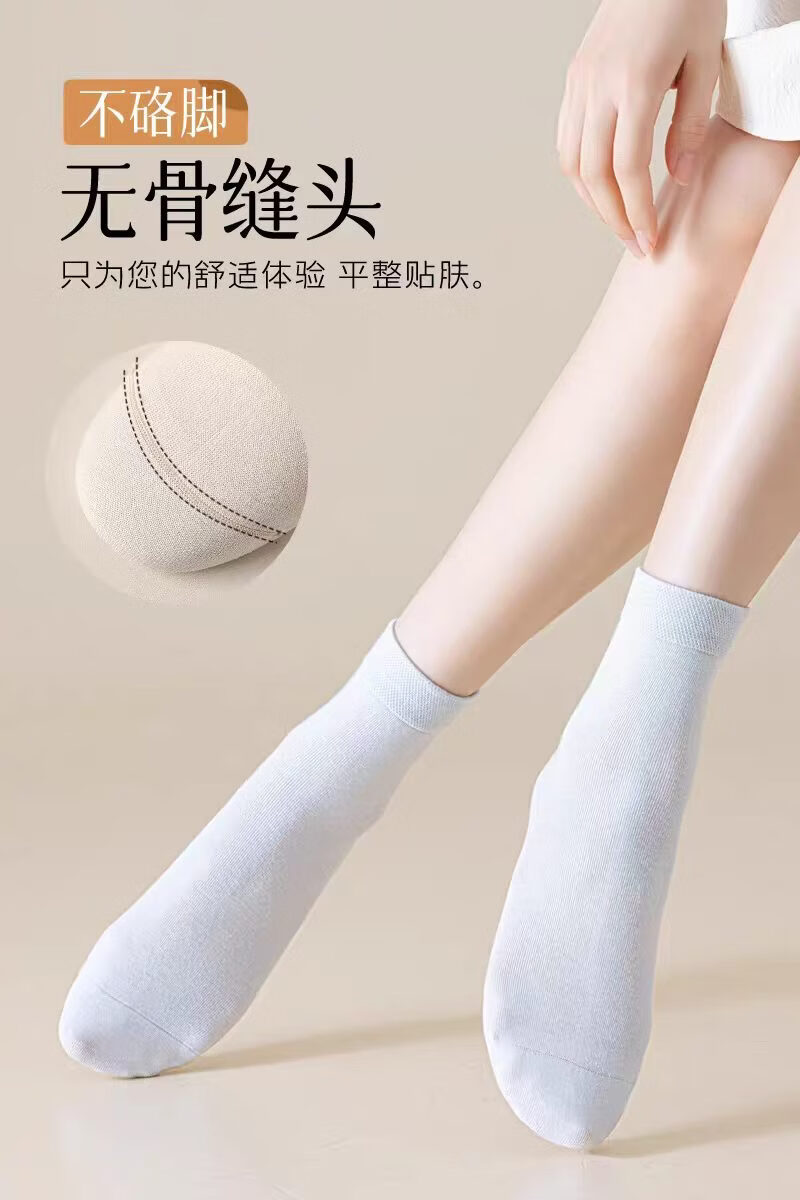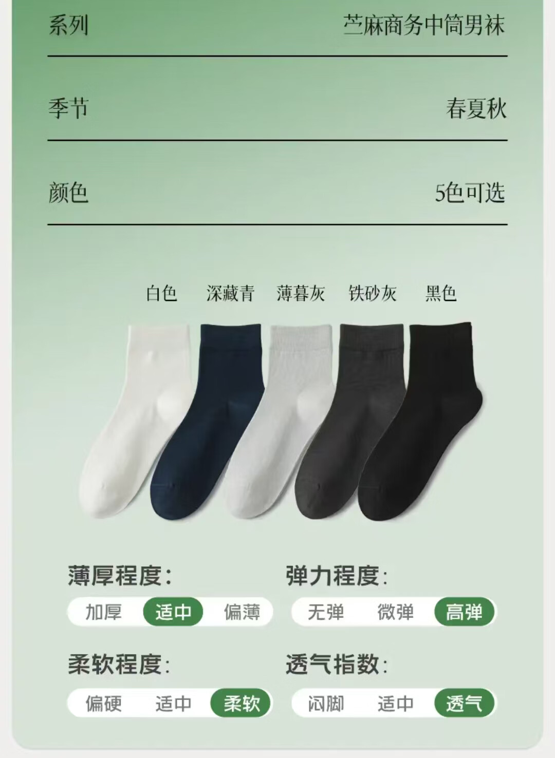 丞贵袜子女中筒无骨袜吸汗苎麻袜夏季纯色棉麻百搭中筒袜运动男透气袜 5双盒装混色棉麻男袜 均码