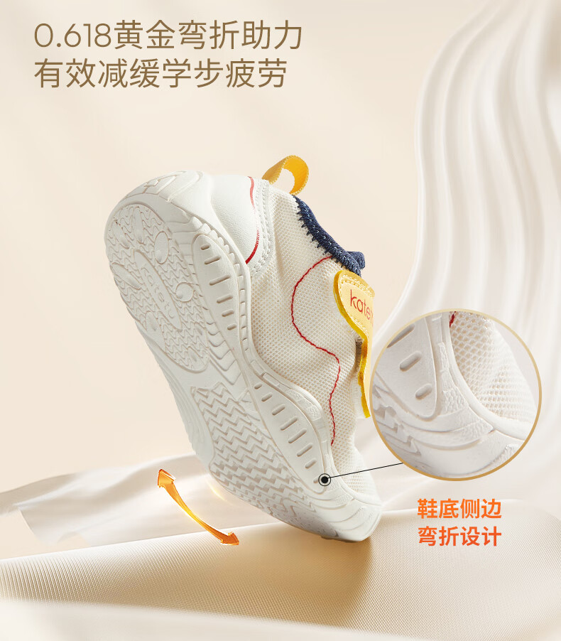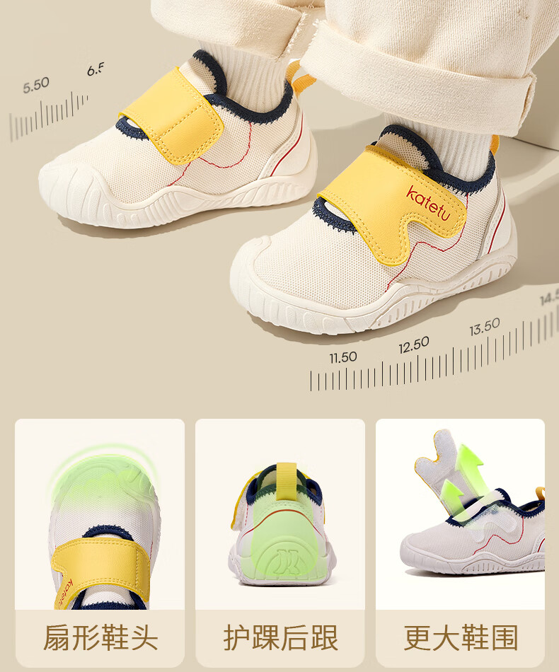 卡特兔学步鞋软底机能鞋秋季网面童鞋女宝宝室内鞋男童幼儿园透气入园鞋 白黄-网布 21 内长13.0cm 脚长12.0-12.5