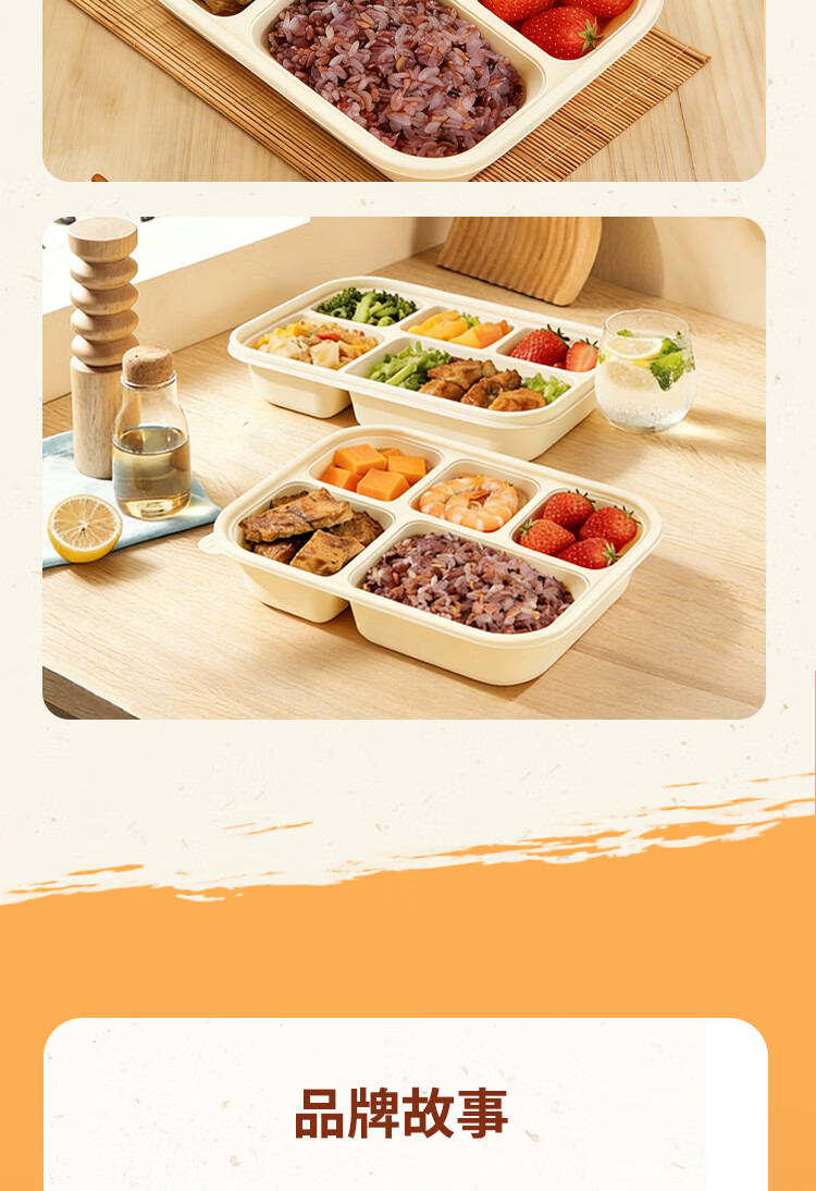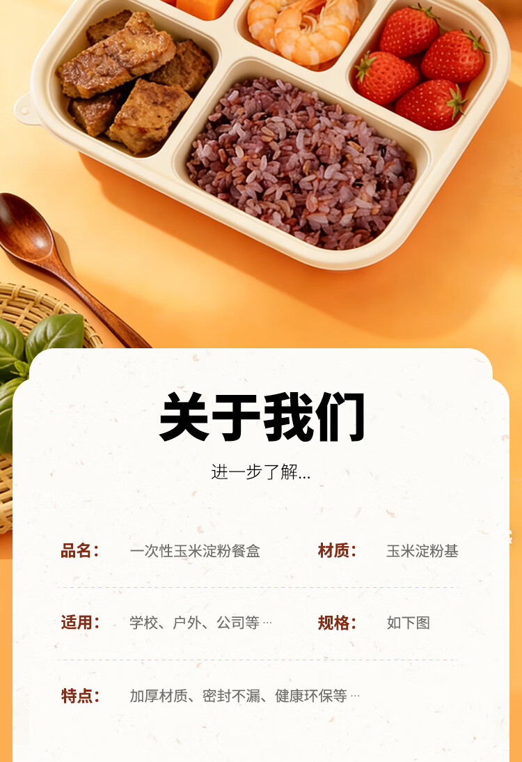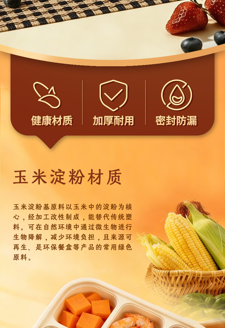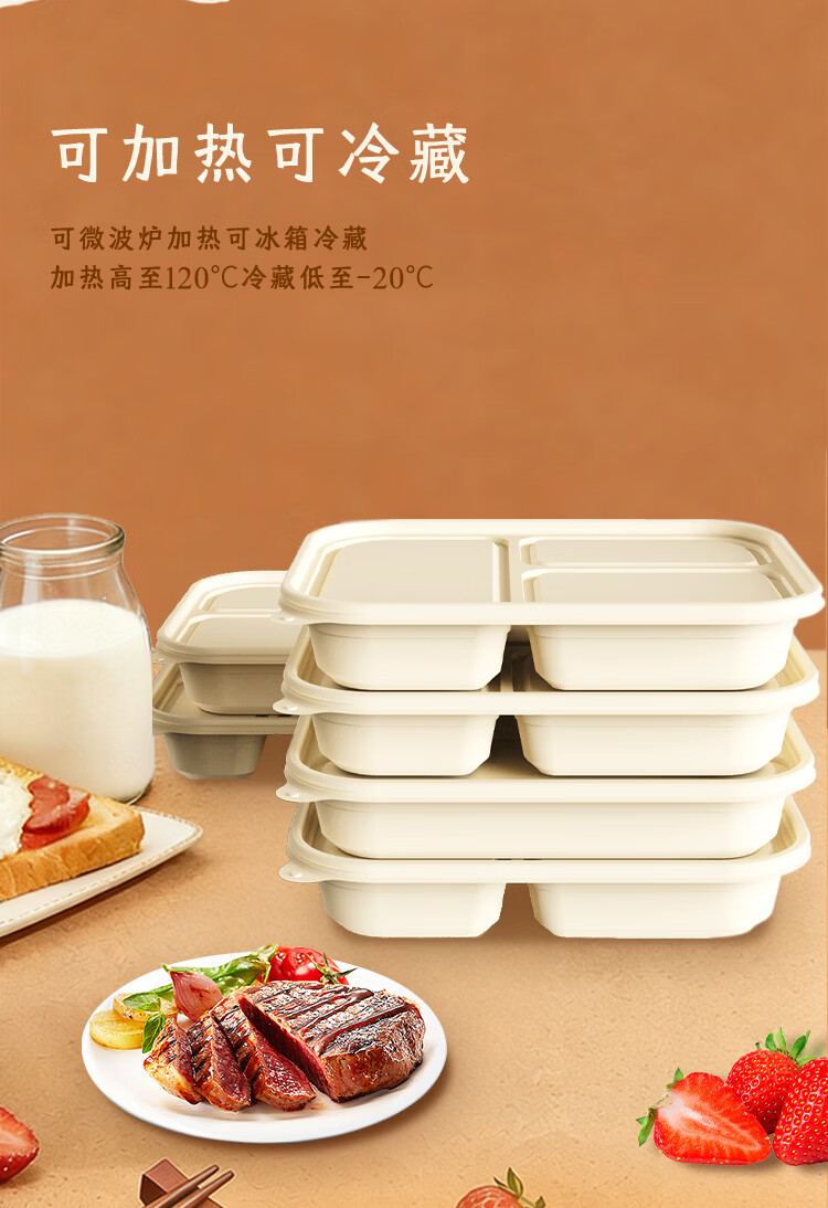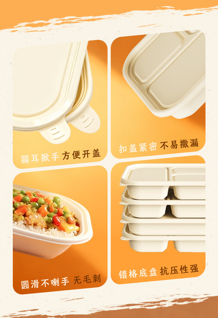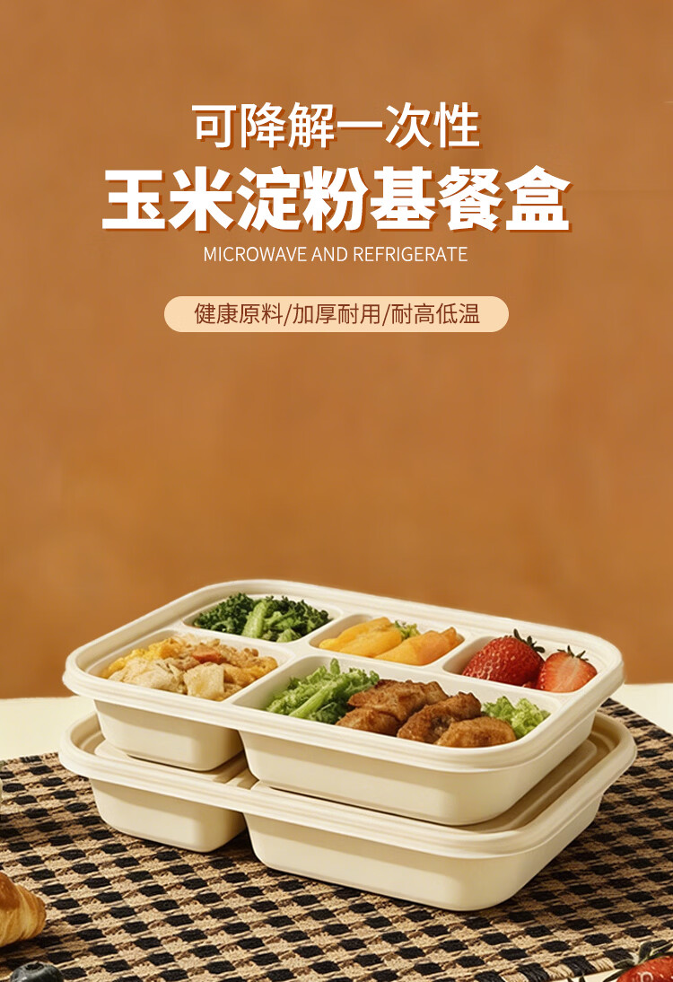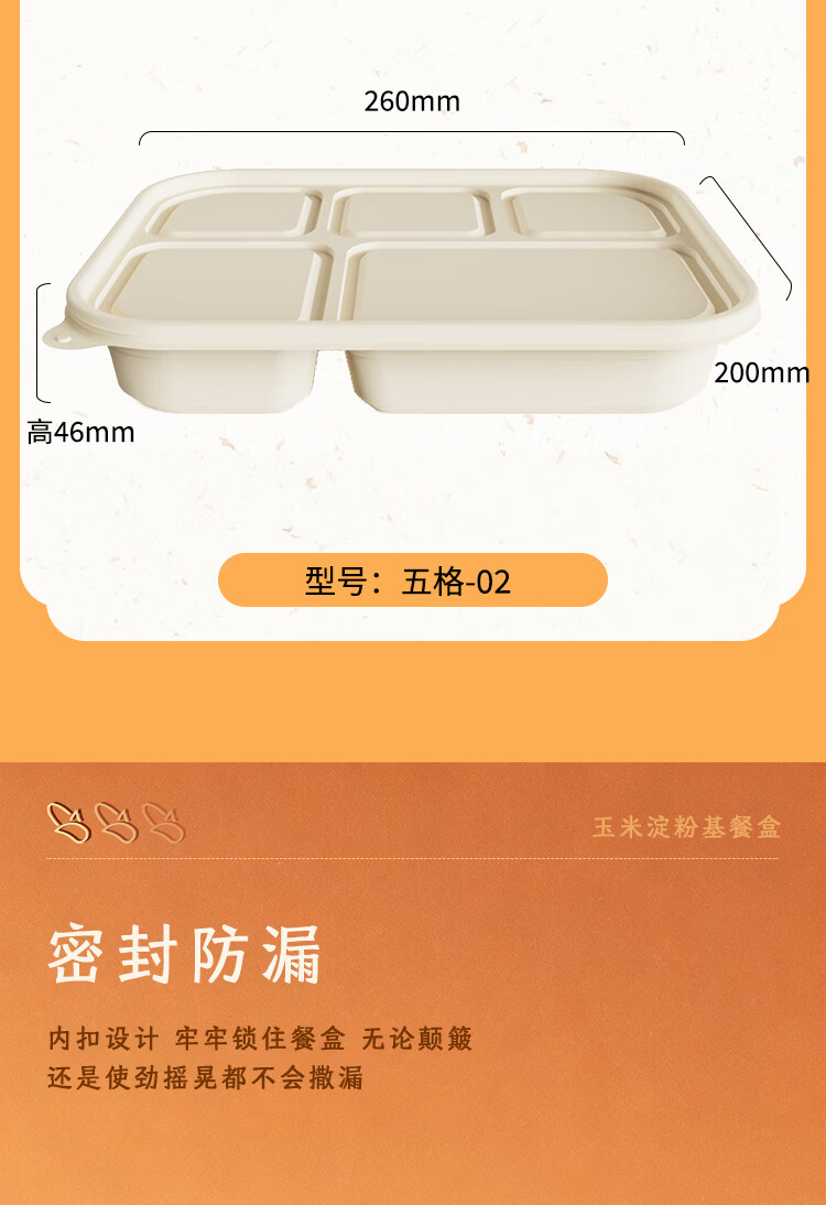 稷王谷一次性饭盒可降解五格02玉米淀粉外卖打包盒餐盒加厚带盖 五格02-50套