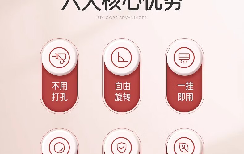 【甄选百货】福字红色喜庆挂钩强力粘胶免打孔粘钩无痕墙壁承重门 【福气满满】福字贴2个装