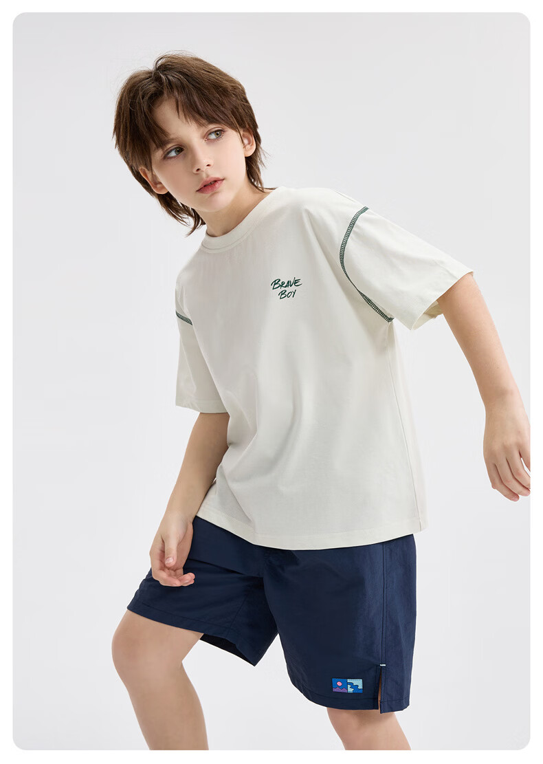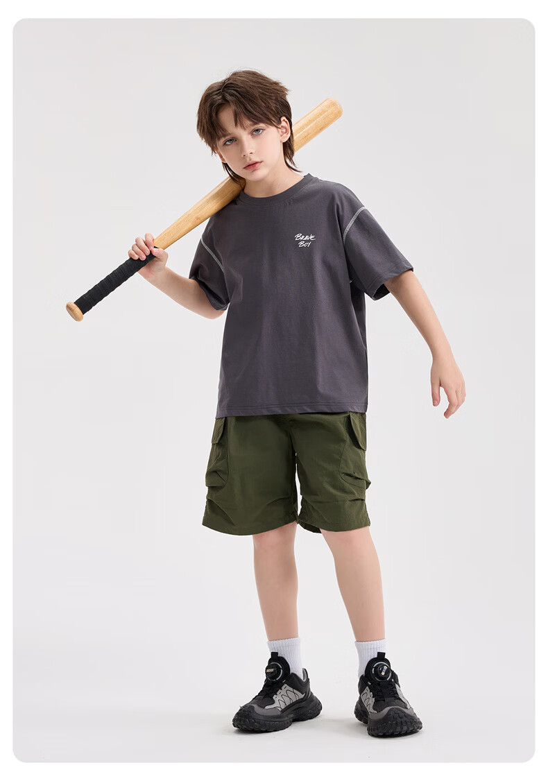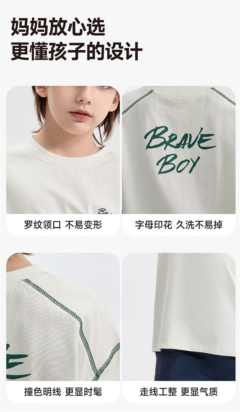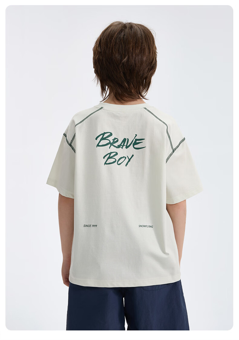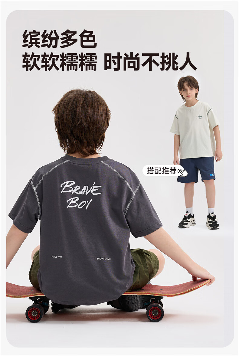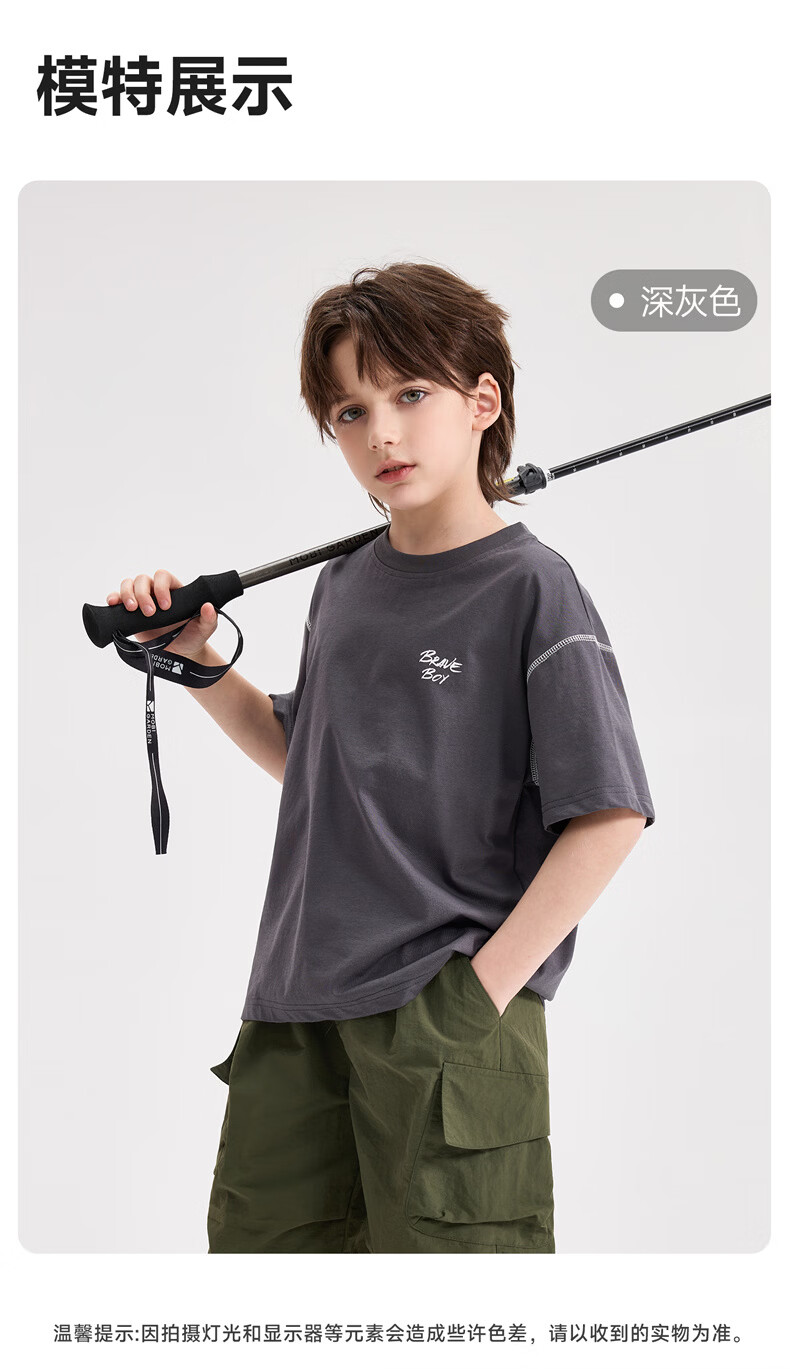 雪中飞童装男童短袖t恤撞色明线印花儿童t恤衫半袖2026新款夏季男孩上衣 深灰色 140