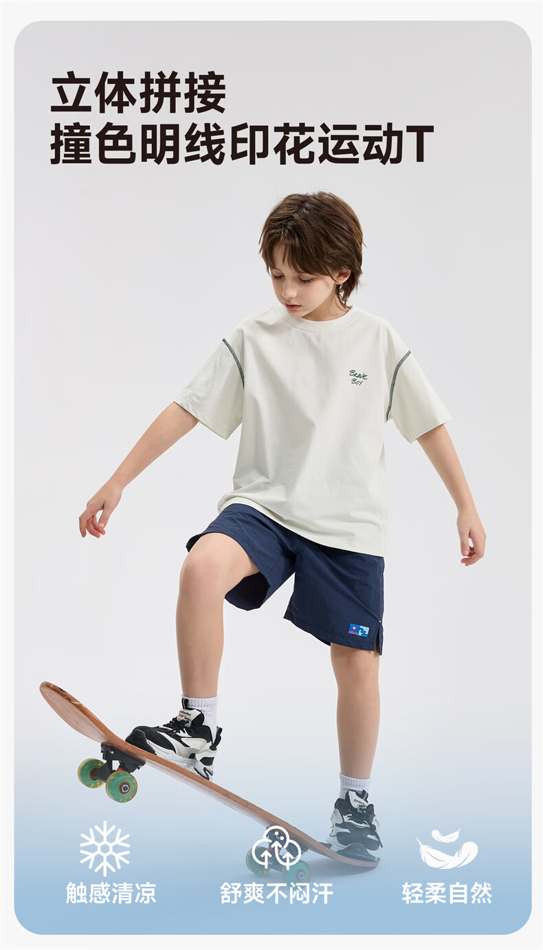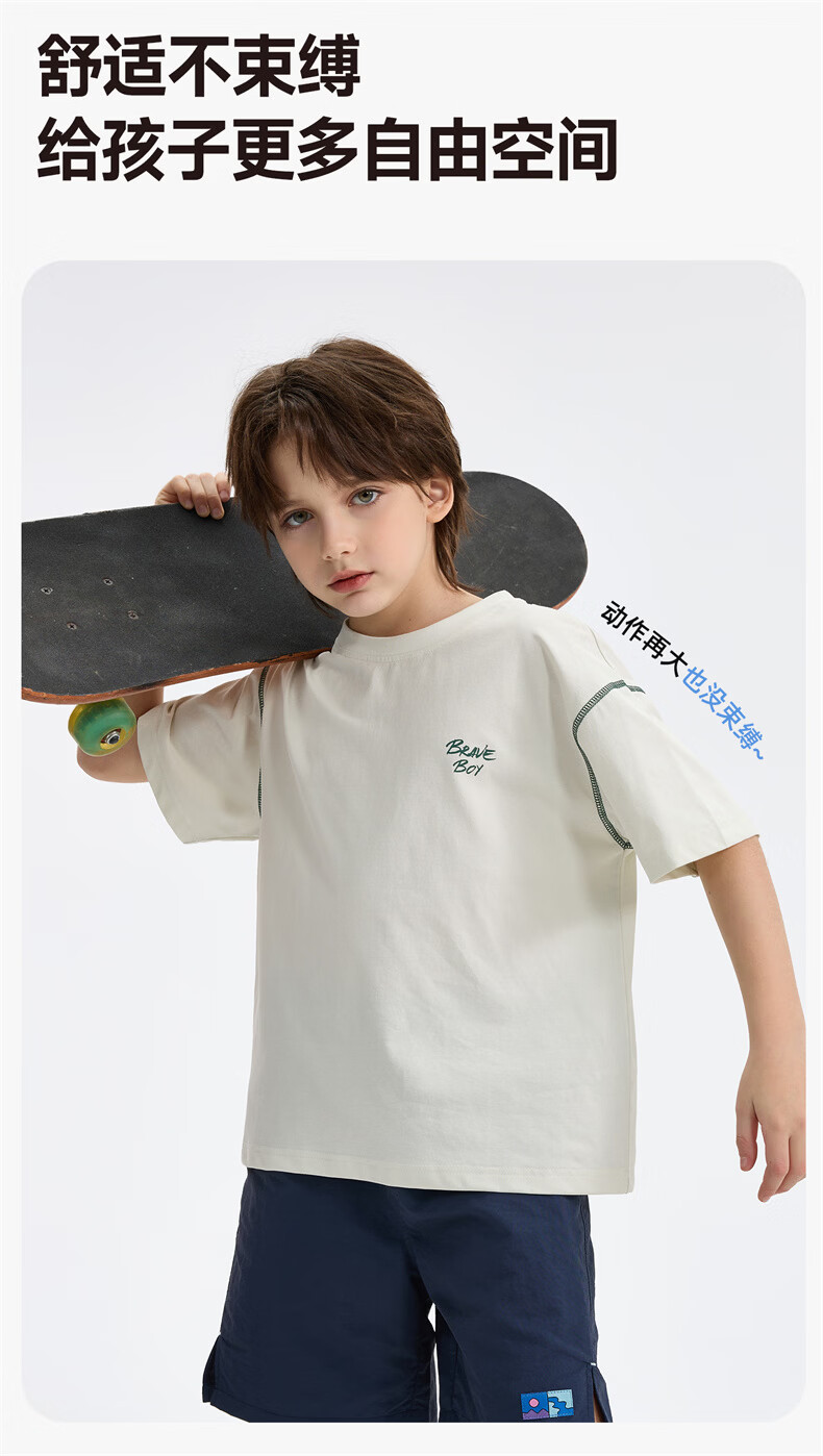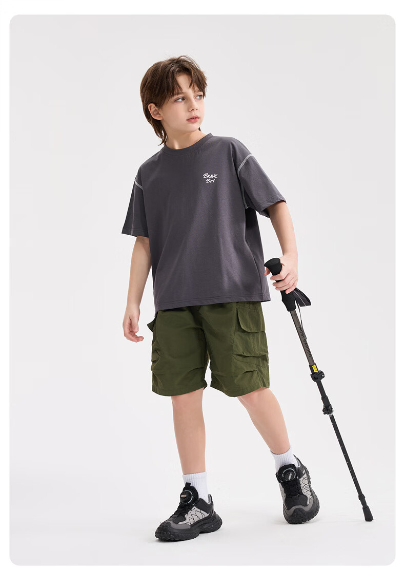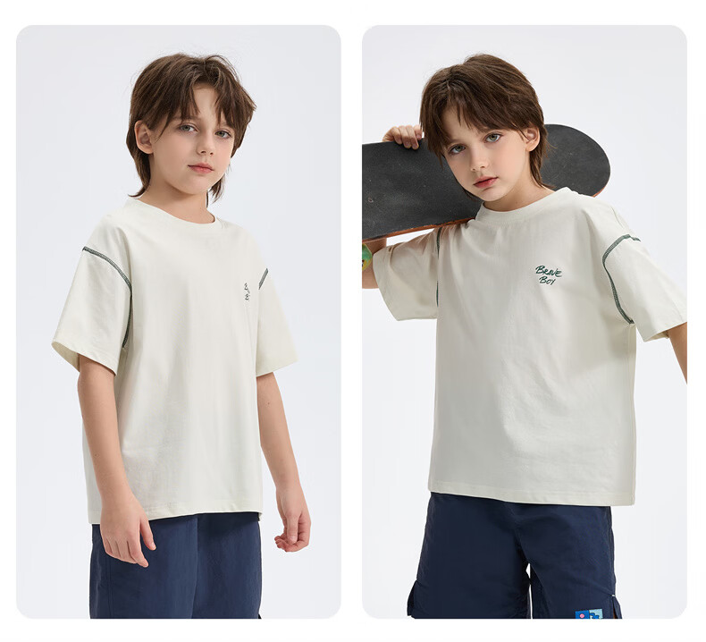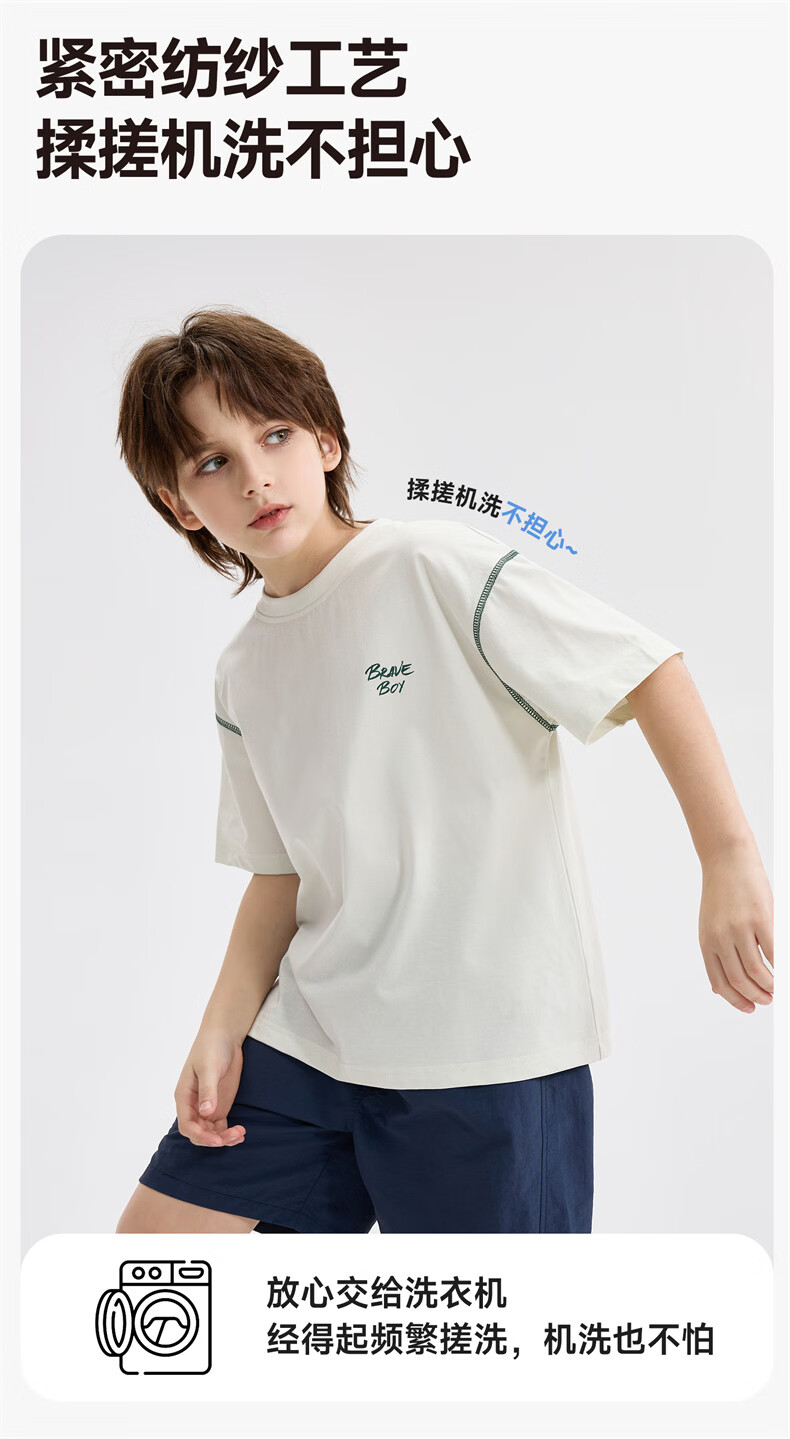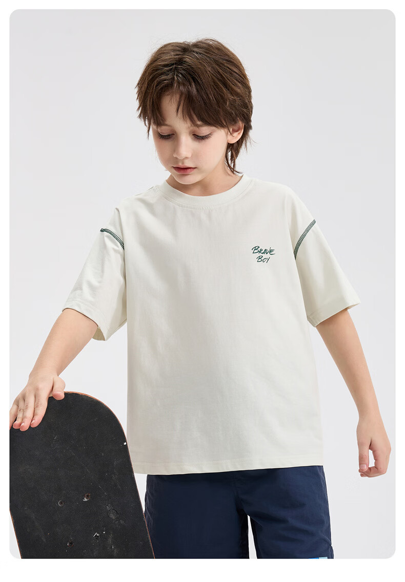 雪中飞童装男童短袖t恤撞色明线印花儿童t恤衫半袖2026新款夏季男孩上衣 深灰色 140