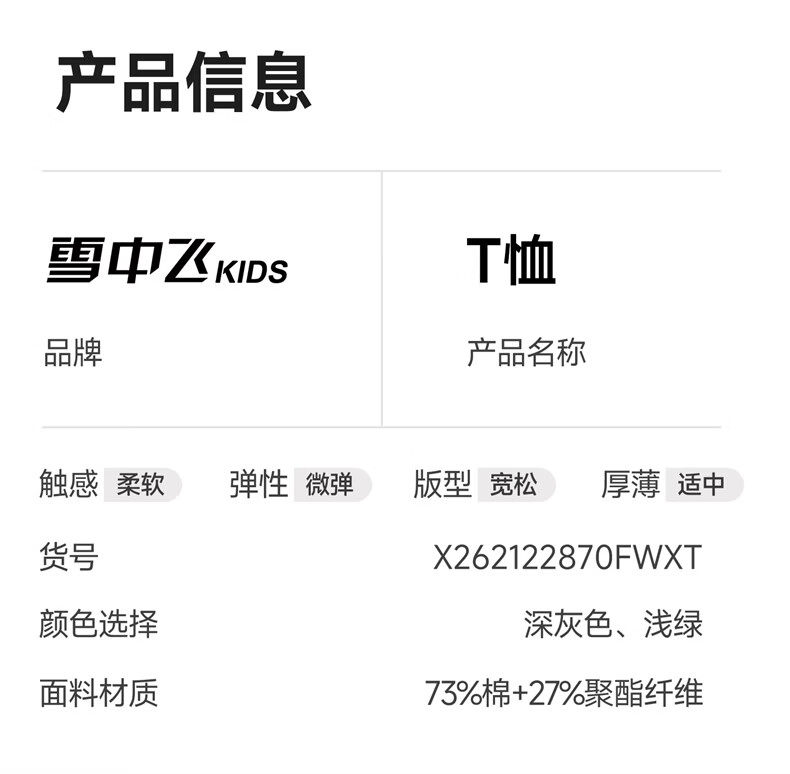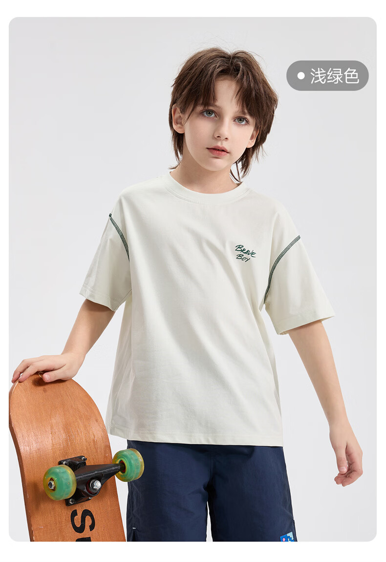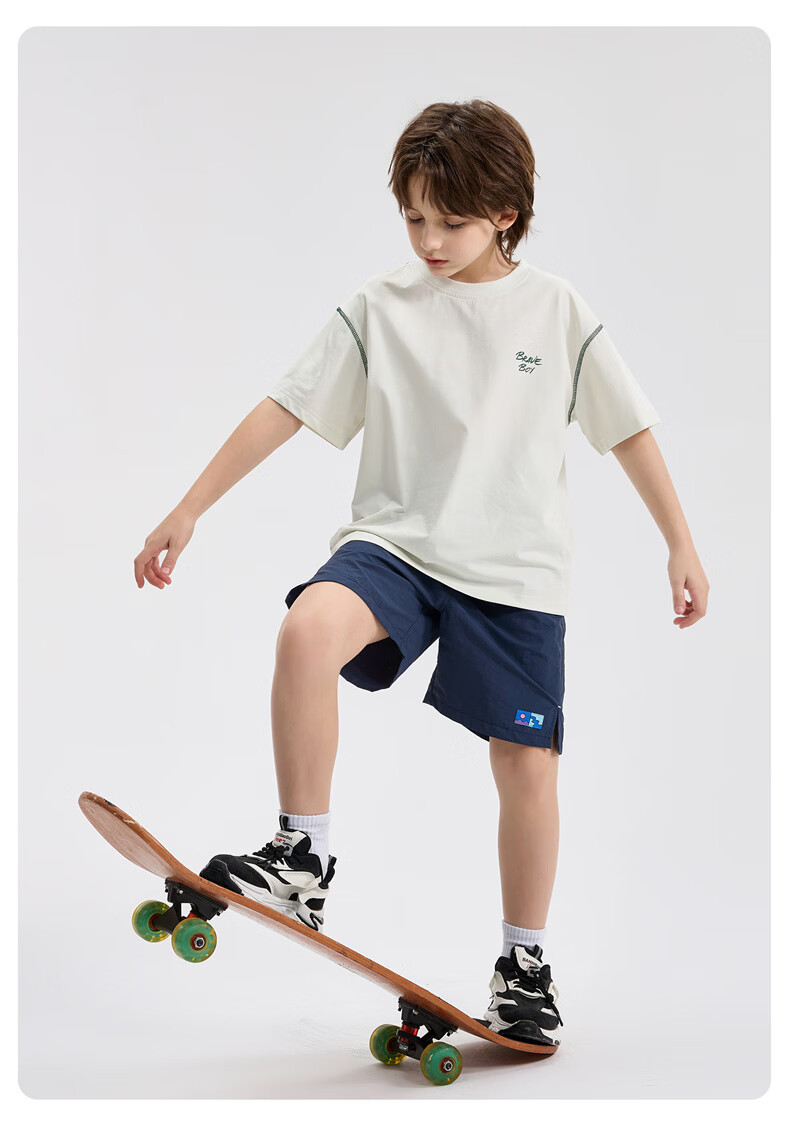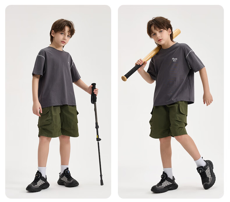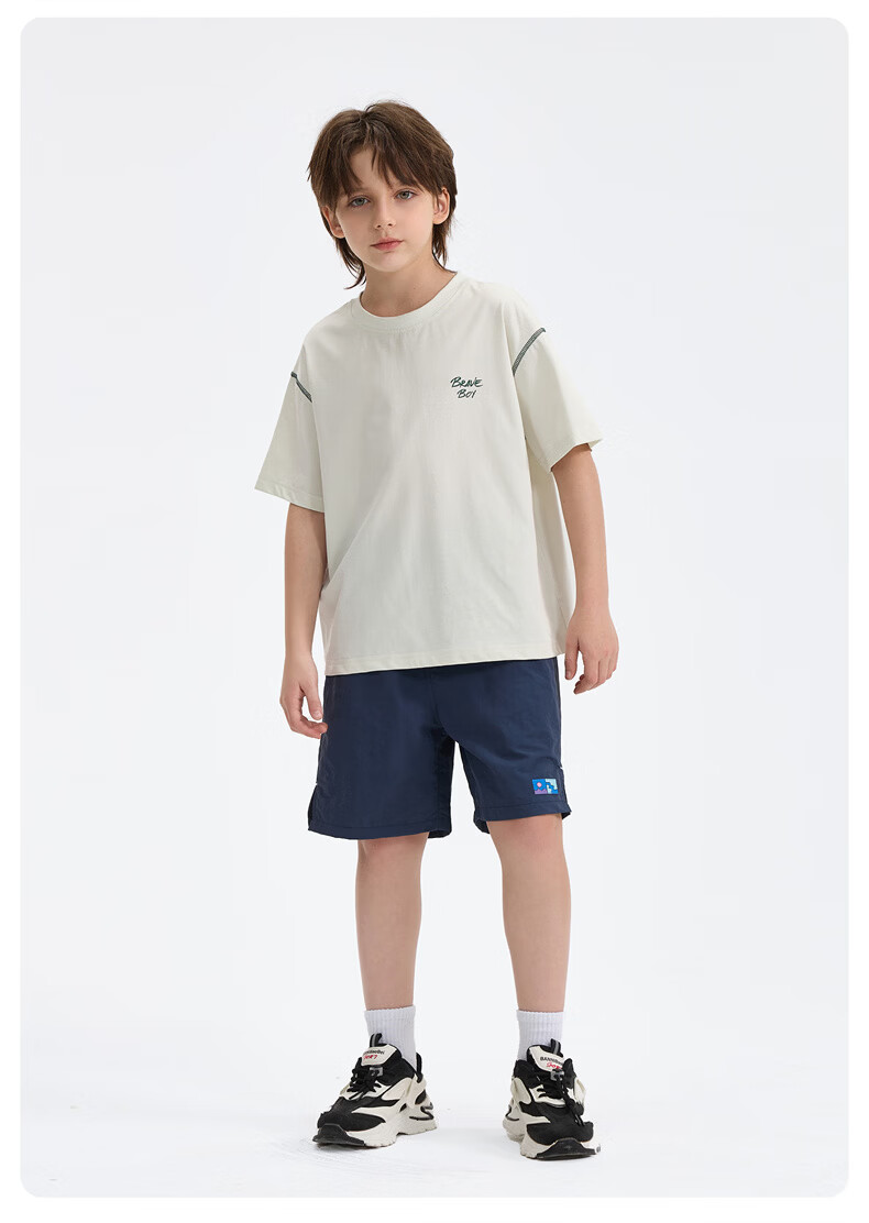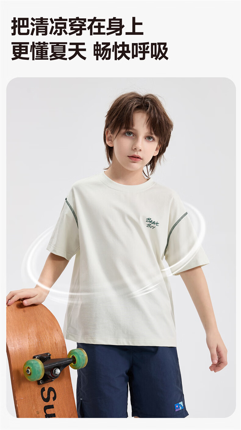 雪中飞童装男童短袖t恤撞色明线印花儿童t恤衫半袖2026新款夏季男孩上衣 深灰色 140