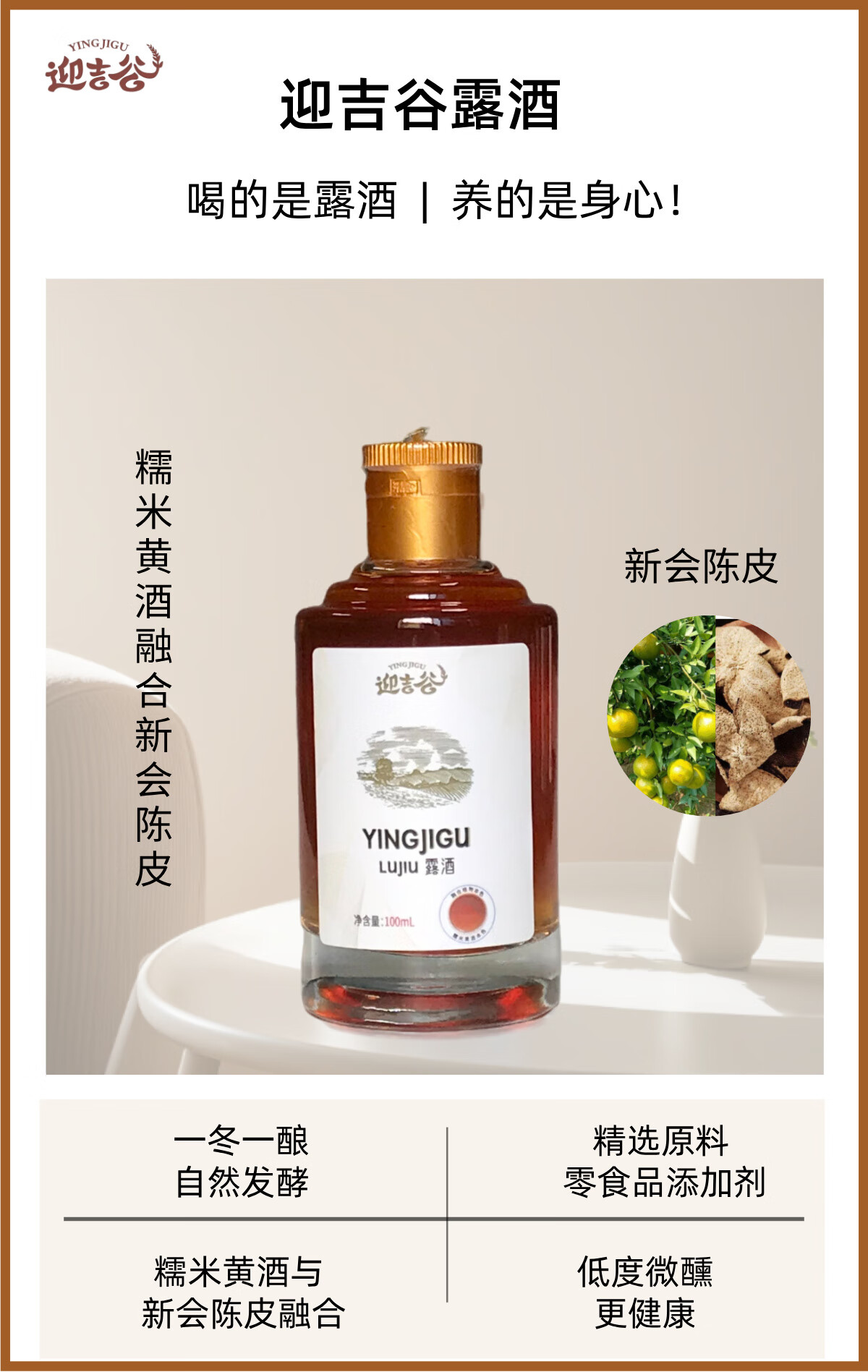 迎吉谷新会陈皮露酒养生酒传统工艺自然发酵无添加微醺小瓶100ml 19度 100mL 1瓶 陈皮露酒