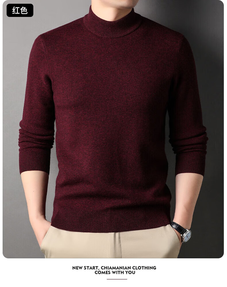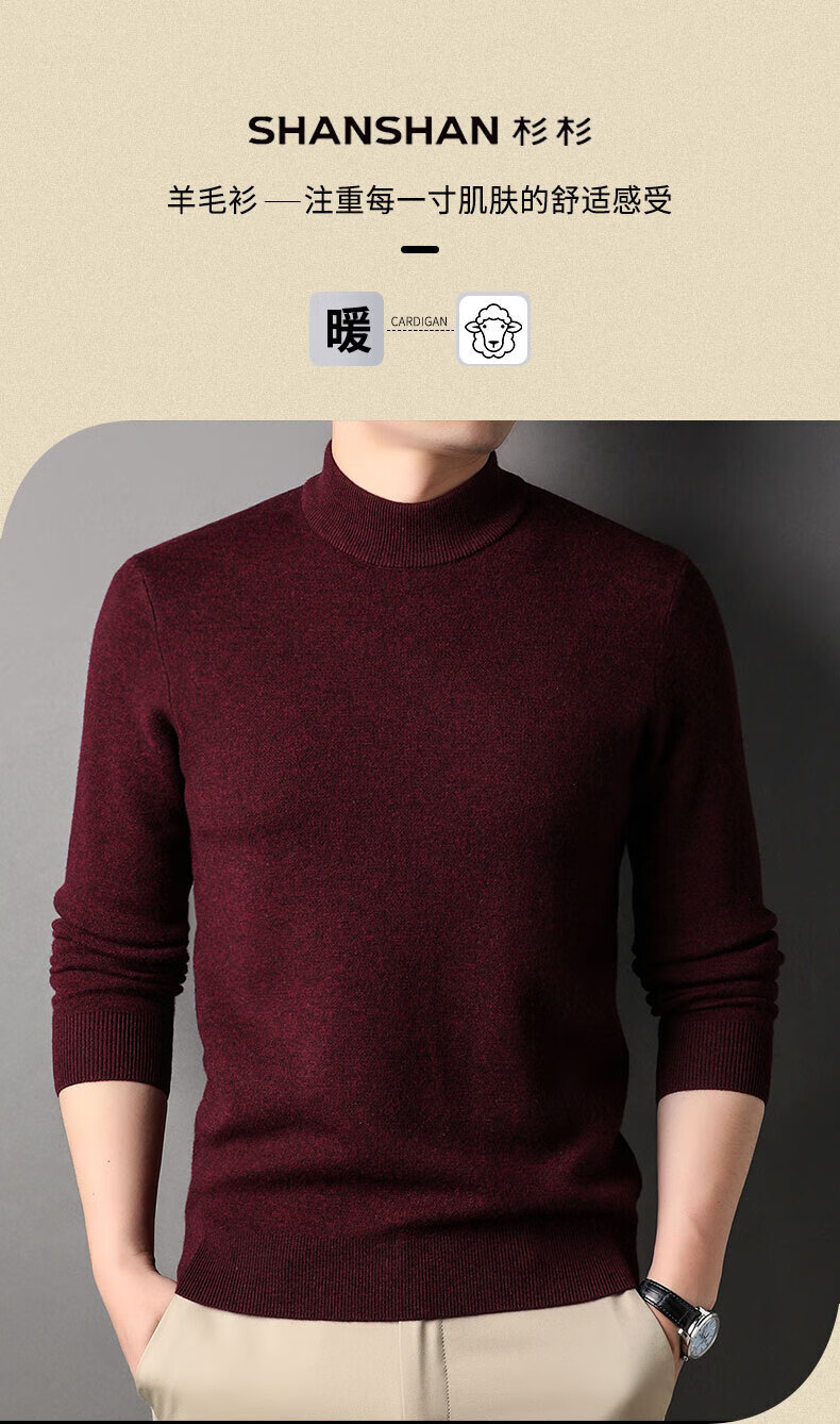 SHANSHAN杉杉【厚款】100%纯羊毛衫男士毛衣秋冬新款男装针织半高领打底衫 黑色 【高档100全羊毛 】 3XL (190/104A)