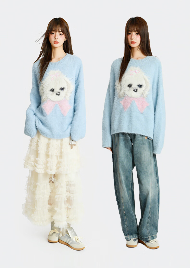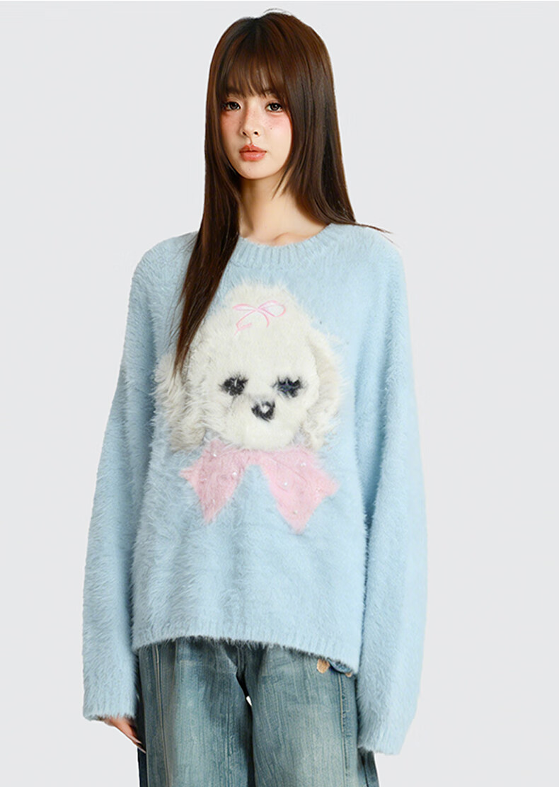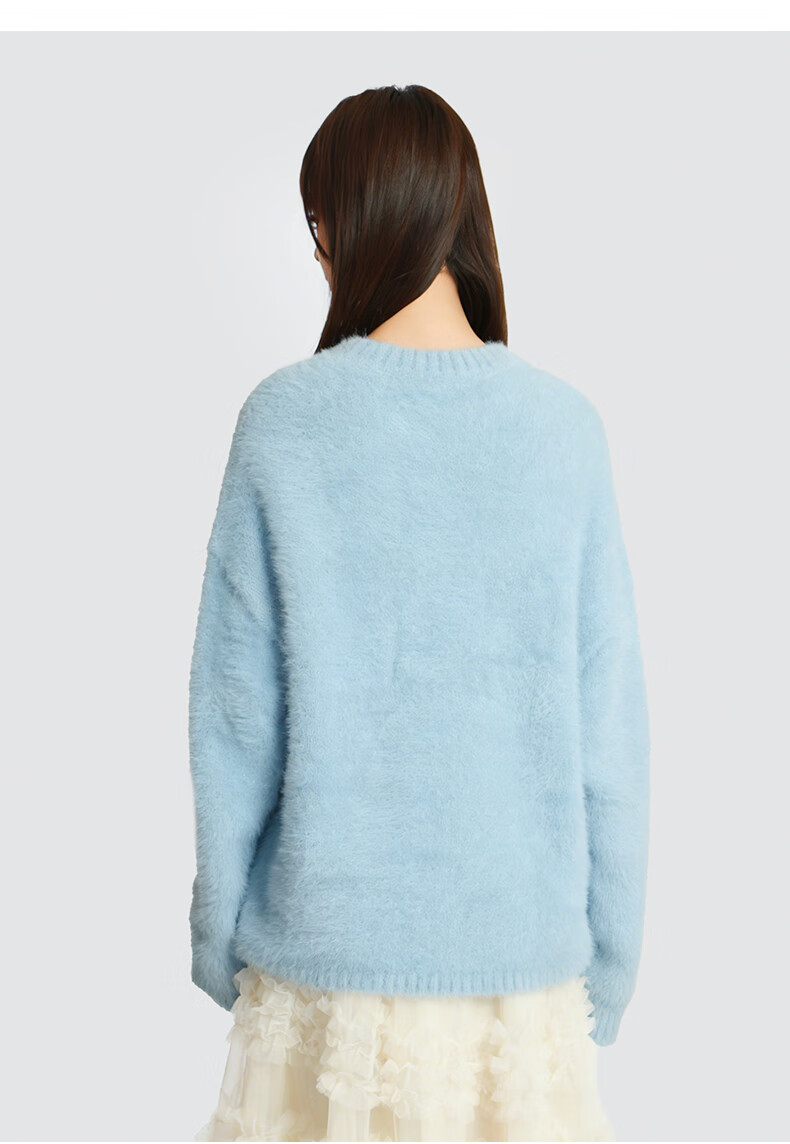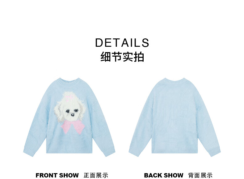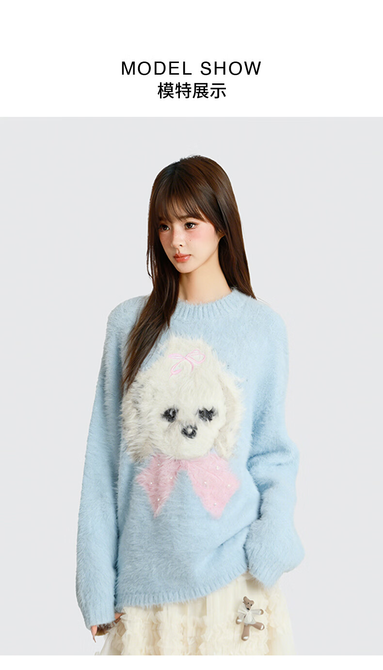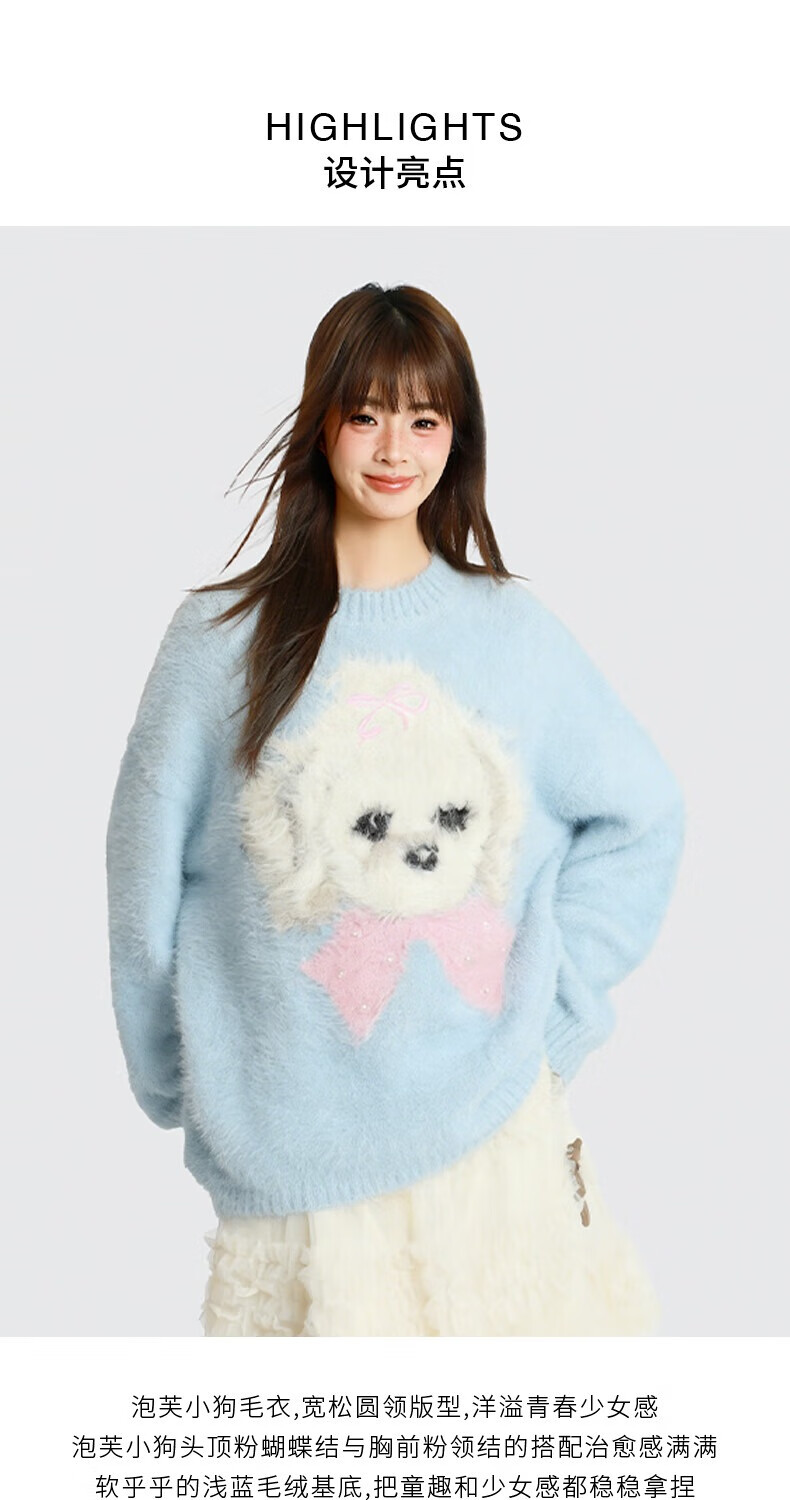 LALABOBO【玩偶系列】毛织毛衣25年冬新潮原创高级蓝保暖上衣RBEC-WSTM14 蓝色 S