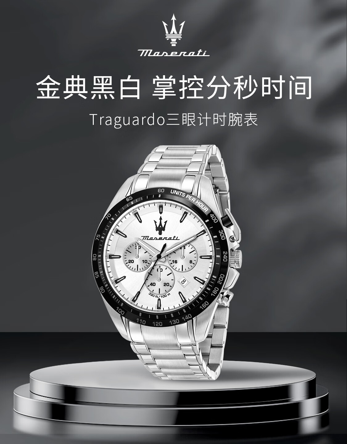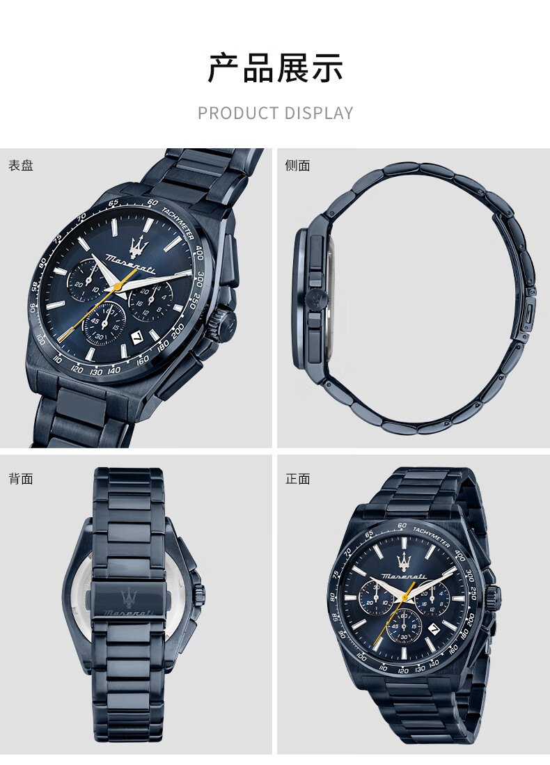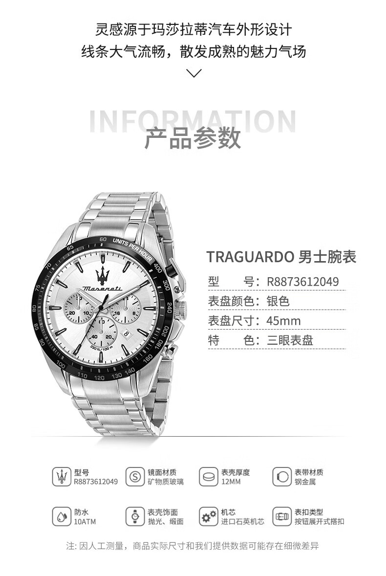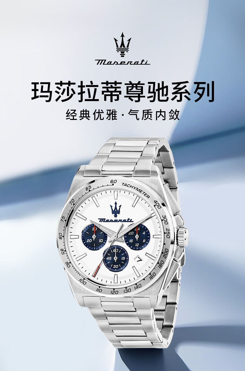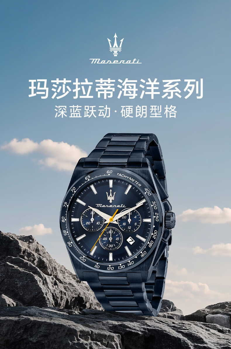 玛莎拉蒂(MASERATI)手表男迪通拿十大名表探索者竞速运动石英表男表高级感生日礼物 【迪通拿】潮流海蓝 R8873652007