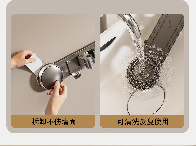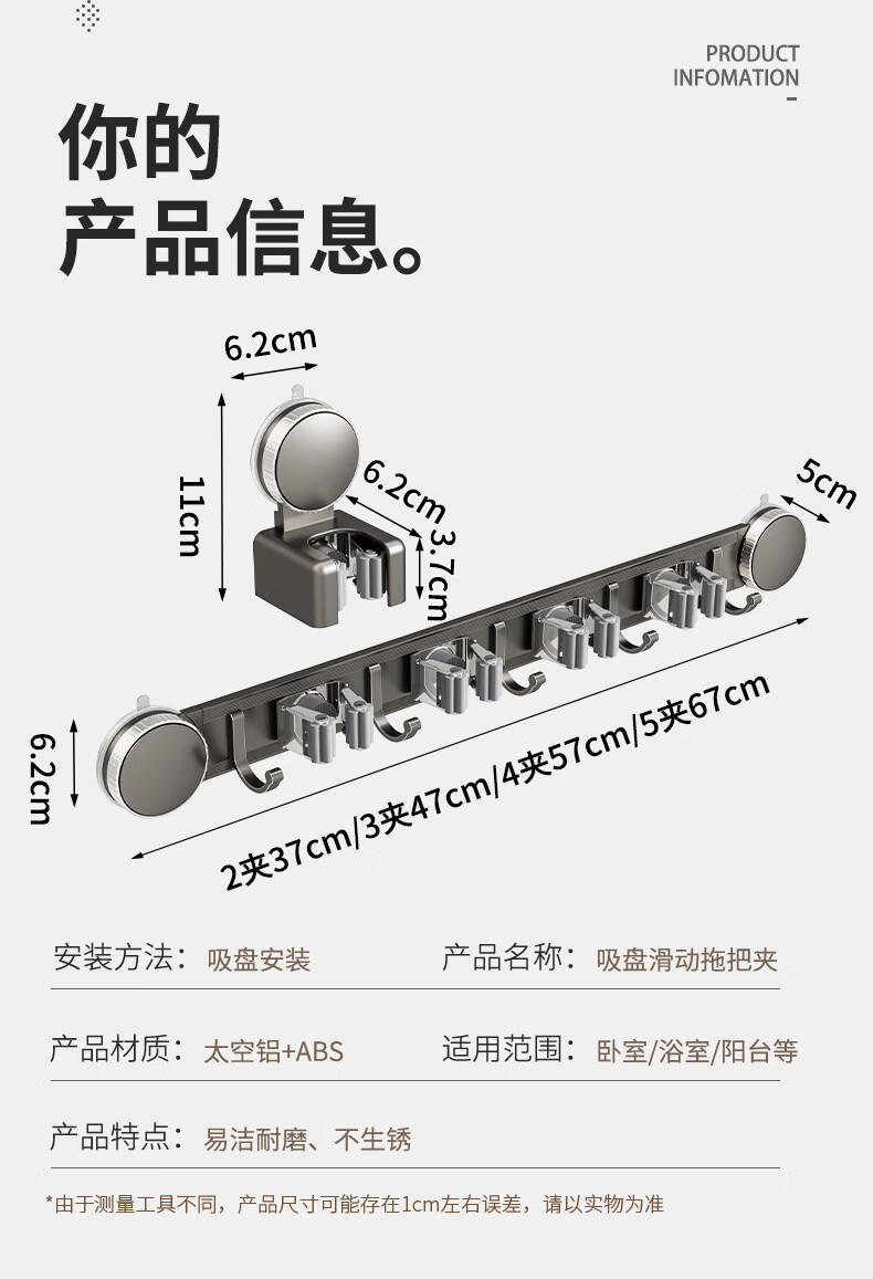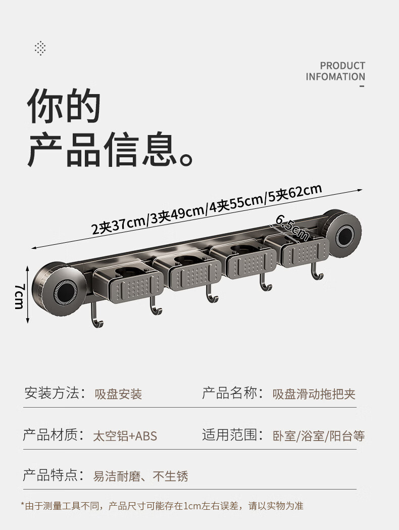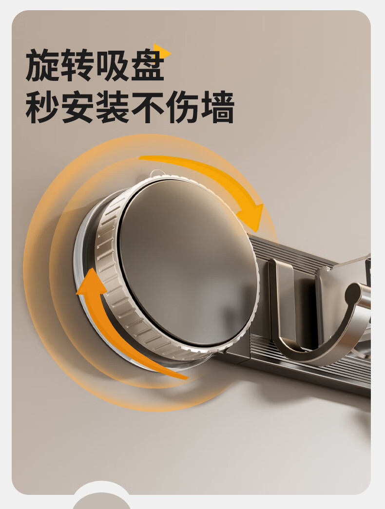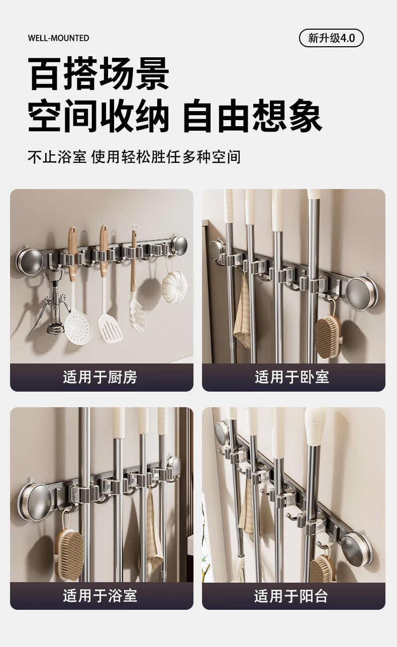 丹乐(DANLE)吸盘拖把壁挂夹卫生间免打孔墙上门后扫把拖布挂钩固定架收纳神器 奶油白-5夹6钩【吸盘式】